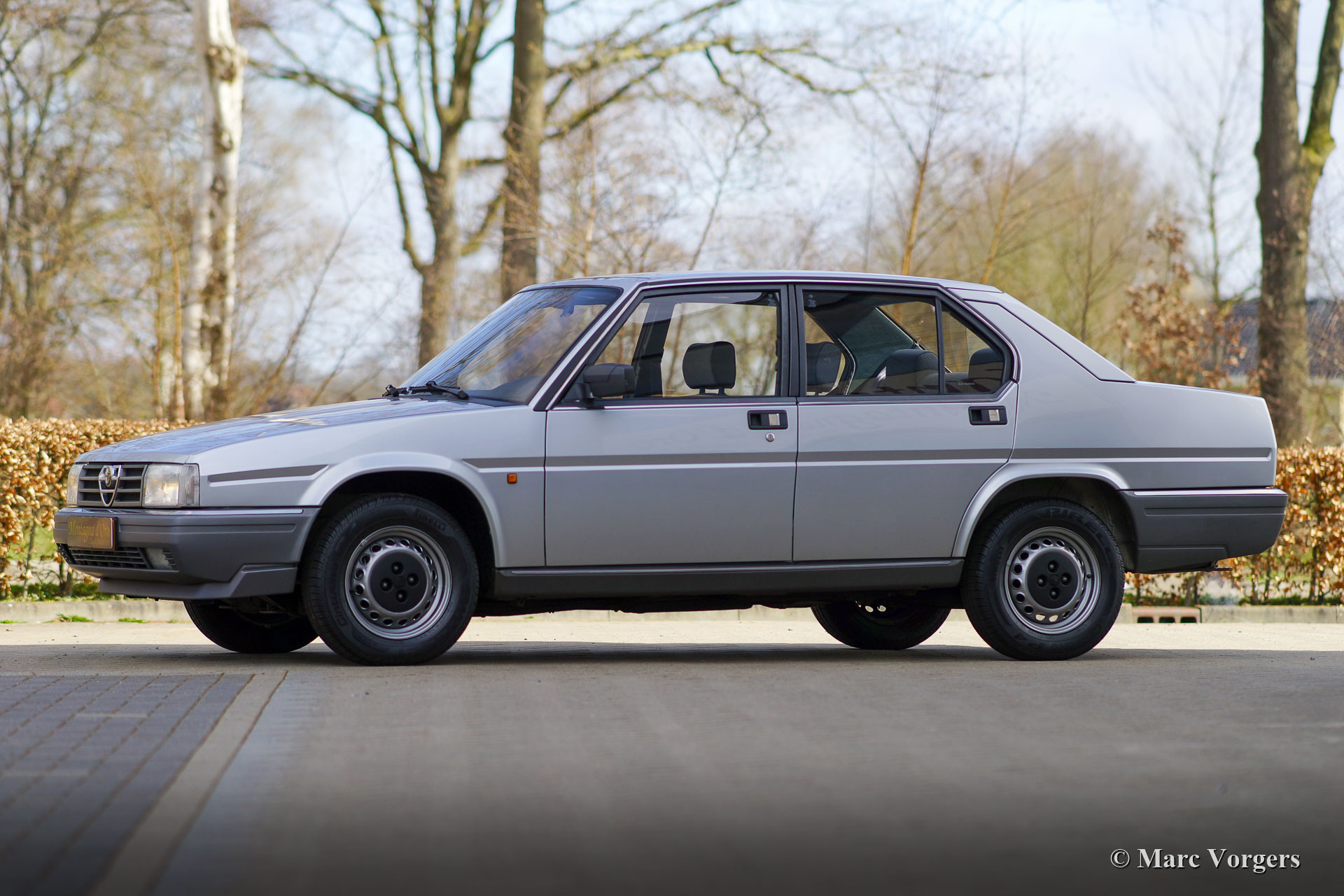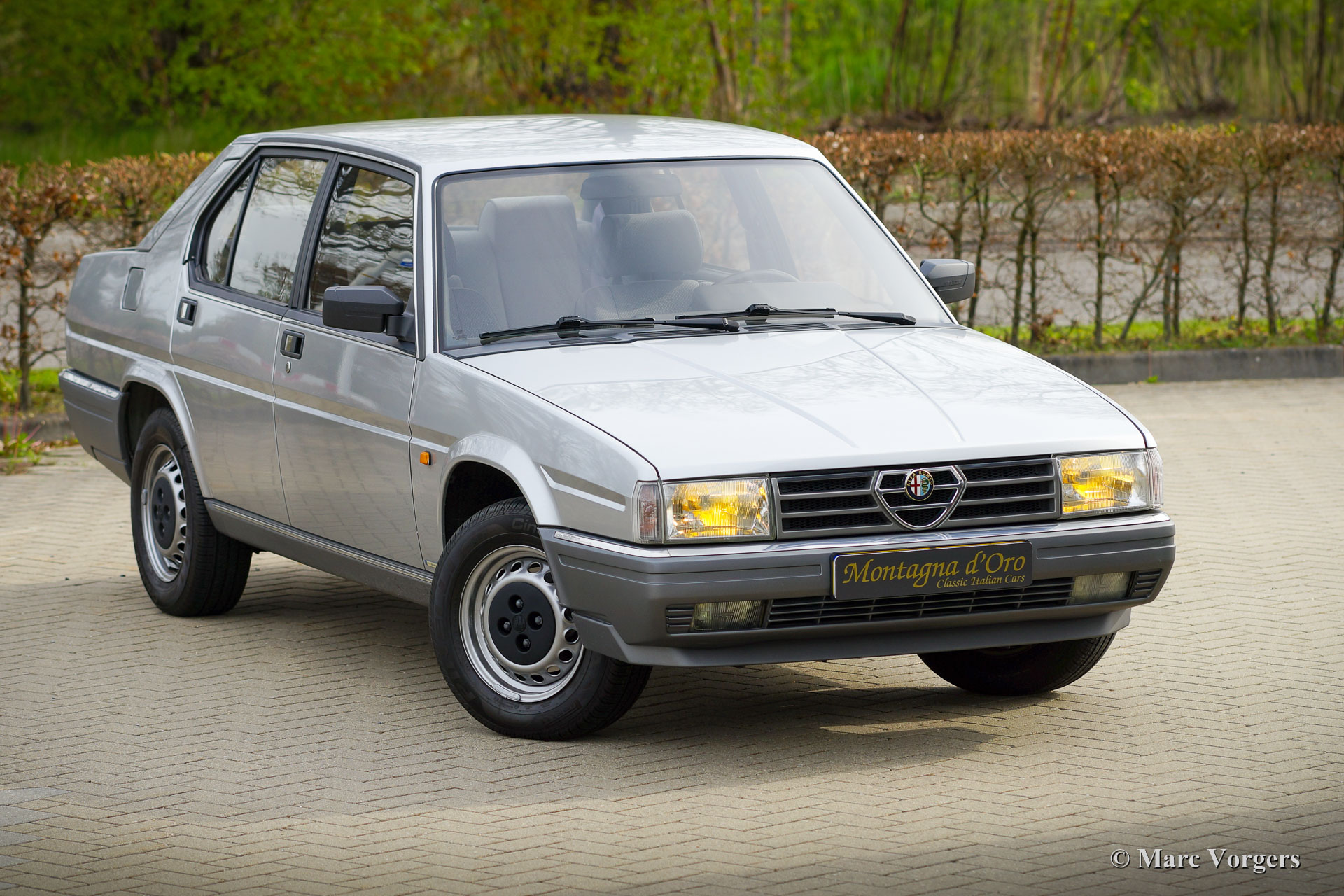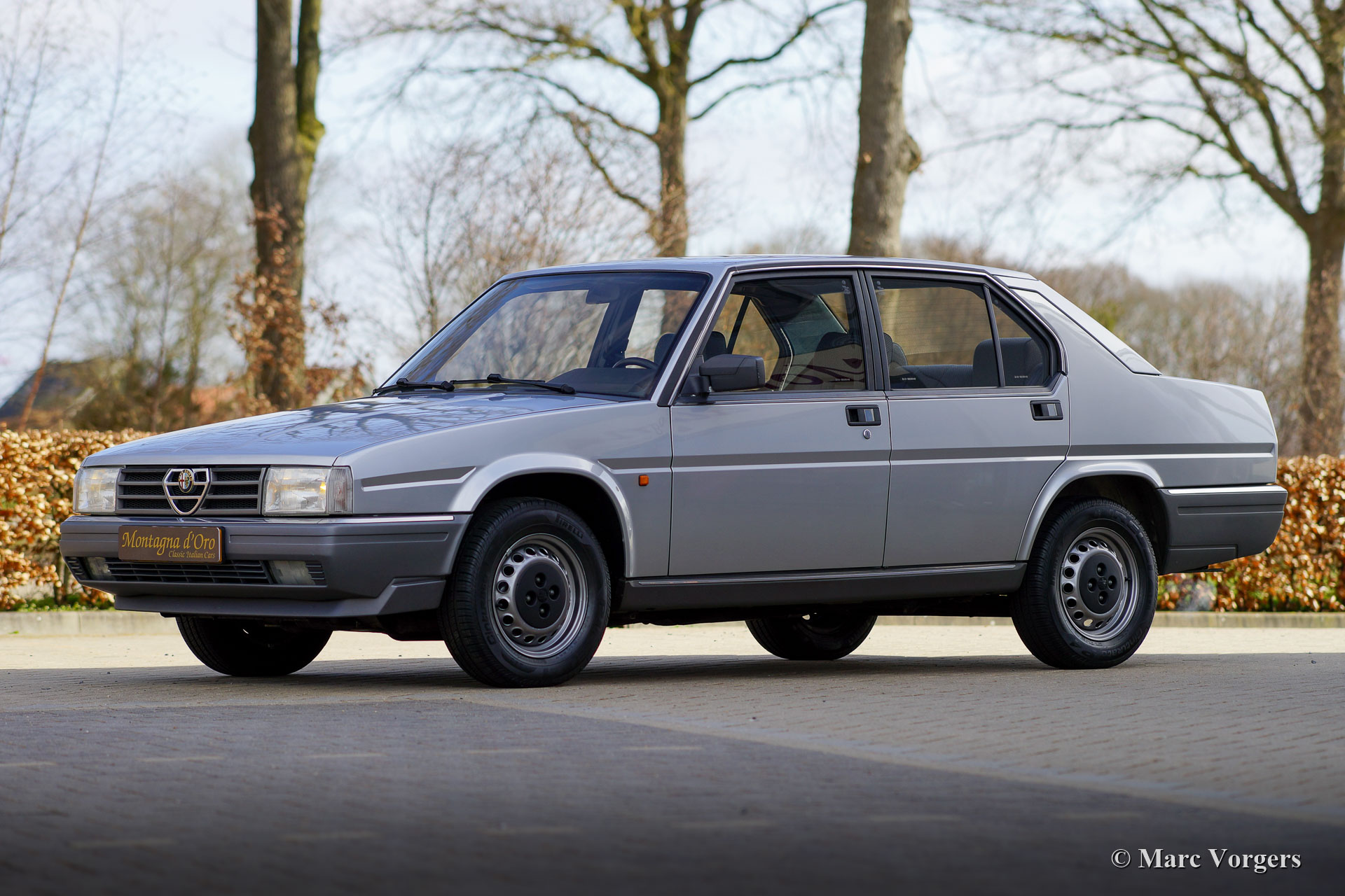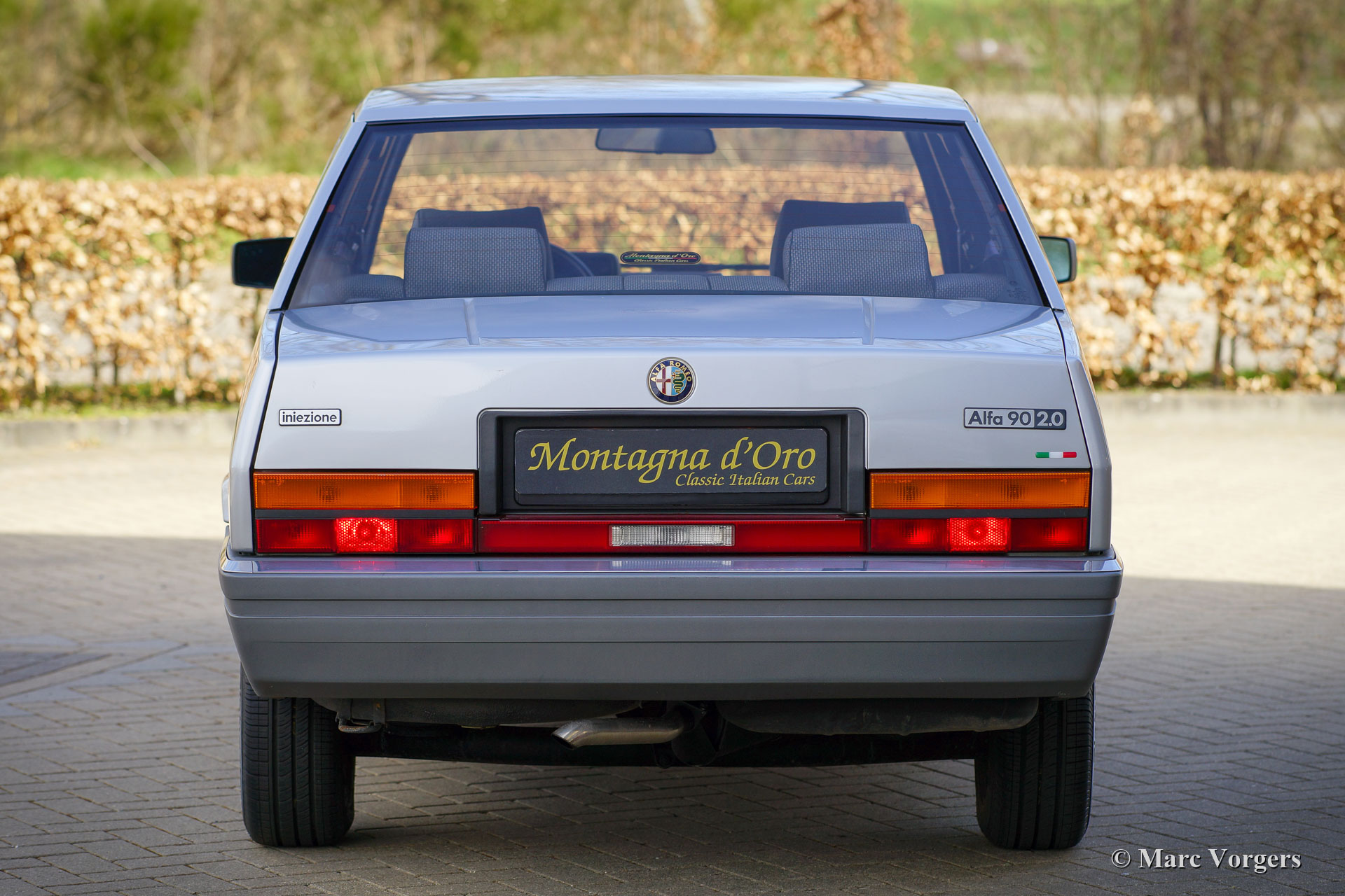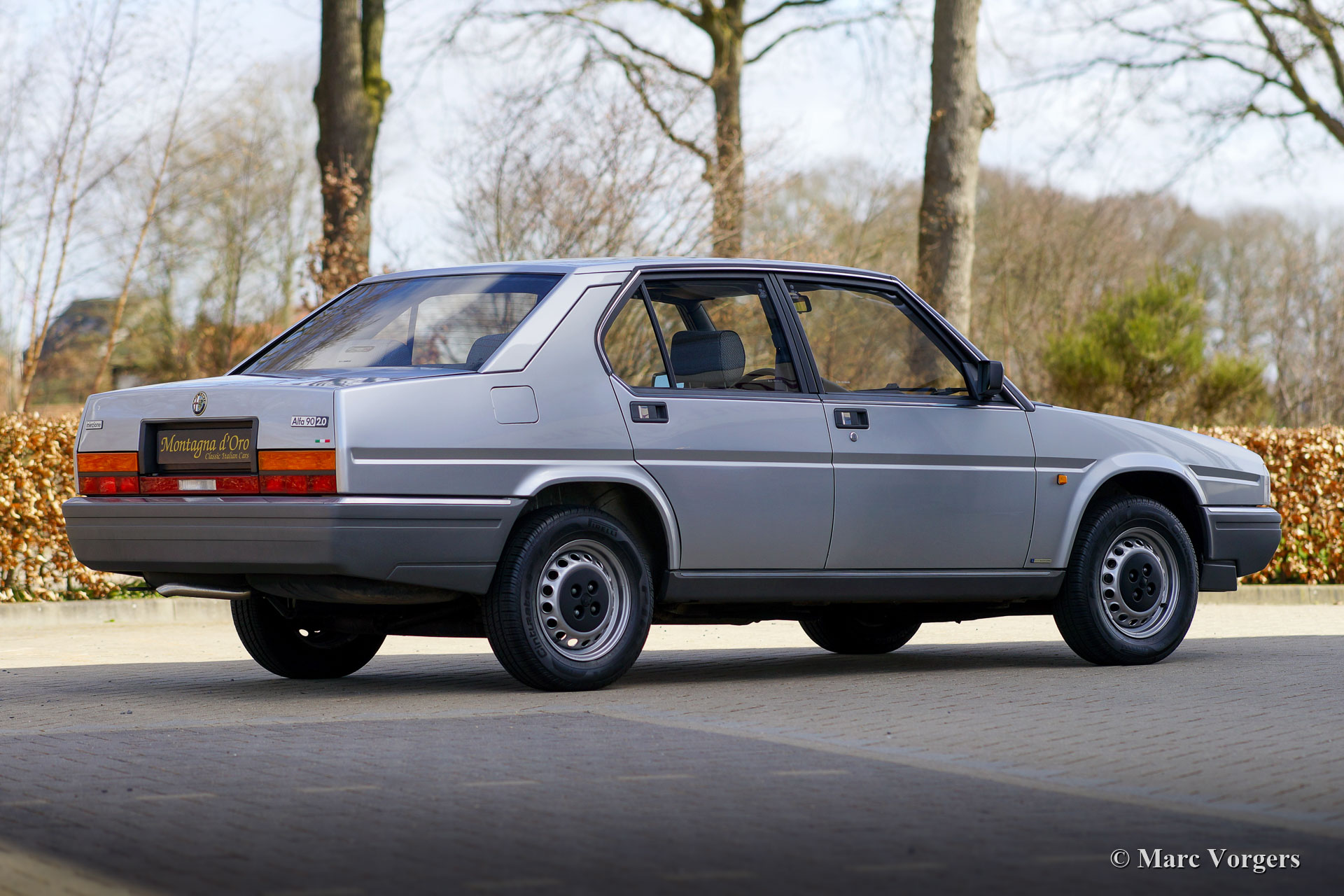 Alfa Romeo 90 2.0 Inezione, Jahr 1985. Fahrgestellnummer: ZAR162A20 * 0000684X *, Motornummer: AK01713 * 02424X. Farbe Grigio Chiaro Metallic (AR 762) kombiniert mit einem blau / grauen Stoffinterieur und blauem Teppich. Dieser wundervolle Alfa Romeo 90 wurde in Belgien neu verkauft und vom ersten Besitzer angekauft! Das Auto wurde kürzlich in die Niederlande importiert. Dieser feine Alfa Romeo ist nur 53.000 Kilometer von Neu gefahren! Das Auto ist in einem ausgezeichneten und vollständig originalen Zustand! Auf dem Teppich des Innenraums finden Sie nur geringfügige Spuren früherer Verwendung und eine „dünne“ Stelle im Stoff des Fahrersitzes. Der Lack der Karosserie wurde wunderschön poliert, um einen hervorragenden Glanz zu erzielen. Das Auto wurde im Laufe der Jahre sehr gut gewartet. Der Alfa wurde kürzlich umfassend gewartet, wobei das Getriebe mit neuen Synchronringen umgebaut, ein neuer Auspuff eingebaut und fünf neue Pirelli Cinturato P4-Reifen montiert wurden. Als Nachfolger des Alfa Romeo Alfetta wurde der Alfa 90 von 1984 bis 1987 produziert. Der 90 verfügt über elektrisch verstellbare Vordersitze und einen dynamischen Frontspoiler, der bei Geschwindigkeiten über 80 km / h automatisch abgesenkt wird, wodurch Abtrieb und zusätzliche Kühlung für den Motor erzeugt werden. Dieser feine Alfa 90 wird mit dem Original-Servicebuch, der Bedienungsanleitung, der Broschüre und anderen Dokumentationen geliefert. Dies ist ein selten gesehener Alfa Romeo 90 in ausgezeichnetem Originalzustand!