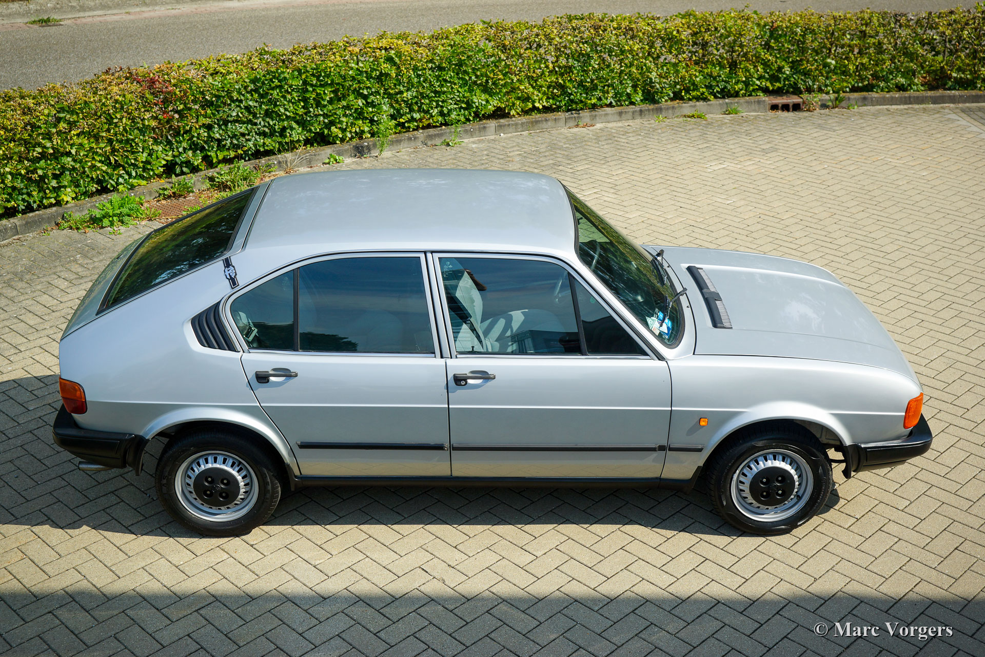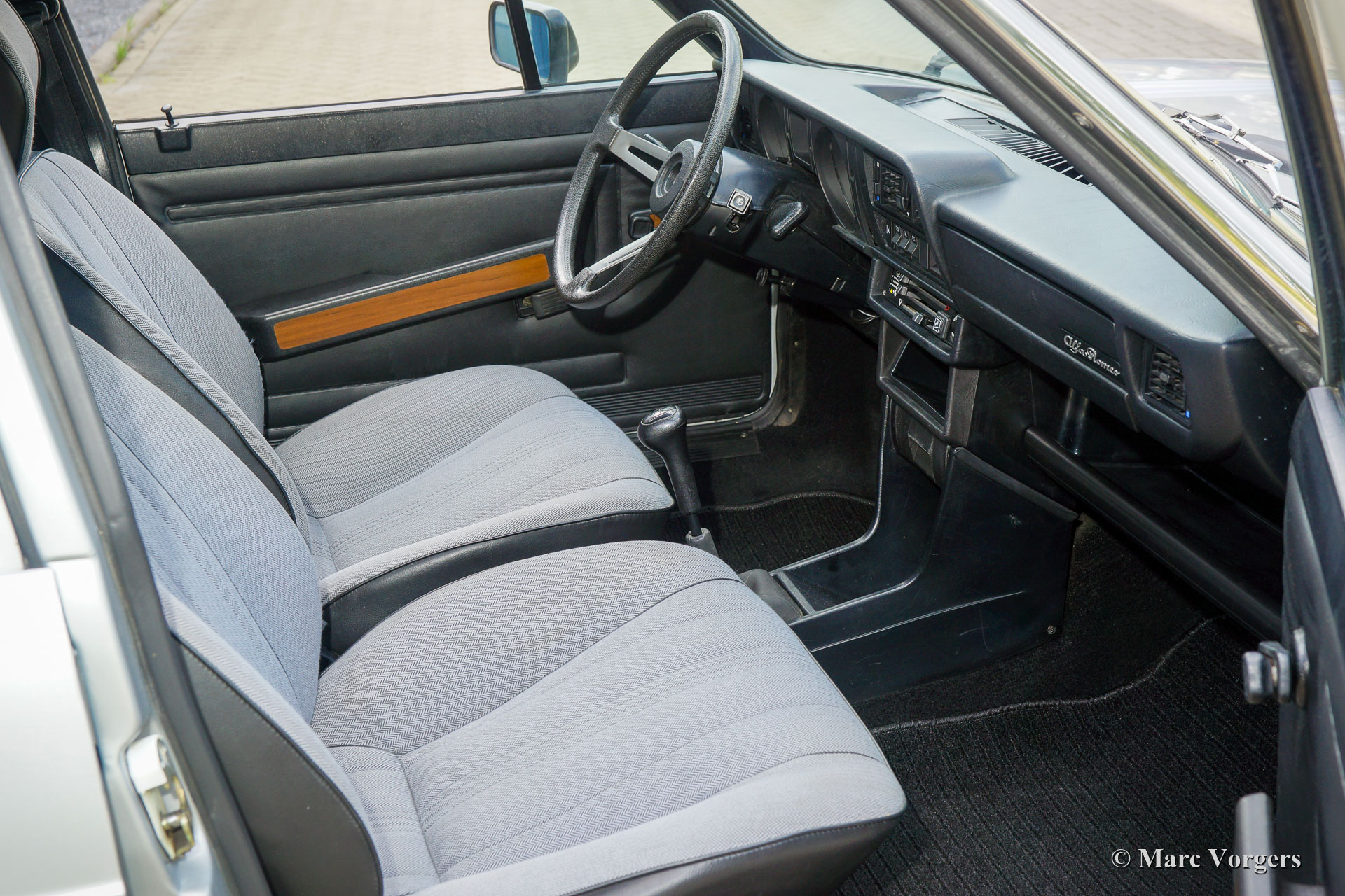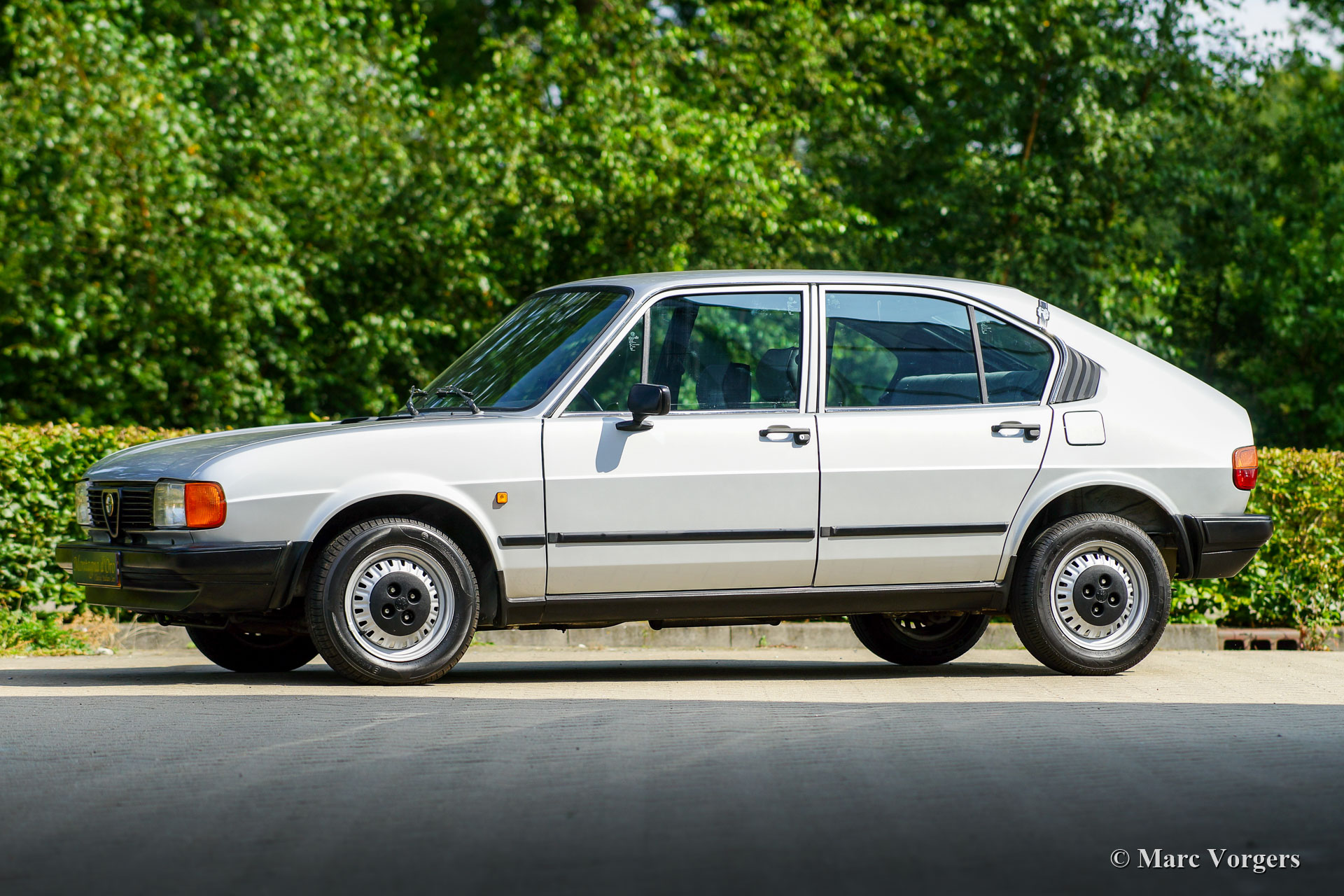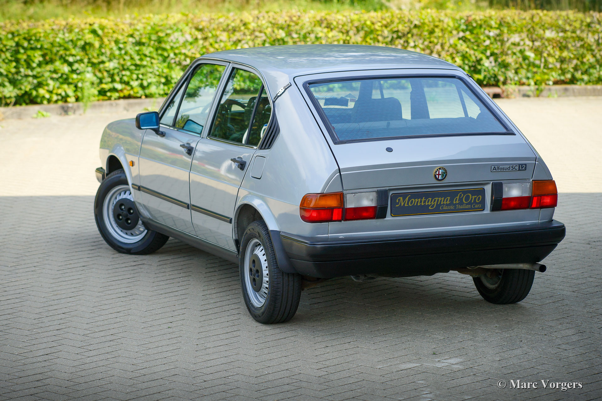 Alfa Romeo Alfasud 1.2 SC, Jahr 1982. Farbe Grigio Nisida metallic (AR 755, Doppio Strato, 2 Coats) kombiniert mit einer schwarz/grauen Innenausstattung. Sitzflächen in grauem Stoff, Sitzlehnen und Türverkleidungen in schwarzem Kunstleder. Schwarzer Teppich und schwarze Schutzmatten. Dieser perfekt erhaltene Alfa Romeo Alfasud wurde auf der italienischen Insel Sardinien neu an Herrn A. Sardu verkauft. Wir haben das Auto vor kurzem in Sassari gekauft, wo es sein Leben lang in liebevollen Händen verbracht hat. Das Auto sieht absolut wie neu aus; Dies kann nur durch sorgfältige Lagerung und liebevolle Pflege über viele Jahre erreicht werden. Von neu hat dieser wundervolle Alfasud nur 76.273 Kilometer gefahren! Vor rund 300 Kilometern, bei 75.950 Kilometern, hat das Auto einen umfangreichen Service inklusive Zahnriemenwechsel erhalten. Dieser fast 40 Jahre alte Alfasud sieht aus, fühlt sich an und fährt sich wie neu, und der 1200 ccm Boxermotor läuft und klingt wunderschön! Dies ist eine seltene Gelegenheit, einen komplett originalen und neuwertigen 1982er Alfasud zu kaufen!