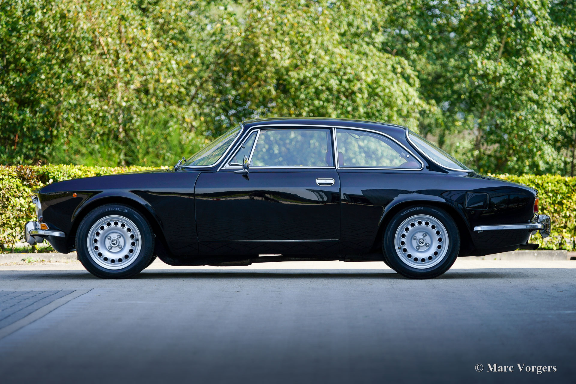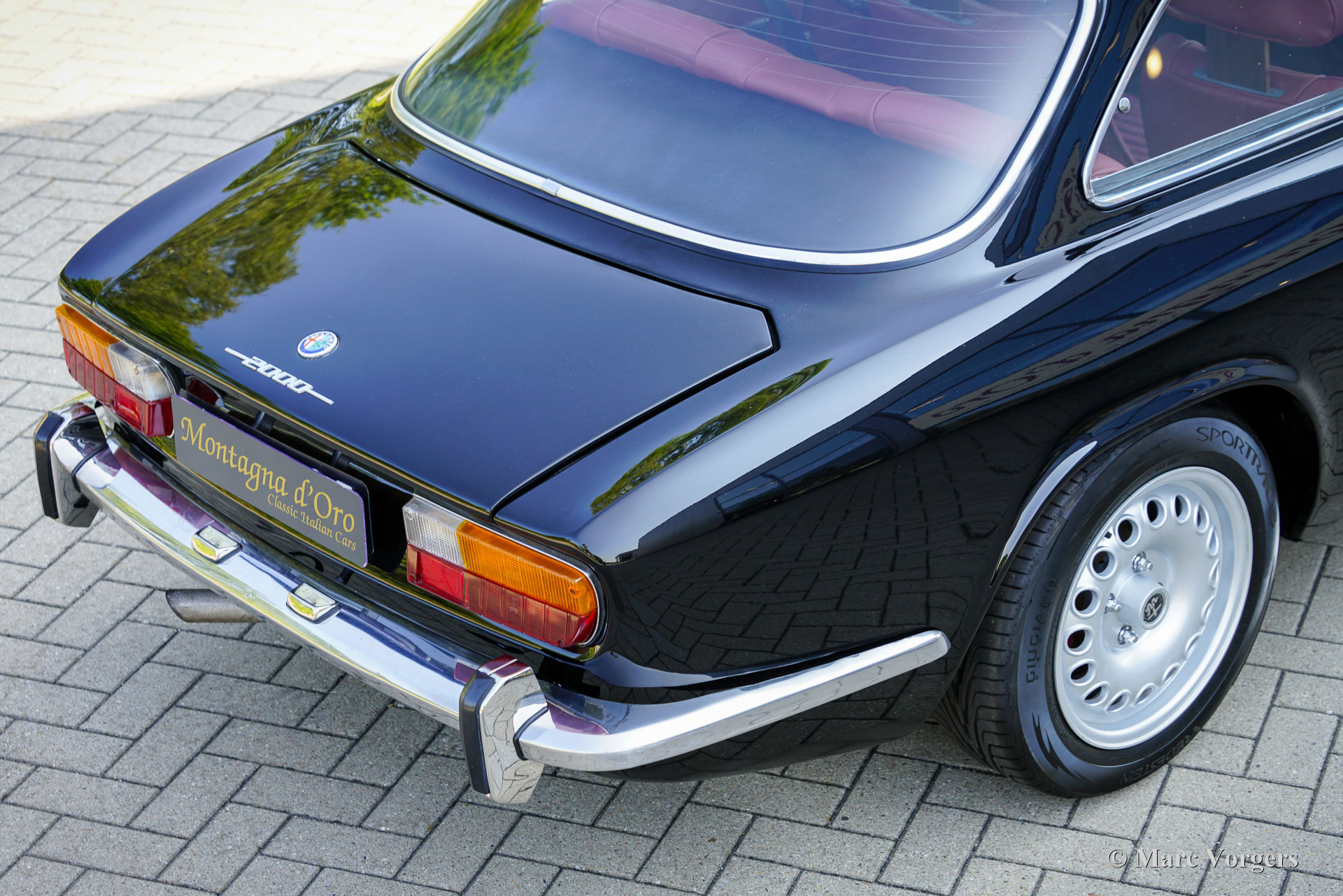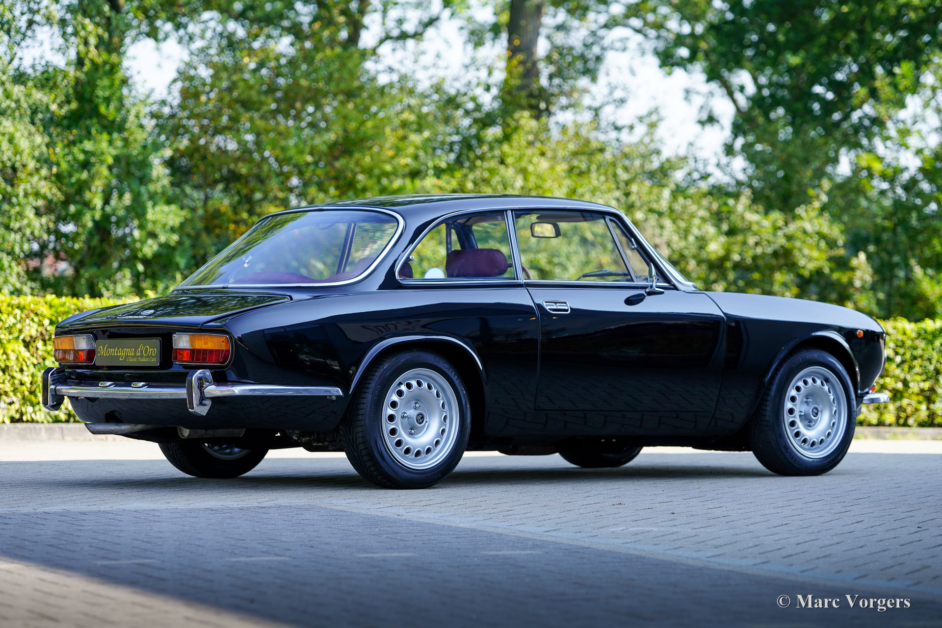 Alfa Romeo Giulia 2000 GTV „Bertone“, 1972. (30 Januar 1972). Farbe Schwarz kombiniert mit einer dunkelroten Lederausstattung und schwarzem Teppich. Dieser prächtige Alfa Romeo GTV 2000 „Bertone“ wurde neu in Italien verkauft, das Auto wurde im Juli 1999 in die Niederlande importiert. Das Auto wurde über einen Zeitraum von zehn Jahren restauriert, die Arbeiten wurden kürzlich abgeschlossen. Das Auto wurde vollständig zerlegt, das Blech der Karosserie wurde restauriert und die Karosserie wurde innen und außen schwarz lackiert. Die Innenpolsterung wurde komplett erneuert, die Sitze erhielten eine wunderschöne Lederpolsterung und ein schwarzer Dachhimmel wurde angebracht. Mechanisch und technisch wurde der Wagen umfassend überholt und aufgearbeitet. Der Tachostand zeigt aktuell 86,487 Kilometer an. Dieser schöne Alfa Romeo GTV 2000 ist in einem wunderbaren und sehr guten Zustand und das Auto fährt perfekt. Das Auto hat einen wunderbaren „Stance“ und die großen Leichtmetallfelgen im GTA-Stil runden das Bild ab. Dieser wunderschöne und restaurierte Alfa Romeo GTV Bertone wird dem Alfa Romeo-Enthusiasten viel Freude und Fahrspaß bereiten!