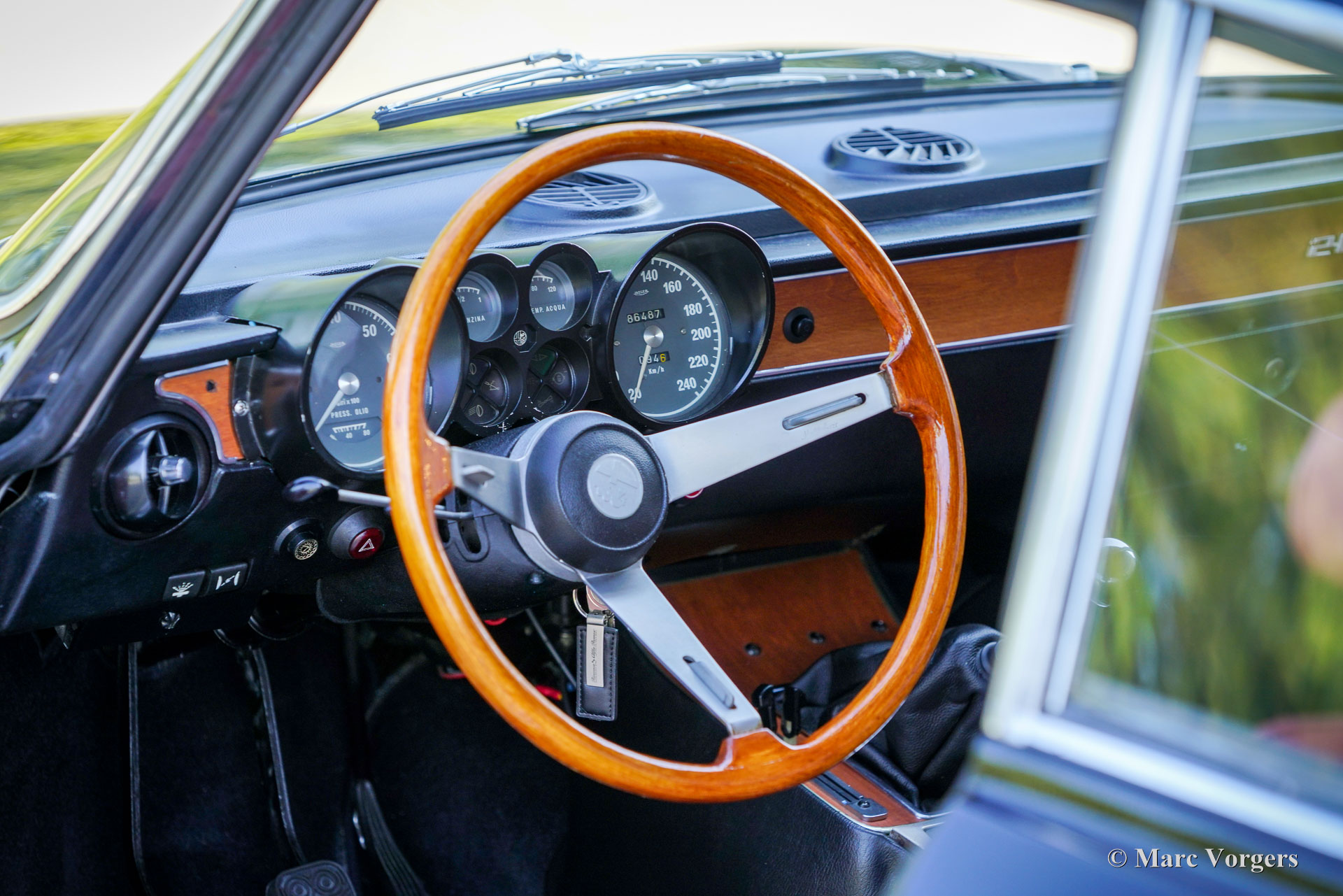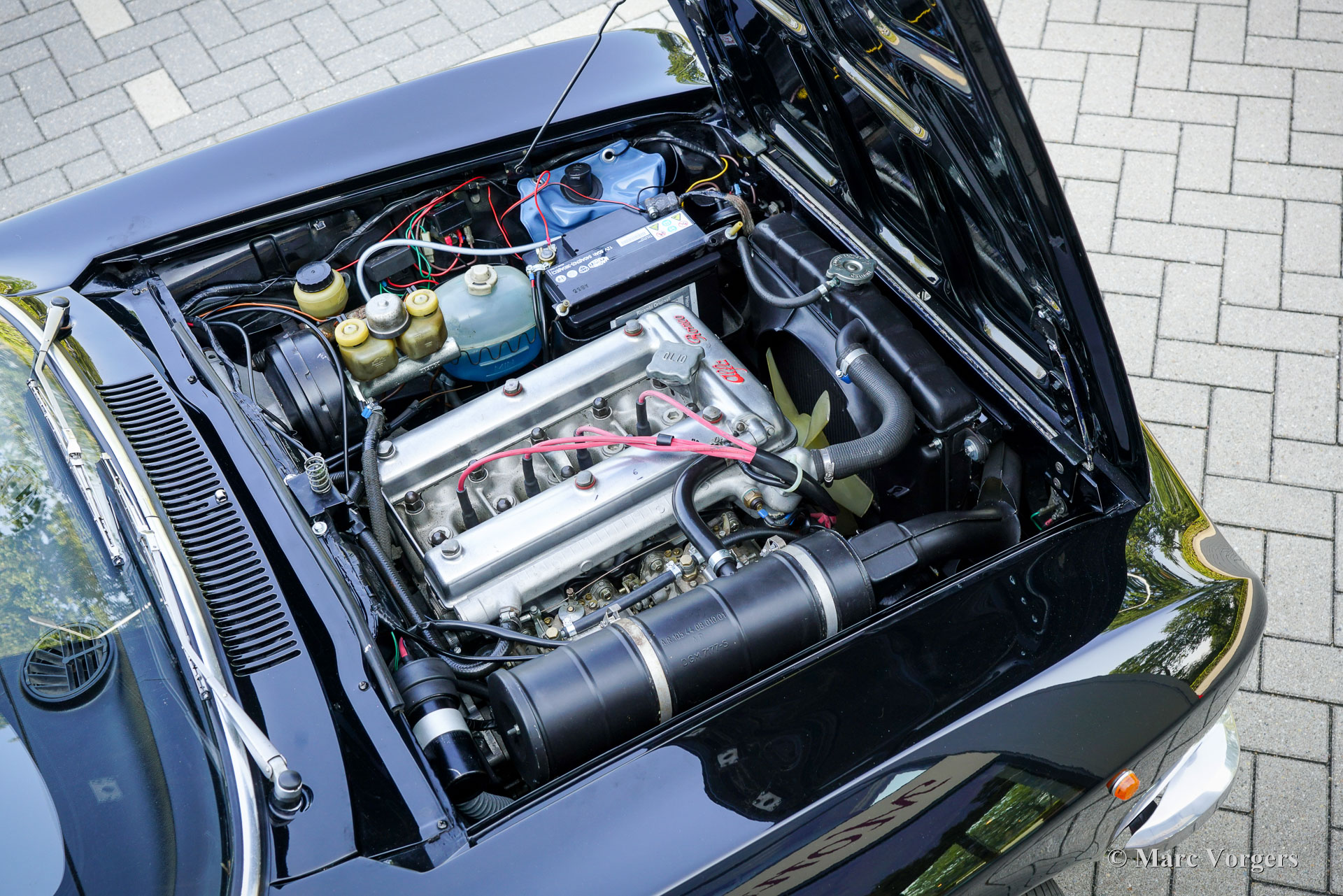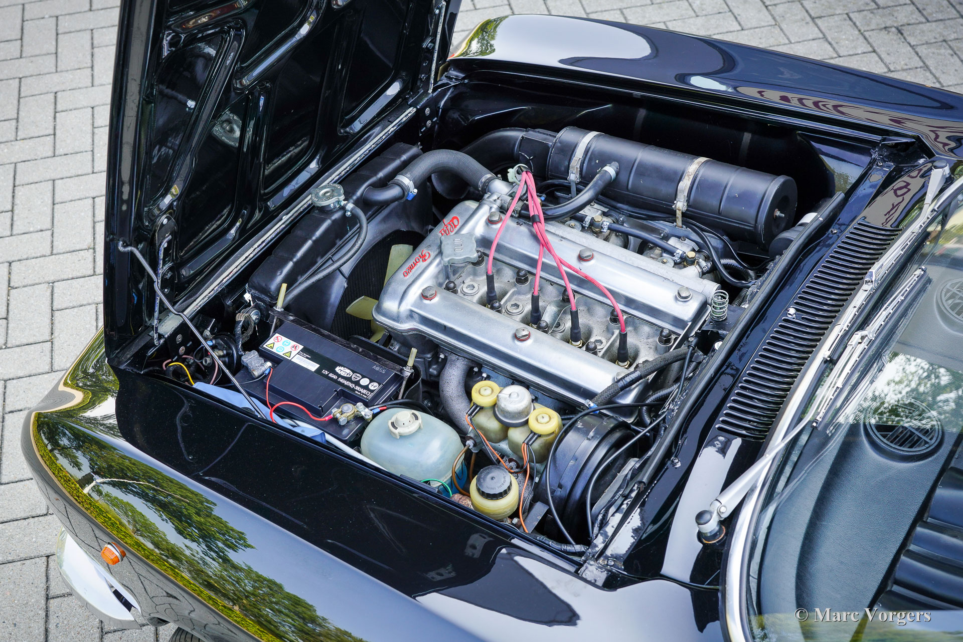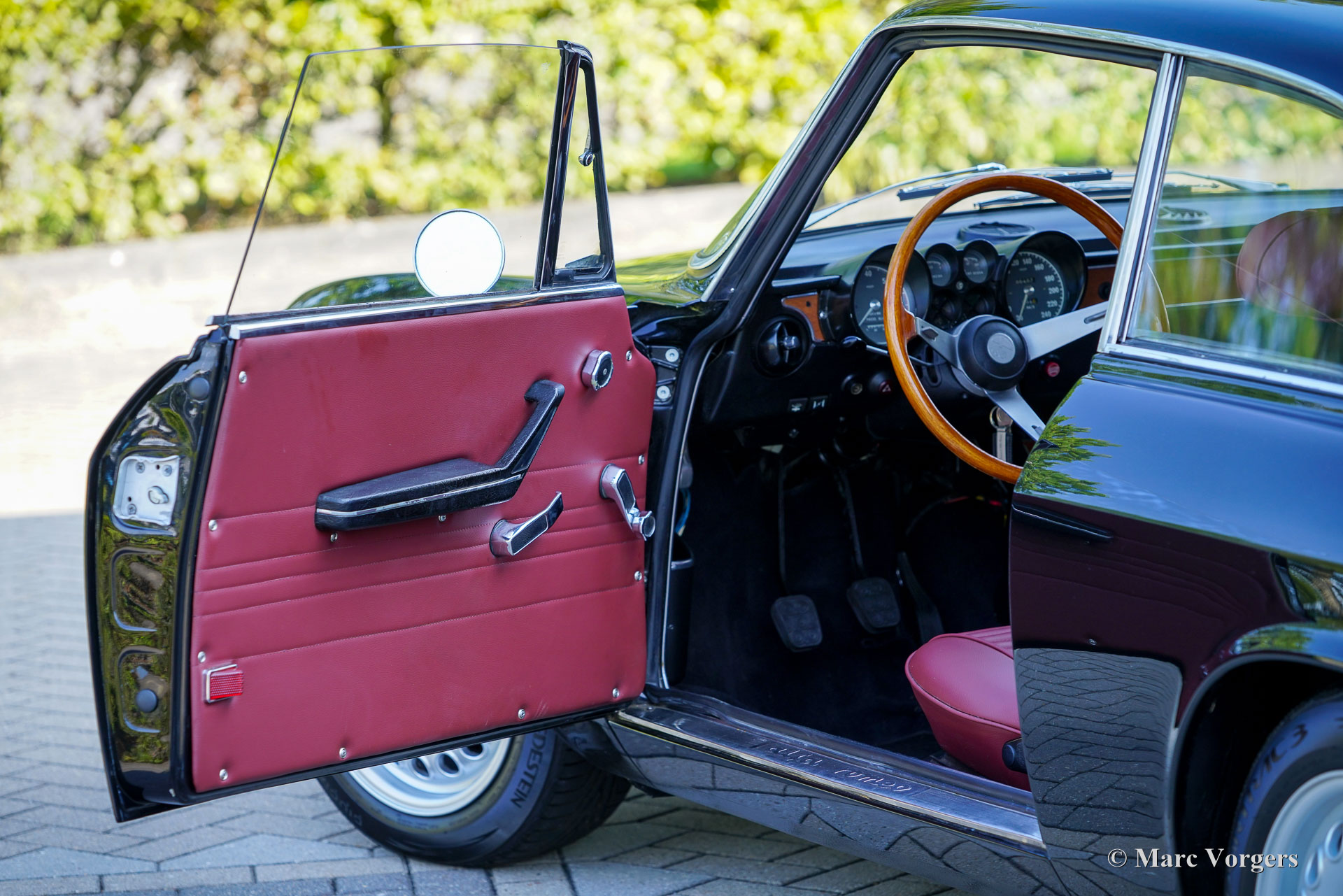 Alfa Romeo Giulia 2000 GTV „Bertone“, 1972. (30 Januar 1972). Farbe Schwarz kombiniert mit einer dunkelroten Lederausstattung und schwarzem Teppich. Dieser prächtige Alfa Romeo GTV 2000 „Bertone“ wurde neu in Italien verkauft, das Auto wurde im Juli 1999 in die Niederlande importiert. Das Auto wurde über einen Zeitraum von zehn Jahren restauriert, die Arbeiten wurden kürzlich abgeschlossen. Das Auto wurde vollständig zerlegt, das Blech der Karosserie wurde restauriert und die Karosserie wurde innen und außen schwarz lackiert. Die Innenpolsterung wurde komplett erneuert, die Sitze erhielten eine wunderschöne Lederpolsterung und ein schwarzer Dachhimmel wurde angebracht. Mechanisch und technisch wurde der Wagen umfassend überholt und aufgearbeitet. Der Tachostand zeigt aktuell 86,487 Kilometer an. Dieser schöne Alfa Romeo GTV 2000 ist in einem wunderbaren und sehr guten Zustand und das Auto fährt perfekt. Das Auto hat einen wunderbaren „Stance“ und die großen Leichtmetallfelgen im GTA-Stil runden das Bild ab. Dieser wunderschöne und restaurierte Alfa Romeo GTV Bertone wird dem Alfa Romeo-Enthusiasten viel Freude und Fahrspaß bereiten!