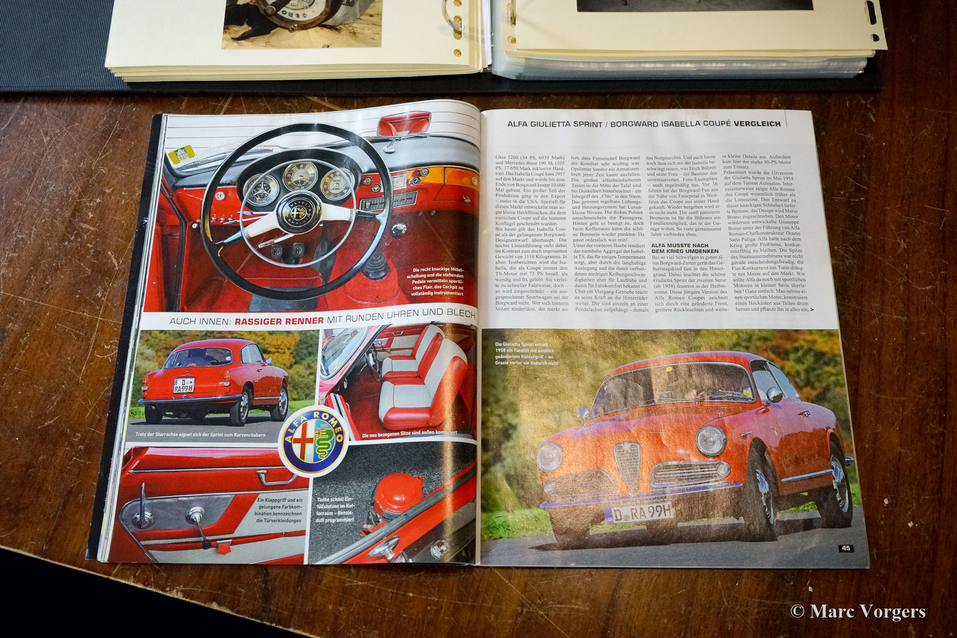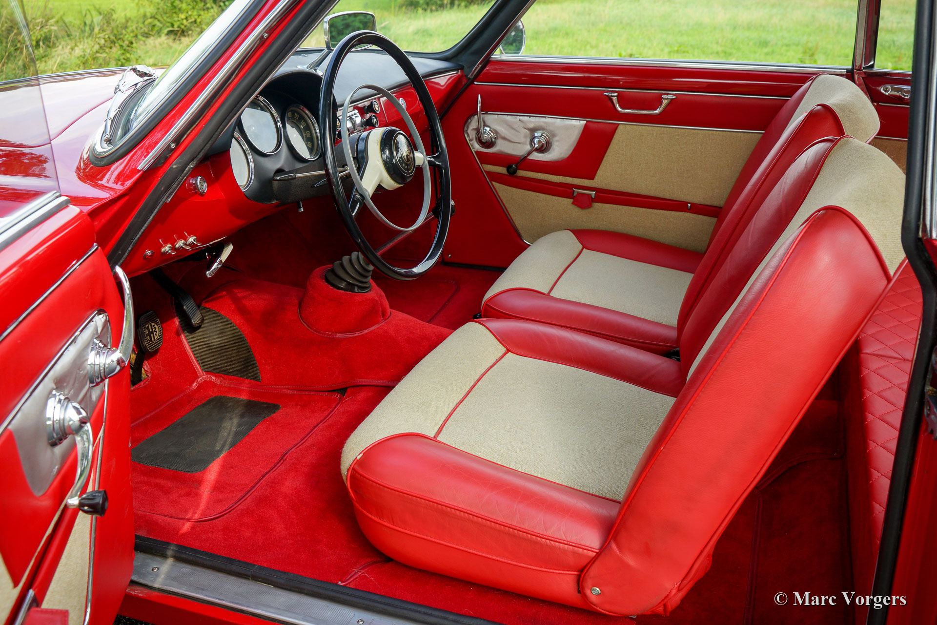 Alfa Romeo Giulietta 1300 Sprint, Jahr 1962. Farbe rot mit einem rot / cremefarbenen Innenraum. Dieser wunderschöne Alfa Romeo Giulietta Sprint wurde in den 1990er Jahren umfangreich und professionell restauriert. Der Kaufpreis und die gesamten Restaurierungskosten überstiegen in jenen Tagen 120.000 alte holländische Gulden (100.000 DM)! Ein Fotobericht der Restaurierung und alle Rechnungen sind vorhanden. Dieser Alfa Romeo Giulietta Sprint ist in einem ausgezeichneten Zustand und das Auto fährt perfekt! Die vollständige Geschichte des Autos ist bekannt und dokumentiert. Im Jahr 2007 wurde das Auto mit einem 5-Gang-Getriebe aus einer Giulietta SS ausgestattet. Darüber hinaus verfügt das Auto über eine elektronische Zündung und ein Wegfahrsperren-System. In den letzten Jahren wurde das Auto in den Werkstätten von Altena Classic Service pünktlich gewartet. Das Auto wird komplett mit den originalen Borden-Büchern in ihrer originalen Ledermappe geliefert! Ein sehr begehrter italienischer GT!