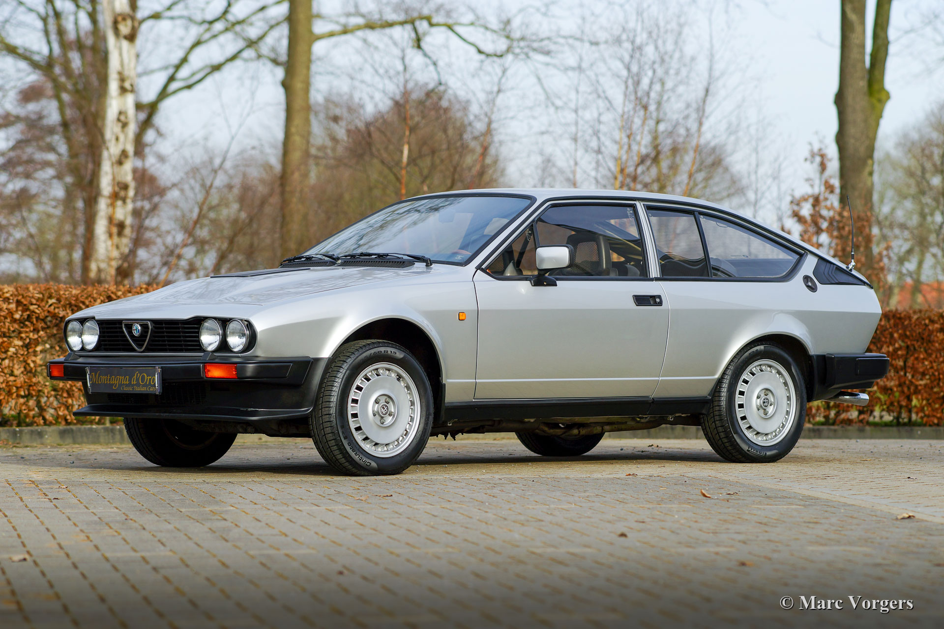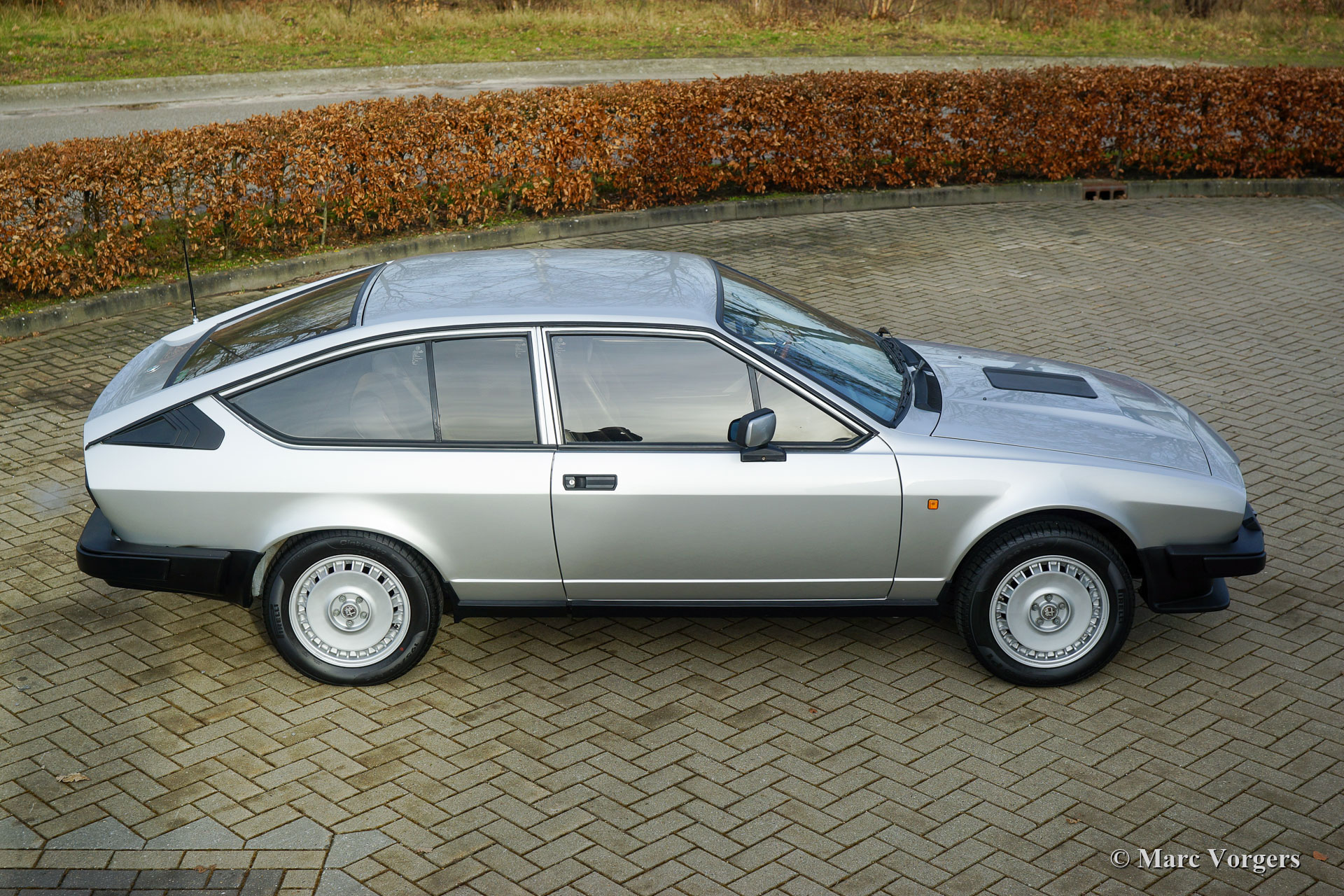Alfa Romeo GTV 6 2.5, Jahr 1983. Farbe Silber Metallic kombiniert mit einem schwarzen Velours / Vinyl Interieur, dunkelblauem Teppich und dunkelblauen Schutzmatten mit gesticktem Alfa Romeo Logo. Dieser beeindruckende Alfa Romeo GTV 6 2.5 wurde im Jahr 2019 vom jetzigen Besitzer in die Niederlande importiert. Das Auto ist in einem sehr guten Zustand und das Auto fährt perfekt. Es ist immer eine beeindruckende Angelegenheit, einen GTV 6 2.5 zu fahren, der V6-Motor und sein Sound machen wirklich süchtig! Das vollständig originale Interieur weist leichte Gebrauchsspuren und Altersspuren auf. Die Karosserie zeigt eine perfekte Passform der Paneele und eine wundervolle frische Lackierung. Alle originalen Details sind vorhanden, ebenso wie die schönen Campagnolo-Leichtmetallräder. Die Unterseite ist vollständig original und zeigt in aller Ehrlichkeit ihren Zustand. Der GTV 6 kommt mit vielen Rechnungen. Teile, Upgrades, Lackierung-Rechnungen in Höhe von rund 17.000 € und Servicerechnungen. Dies ist ein sehr begehrenswerter Alfa Romeo GTV 6 2.5 aus der ersten Serie in einem außergewöhnlich guten Zustand! Das Auto ist bereit für jedes Abenteuer in den Händen eines neuen Besitzers.