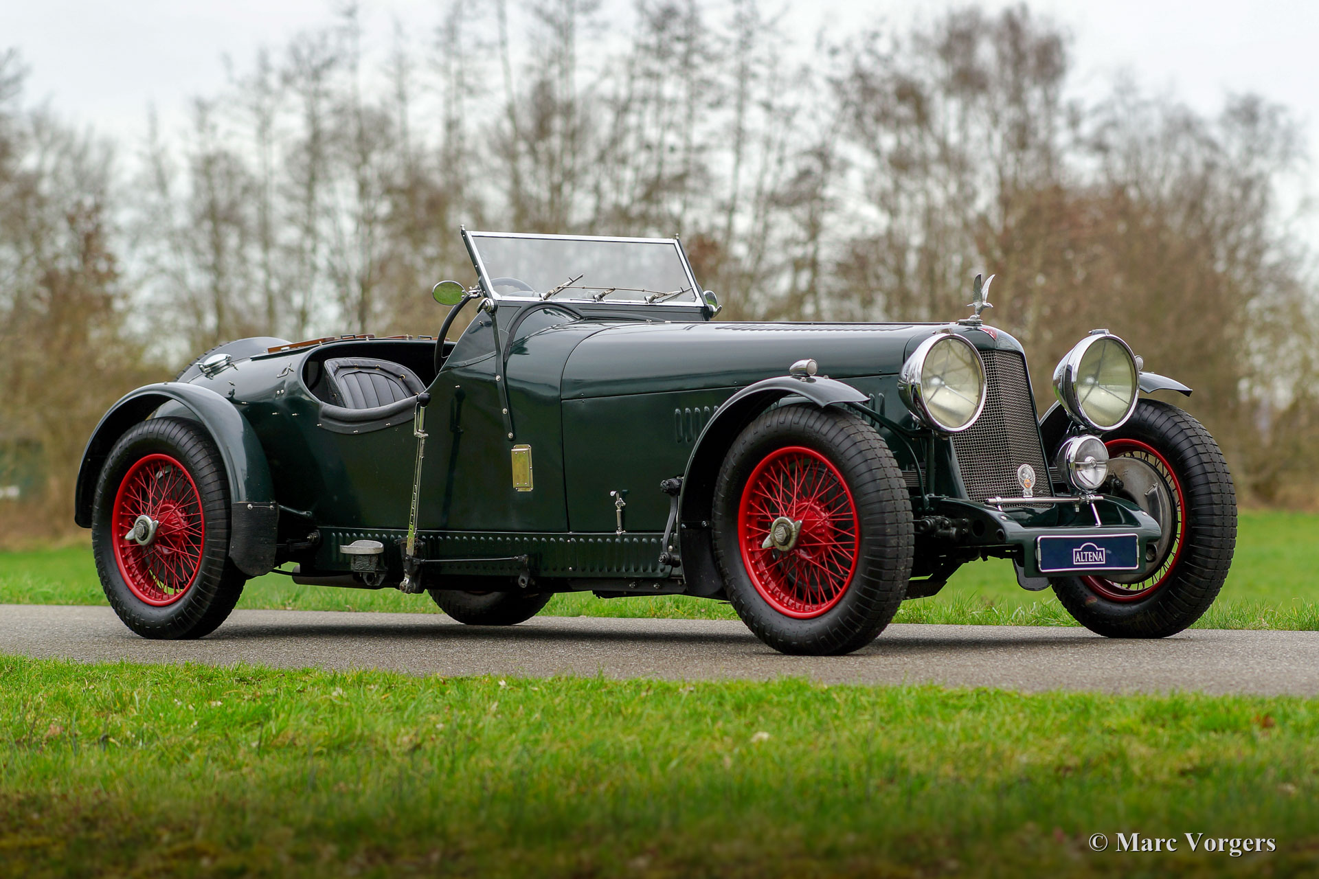 Alvis 4,3 Liter Special, Jahr 1939. Fahrgestellnummer: 14833X. Farbe dunkel British Racing Green mit einer schwarzen Lederausstattung. Schwarzes Verdeck und Persenning. Dieser fabelhafte Alvis Special wurde vor fünfzehn Jahren von einem Alvis-Spezialisten in Großbritannien gebaut. Der Aufbau basierte sich auf einem seltenen originalen 4,3-Liter-Alvis-Fahrgestell und einem gleich seltenen Alvis-4,3-Liter-Reihensechszylinder-Motor mit drei S.U. Vergaser. Fotos des Aufbaus sind vorhanden, ebenso eine vollständige Dokumentationsdatei. Dieses prächtige Alvis Special ist in einem ausgezeichneten Zustand und das Auto fährt perfekt! Der Motor liefert viel Drehmoment und Kraft und der ‘Soundtrack‘ der Auspuff ist großartig! Das Interieur dieses Alvis Specials ist perfekt ausgelegt, bietet ausreichend Platz für längere Fahrer / Passagiere und das aufgebaute Verdeck begrenzt nicht die Bewegungsfreiheit (etwas das bei dieser Art Vorkriegs-Specials selten ist). Ein weiterer praktischer Aspekt ist der große Gepäckraum hinter den Sitzen. Ein FIVA Identitäts-Karte und die originalen britischen Papiere sind vorhanden, das Auto kann in jedem Land zugelassen werden. Dieses feine Alvis 4,3 Liter Special ist bereit für jeden Ausflug oder jede Herausforderung in den Händen eines neuen Besitzers!