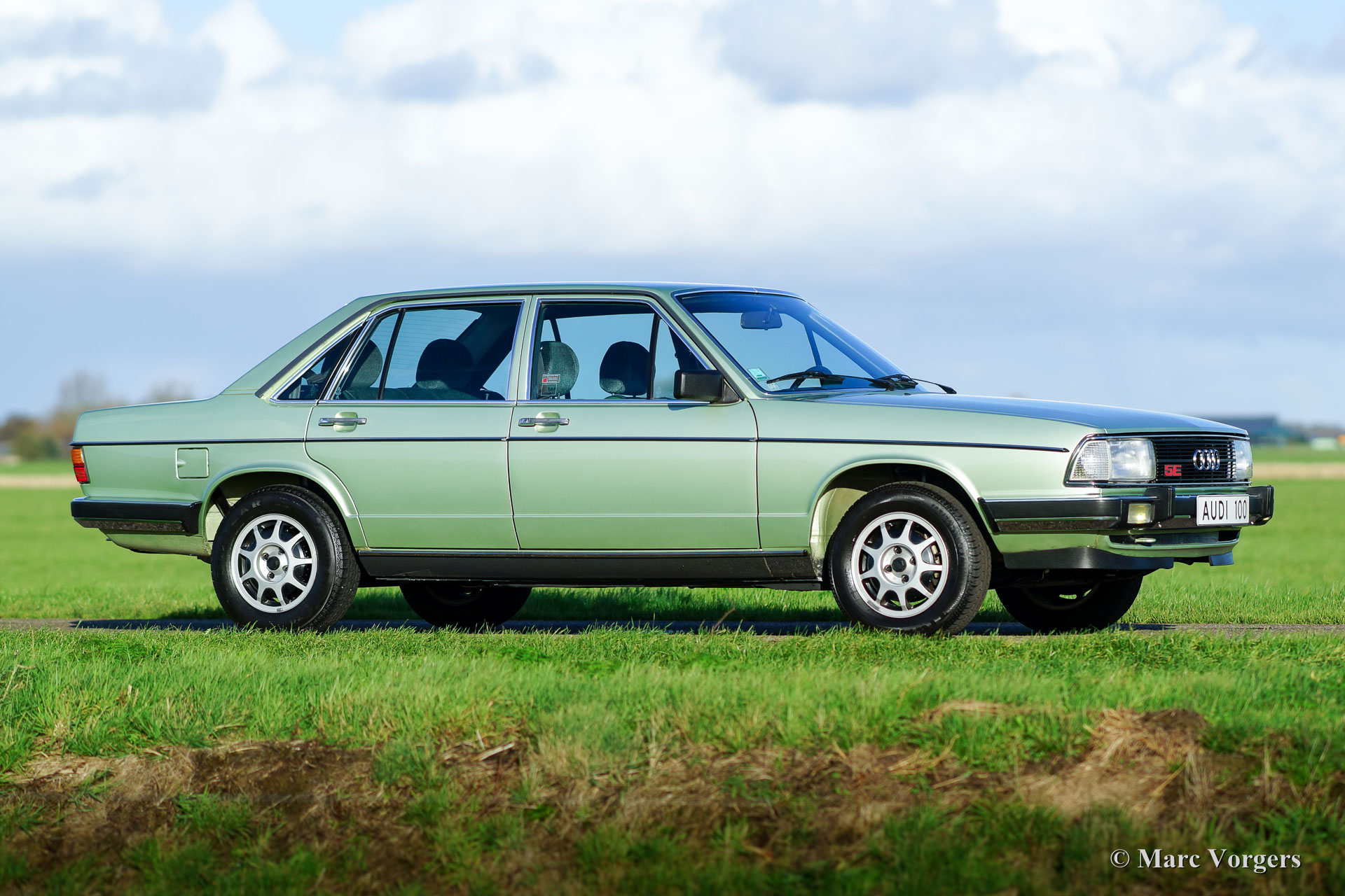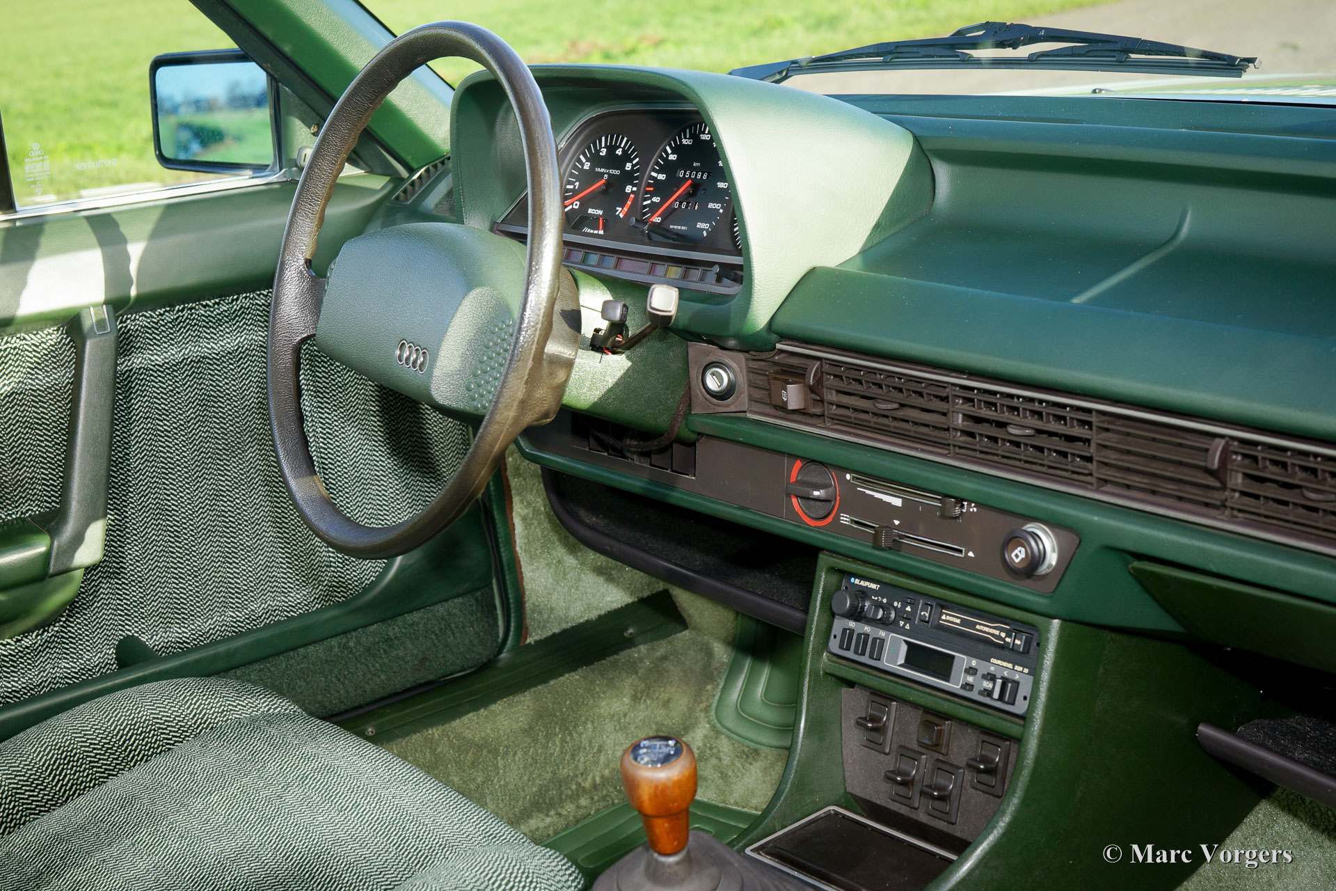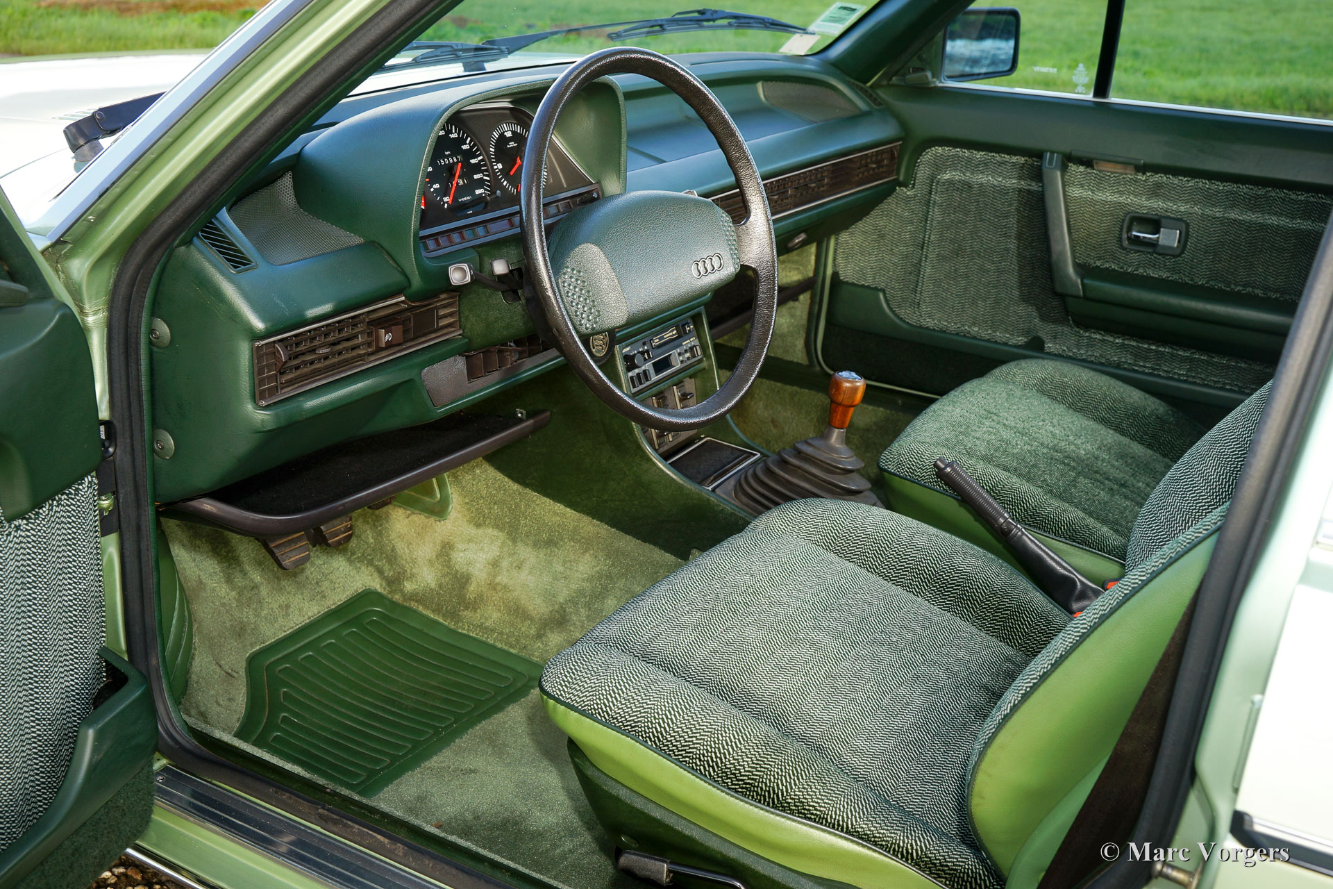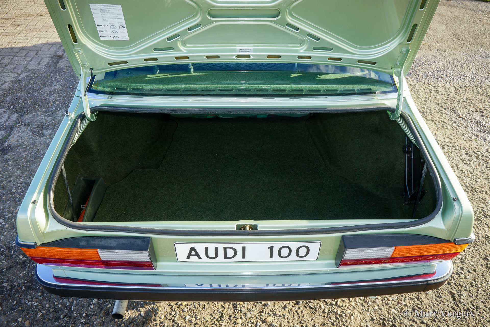 Audi 100 CD 5E, Jahr 1980. Farbe blassgrün metallic kombiniert mit einem grünen Stoff-Interieur. Das Interieur ist komplett mit einem extra Kissen-Set! Dieser Super-Originale-Audi 100, in der CD ‘Corps Diplomatique‘ Spitzenversion, wurde in Frankreich neu verkauft. Von neuem hat das Auto nur 50.500 Kilometer zurückgelegt. Der Audi verfügt über den legendären Fünfzylinder-Benzin-Einspritz-Motor, der im ersten Audi Quattro ebenfalls, aber mit Turboaufladung zu finden war. Dieser feine Audi kommt vom zweiten Besitzer. Das Auto ist in super originalem Top-Zustand; wie neu! Das Auto hat noch seine Originalfarbe, die hervorragend ist! Der Unterboden des Autos ist wie neu und das Interieur ist makellos! Das Auto wird komplett mit allen Originalheften und Schlüsseln geliefert. Außerdem ist der ursprüngliche Werkzeug-Set vorhanden sowie alle Service-Rechnungen. Dieser Audi 100 CD 5 E ist derzeit in den Niederlanden zugelassen. Dieses feine Automobil ist ein wahres Museumsstück; Wir fordern Sie heraus, ein besseres und schöneres Beispiel zu finden!