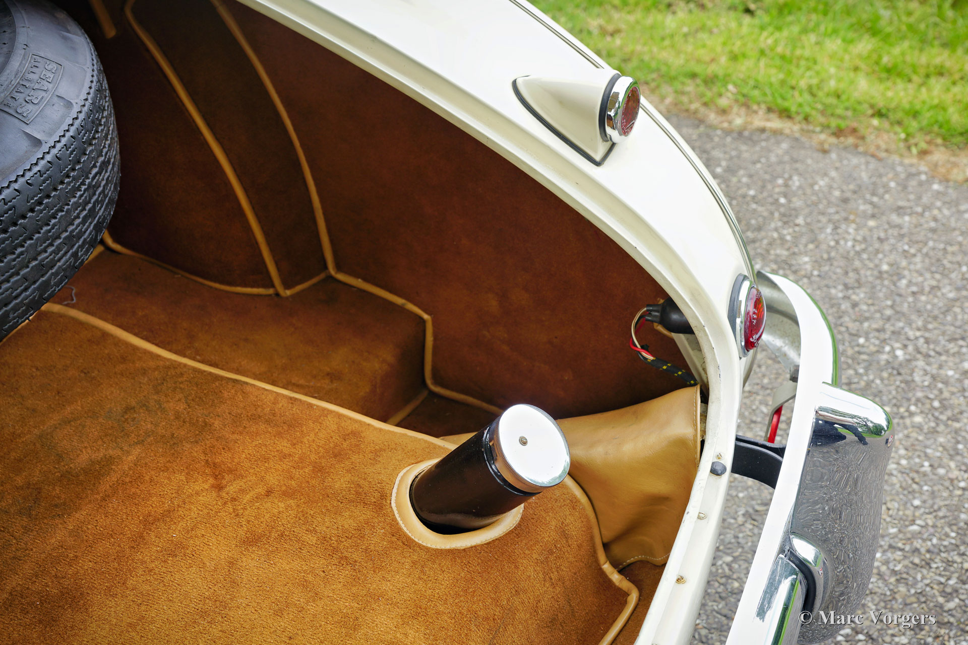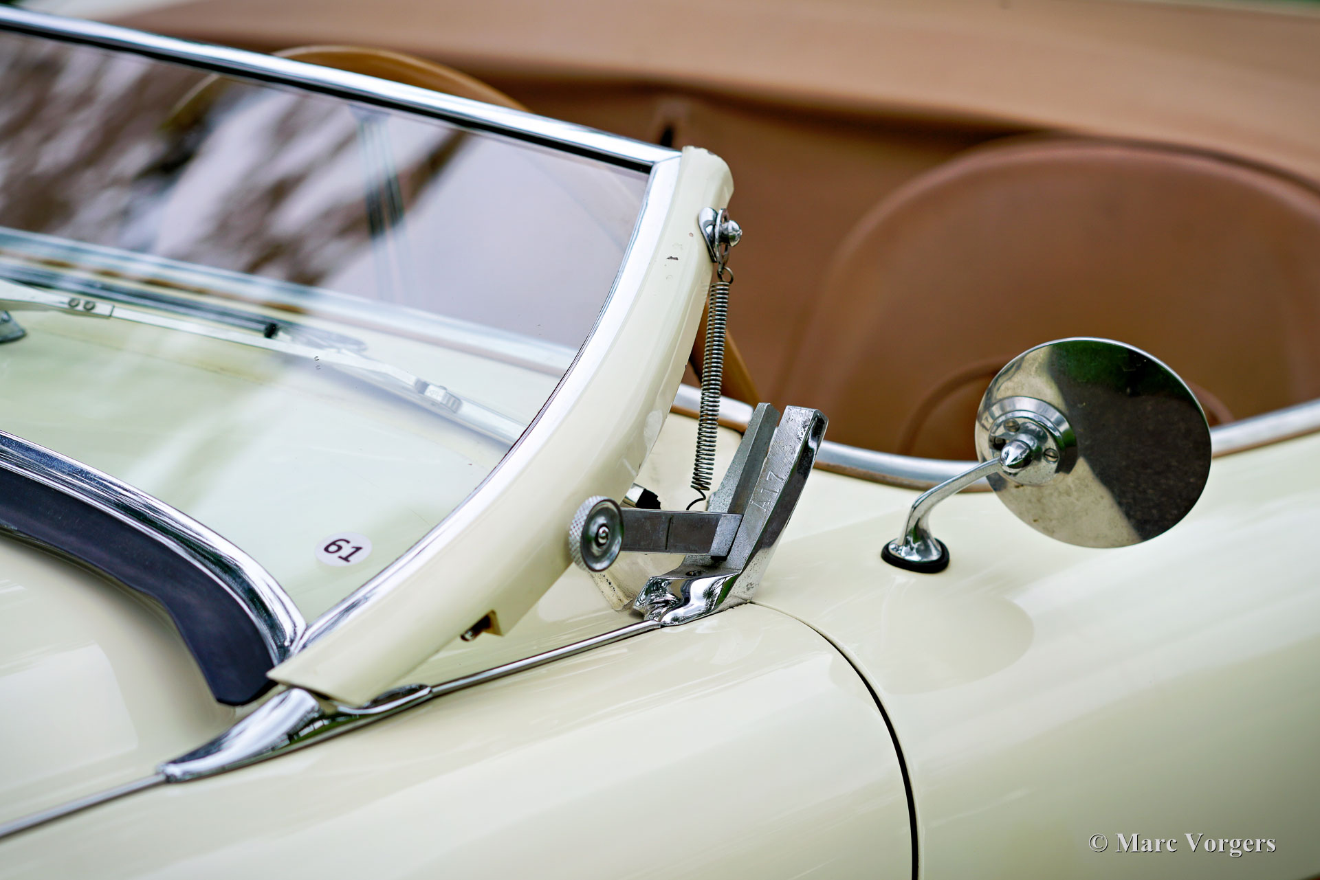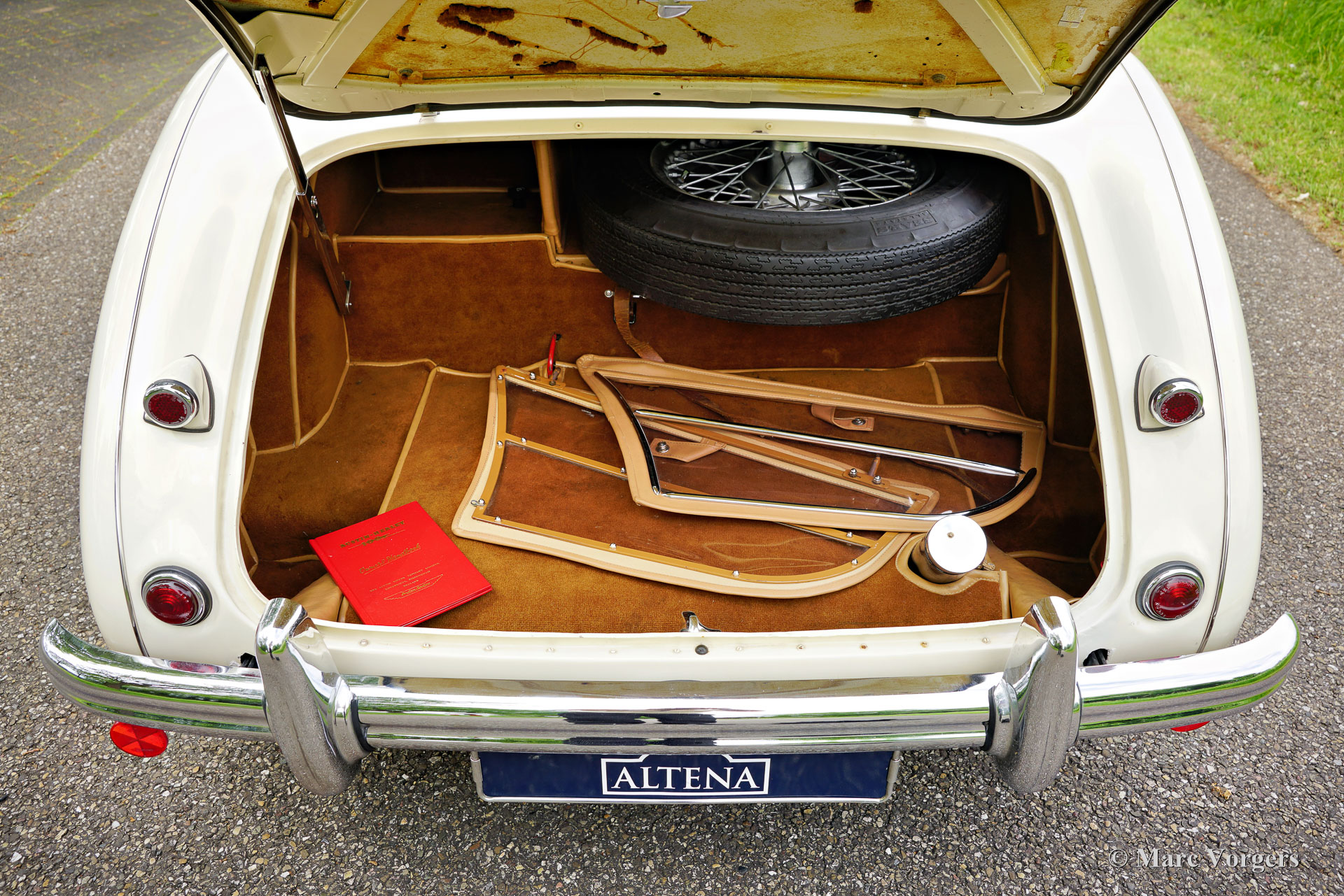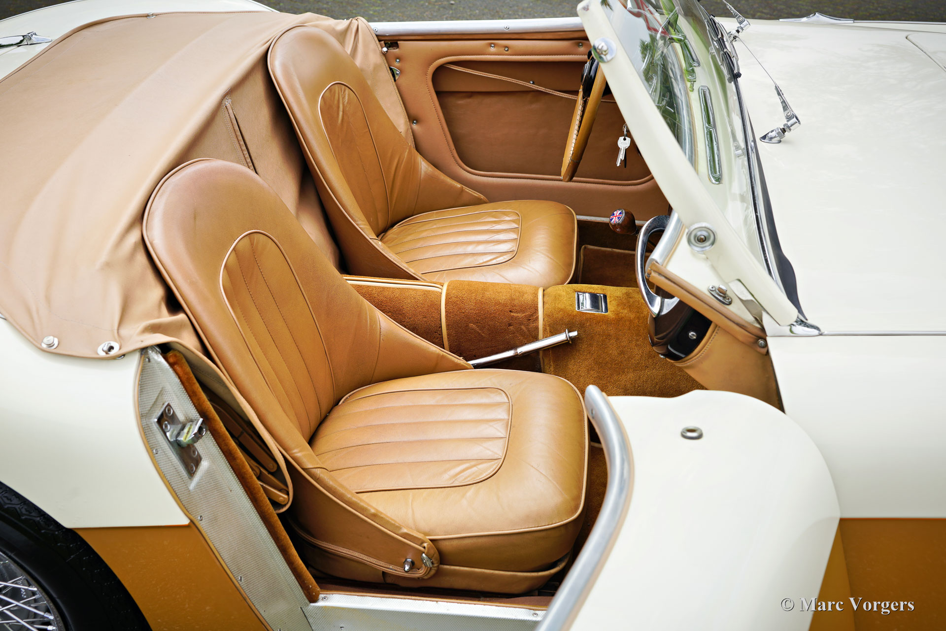 The former Healey models were more Spartan and featured fully detachable soft tops with separate side screens which could be stowed away in the booth.