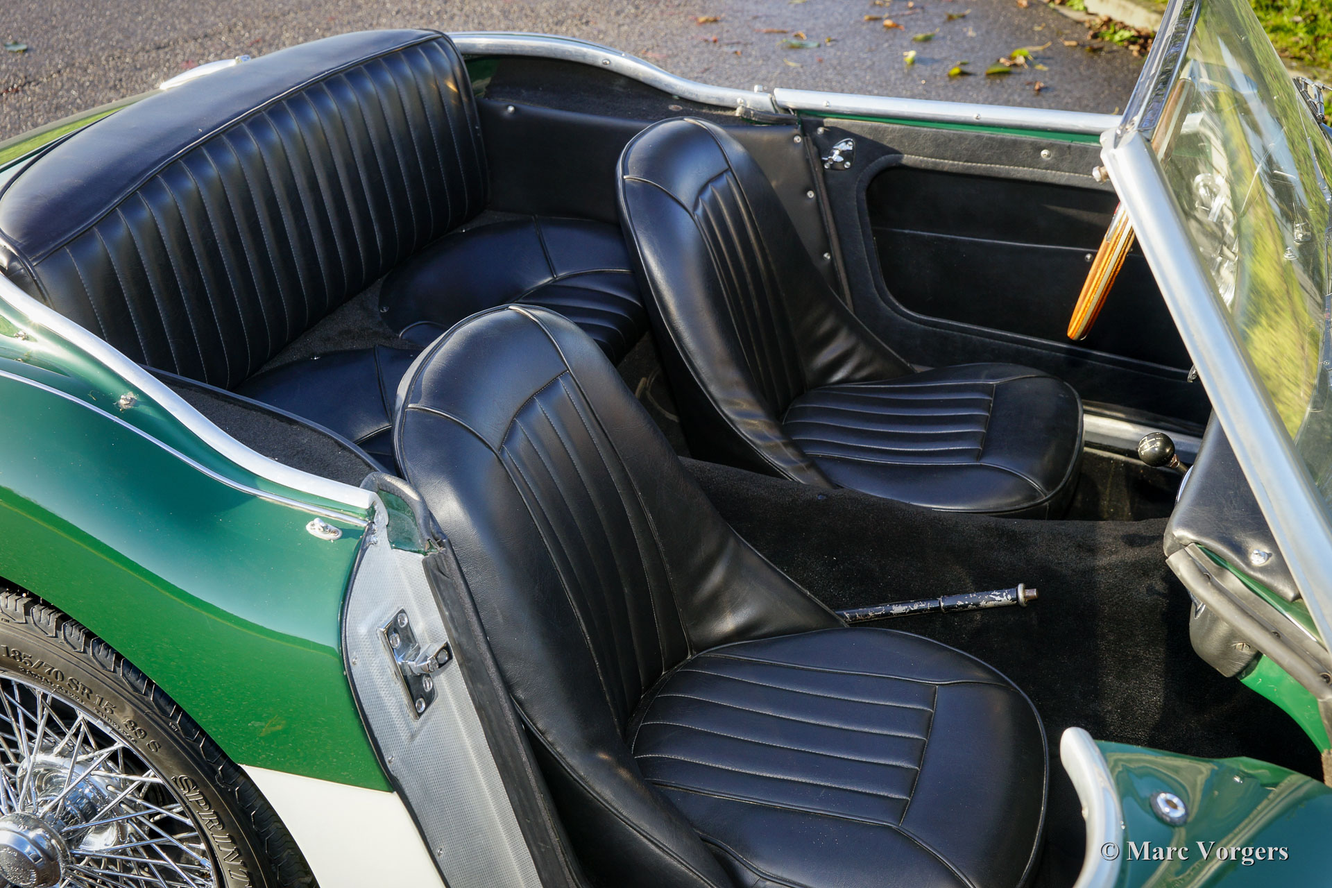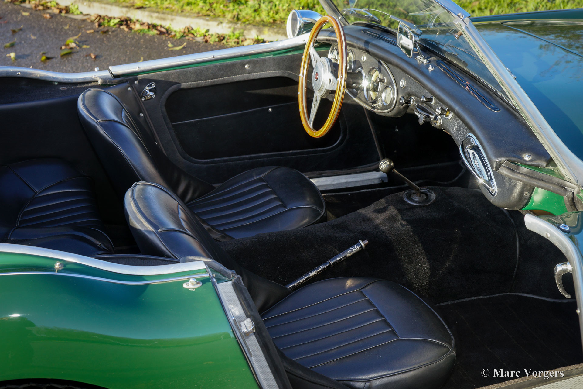 The former Healey models were more Spartan and featured fully detachable soft tops with separate side screens which could be stowed away in the booth.