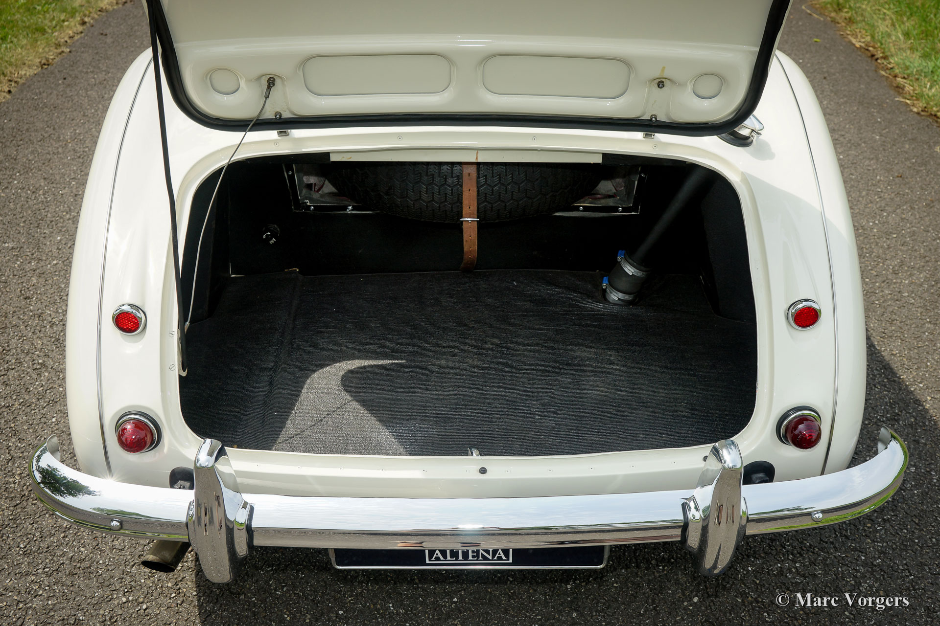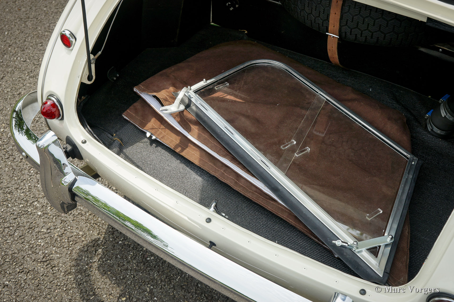 The former Healey models were more Spartan and featured fully detachable soft tops with separate side screens which could be stowed away in the booth.