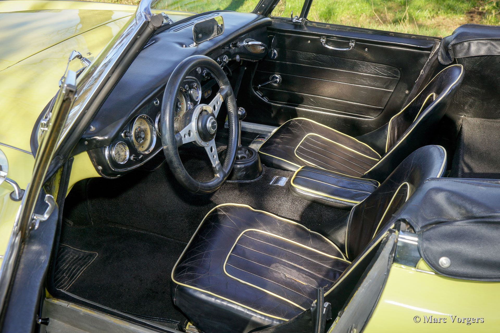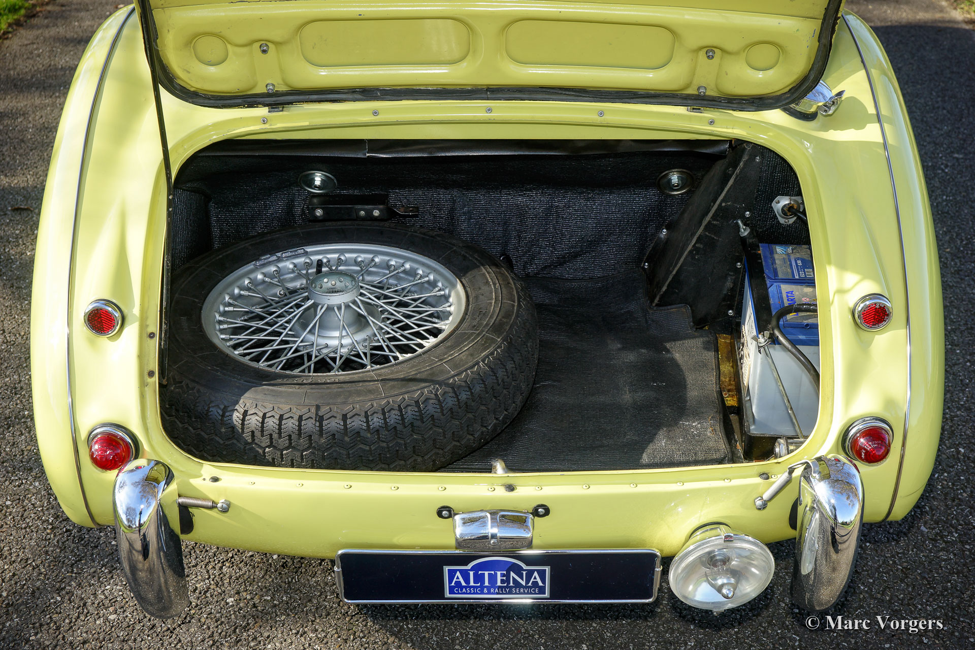The former Healey models were more Spartan and featured fully detachable soft tops with separate side screens which could be stowed away in the booth.