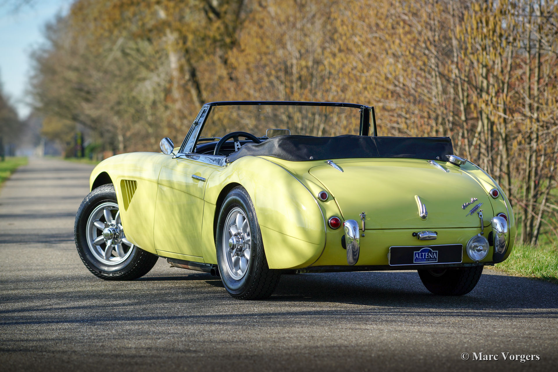 Austin Healey 3000 Mk IIa, Jahr 1963. Fahrgestellnummer HBJ7L / 2435X, Motornummer 19F / RU / H523X. Farbe Primrose (Sunburst) gelb kombiniert mit einem schwarzen Interieur mit hellgelben Paspeln und schwarzem Teppich. Dieses wundervolle "Big Healey" wurde neu verkauft in den USA. Im April 1999 wurde das Auto in die Niederlande importiert. In den Jahren 1999 - 2001 wurde das Auto umfassend restauriert, überholt und präpariert für Historische (Rallye-) Fahrten. Ein großer Teil der Arbeit wurde von Altena Classic Service ausgeführt. Das Auto ist seit 2001 beim aktuellen Besitzer! Dieser feine Healey ist in einem sehr guten Zustand, das Auto sieht fantastisch aus und das Auto fährt perfekt! Die (Wartung) Geschichte der letzten 20 Jahre ist bekannt und dokumentiert. Dieser Austin Healey ist ausgestattet mit Minilite-Leichtmetallräder, Overdrive, 185/15 Vredestein Sprint Classic-Reifen, 7-Zoll-Lucas-Breitstrahl- / Nebelscheinwerfer, Lucas-Rückfahrscheinwerfer, Schnellverschlüsse an der Motorhaube und Kofferraumdeckel sowie belüftete Scheibenbremsen am Front, Kühlöffnungen in den vorderen Kotflügeln und einen Seitenauspuff. Das Auto wird komplett mit original Stoßfängern, Auspuff und Lenkrad geliefert! Dieser kraftvolle und sportliche Healey ist bereit für jede neue Reise / Abenteuer in den Händen eines neuen Besitzers!