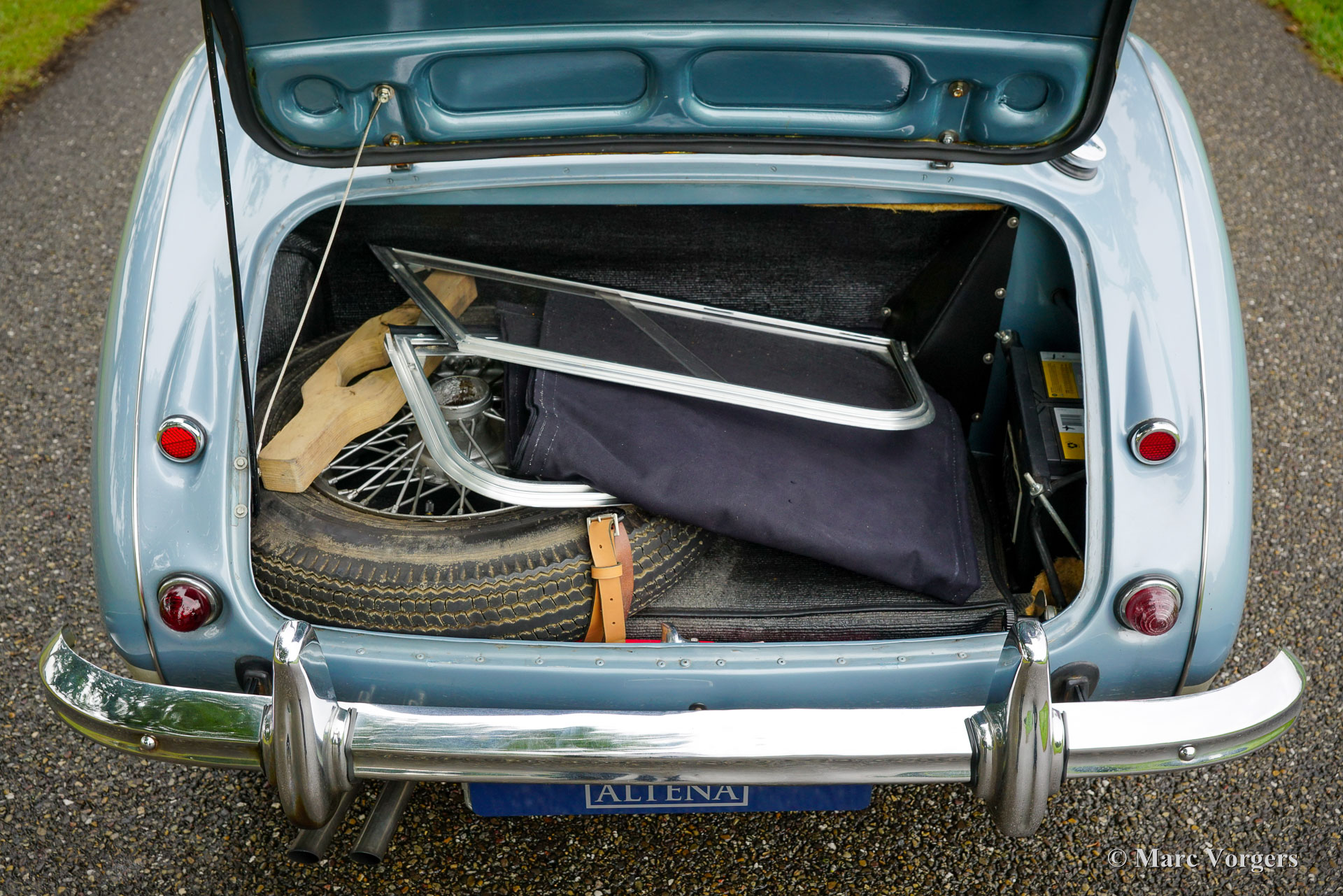 The former Healey models were more Spartan and featured fully detachable soft tops with separate side screens which could be stowed away in the booth.