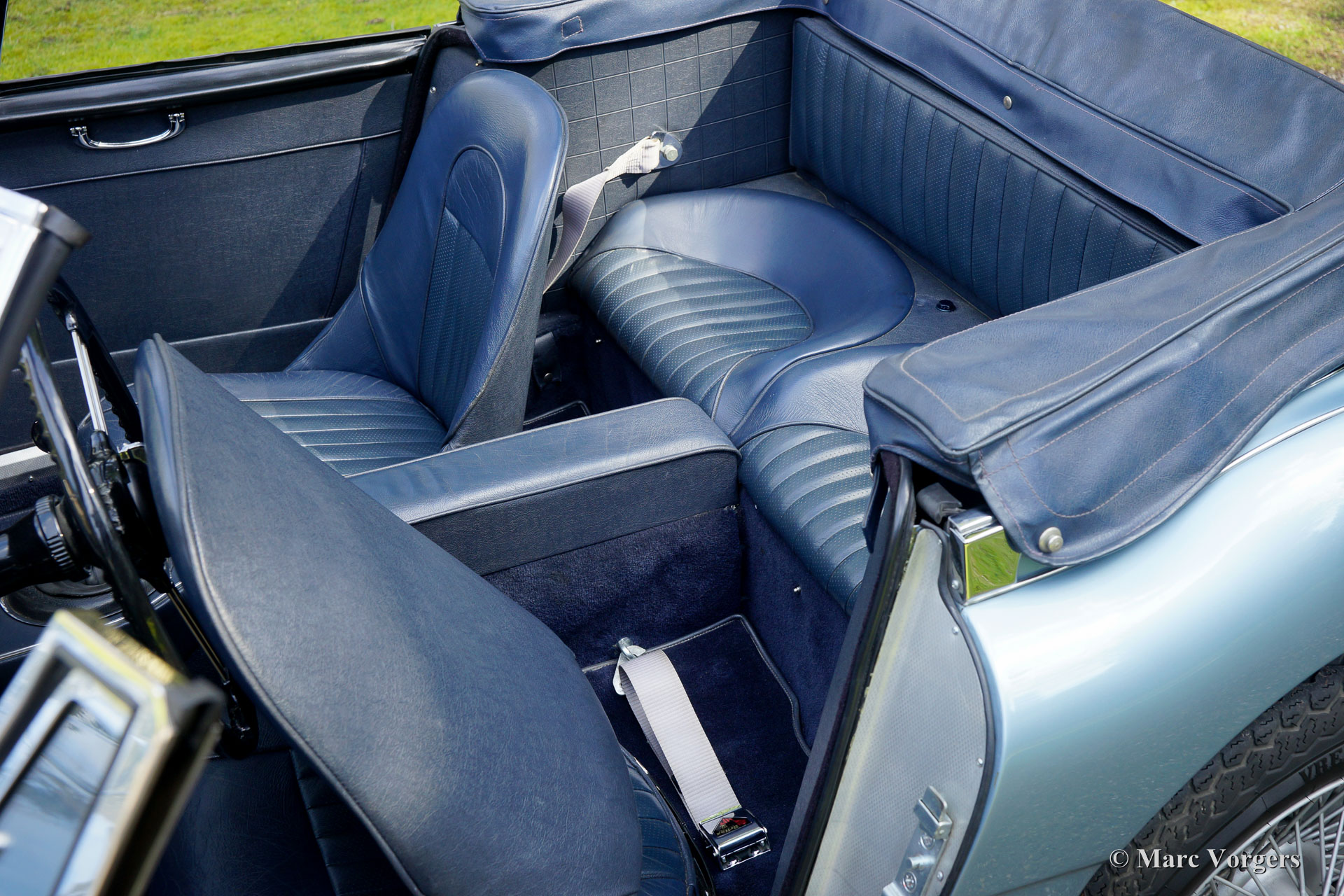 The former Healey models were more Spartan and featured fully detachable soft tops with separate side screens which could be stowed away in the booth.