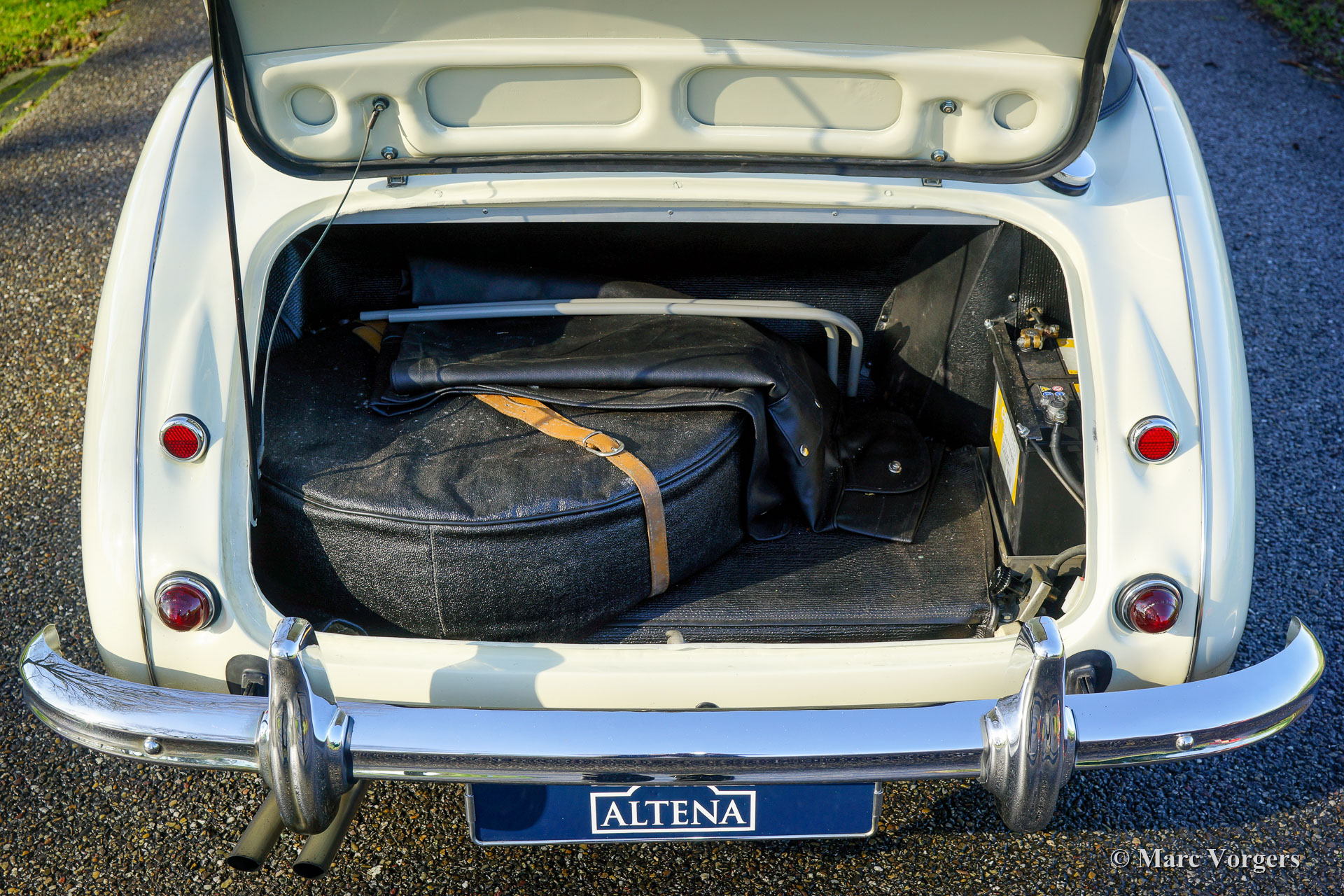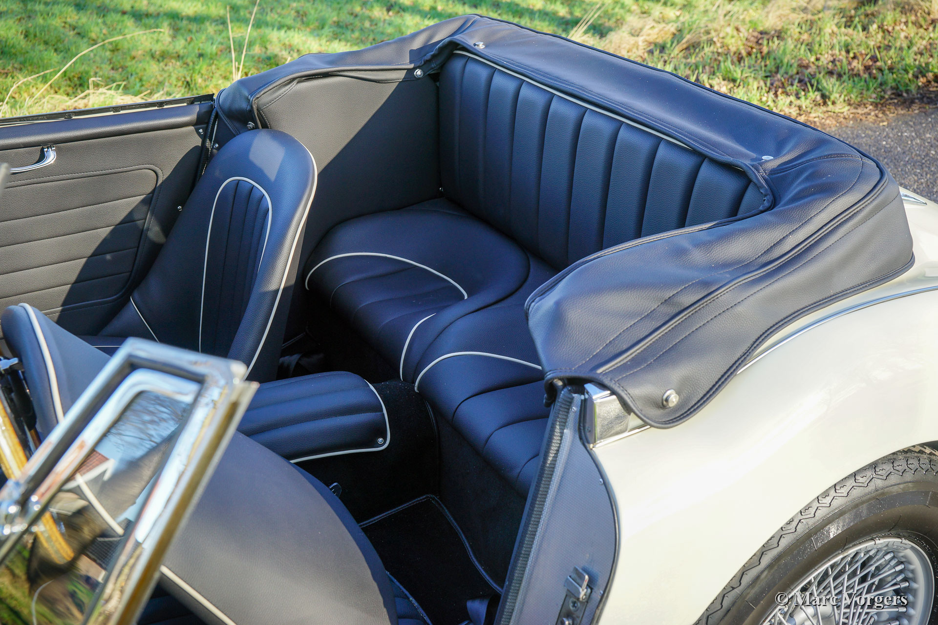 The former Healey models were more Spartan and featured fully detachable soft tops with separate side screens which could be stowed away in the booth.