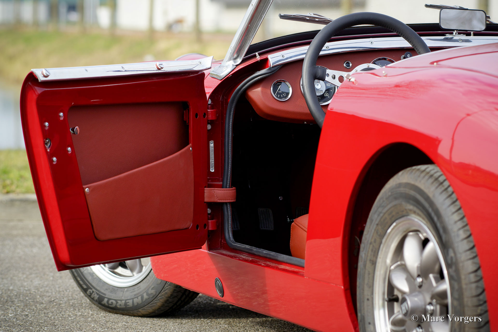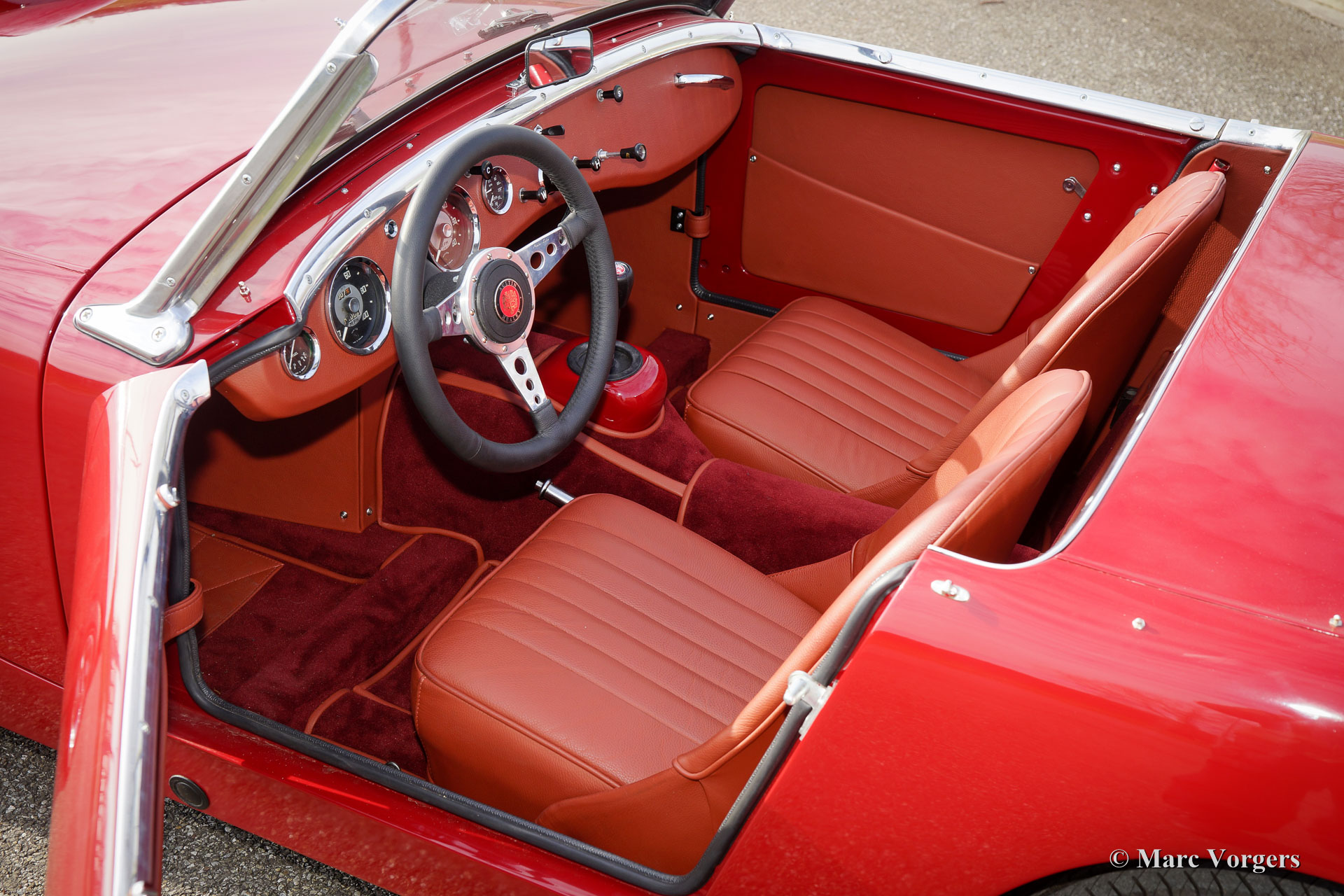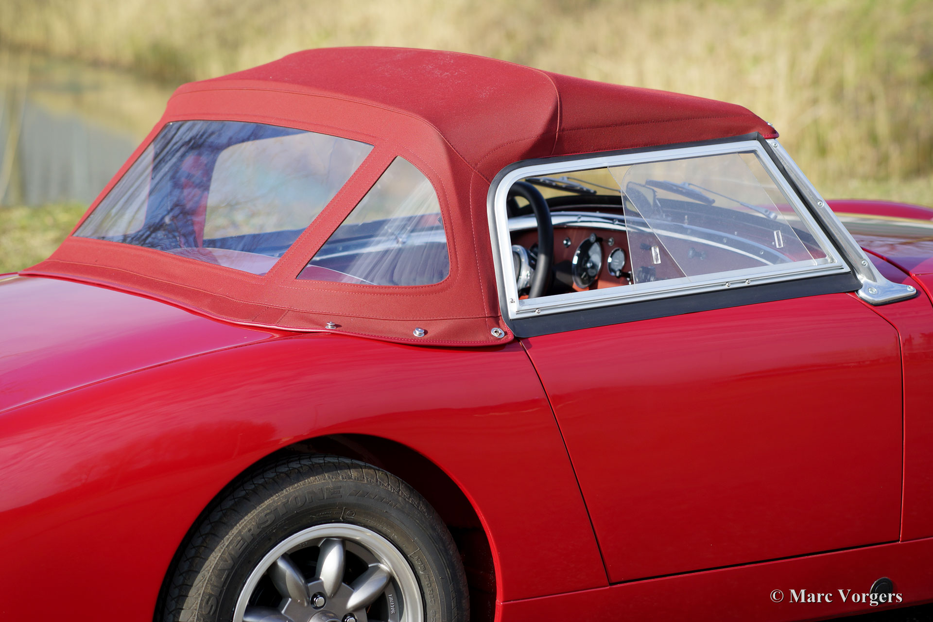 The former Healey models were more Spartan and featured fully detachable soft tops with separate side screens which could be stowed away in the booth.