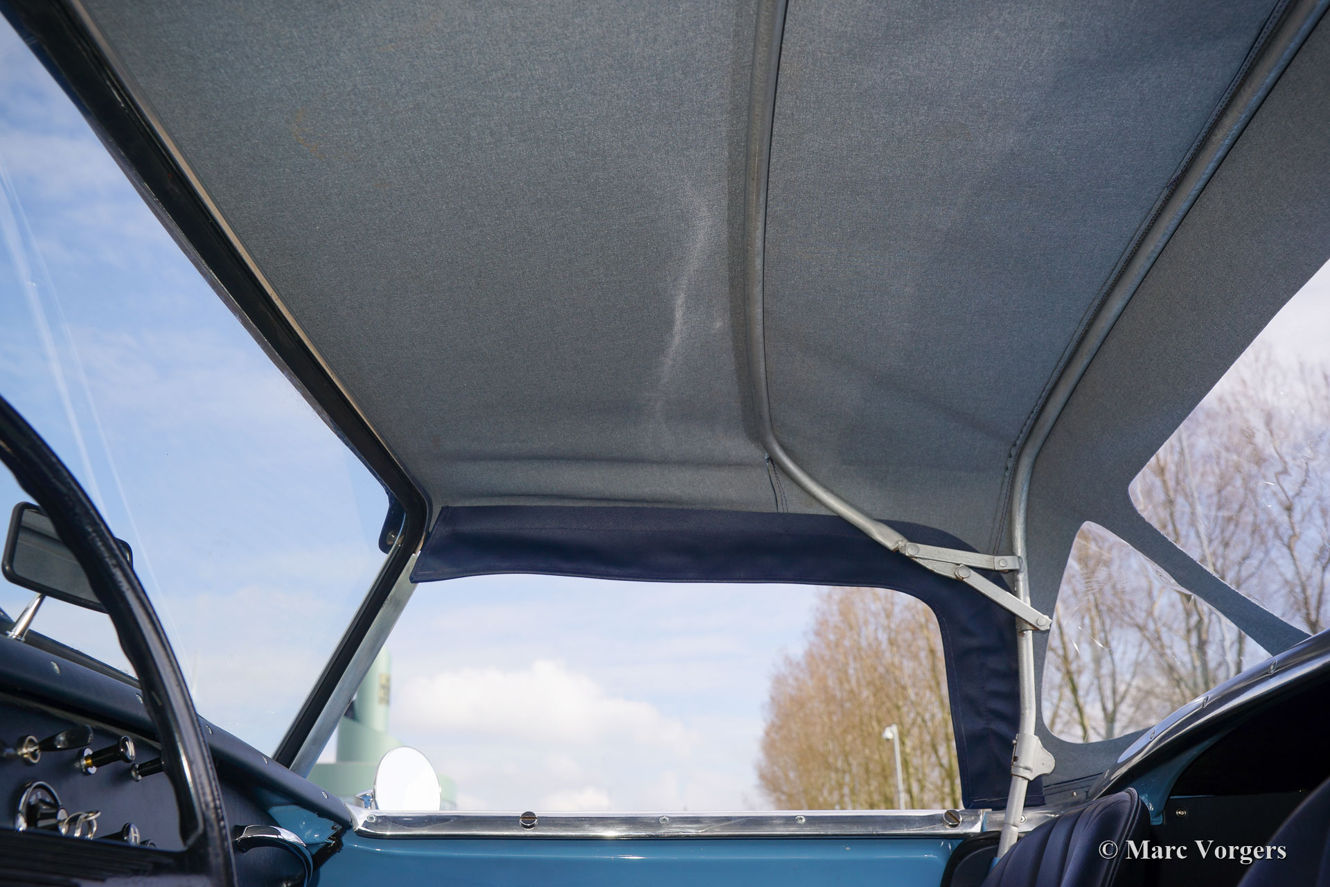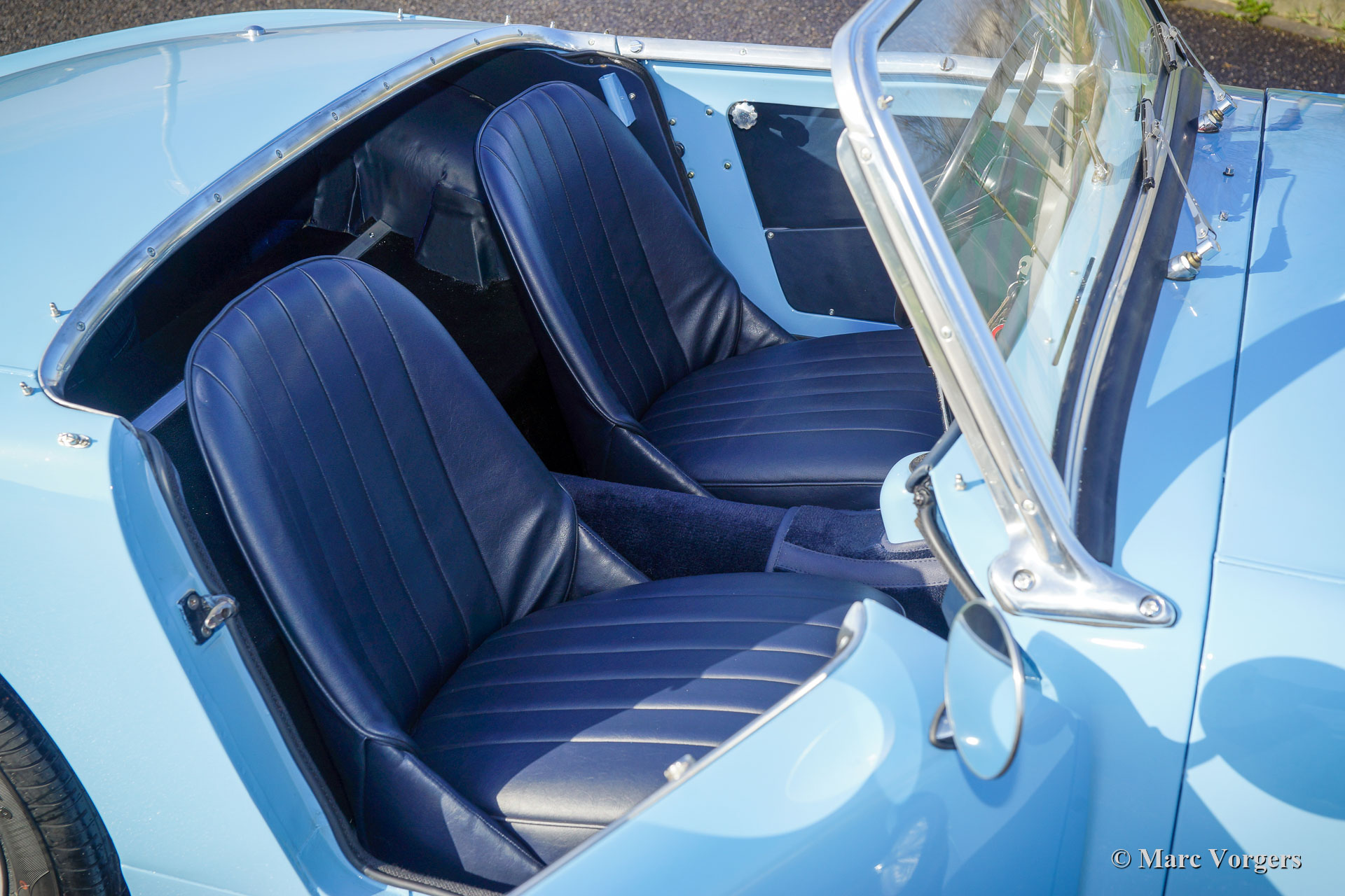 The former Healey models were more Spartan and featured fully detachable soft tops with separate side screens which could be stowed away in the booth.