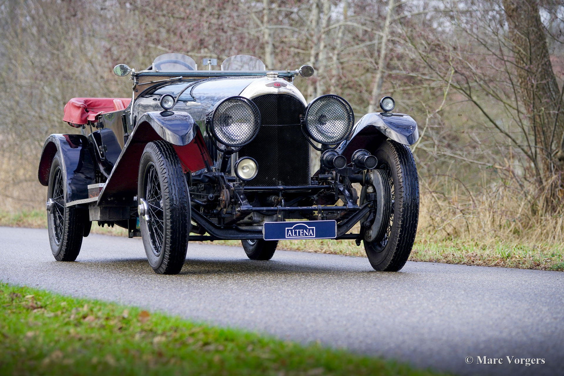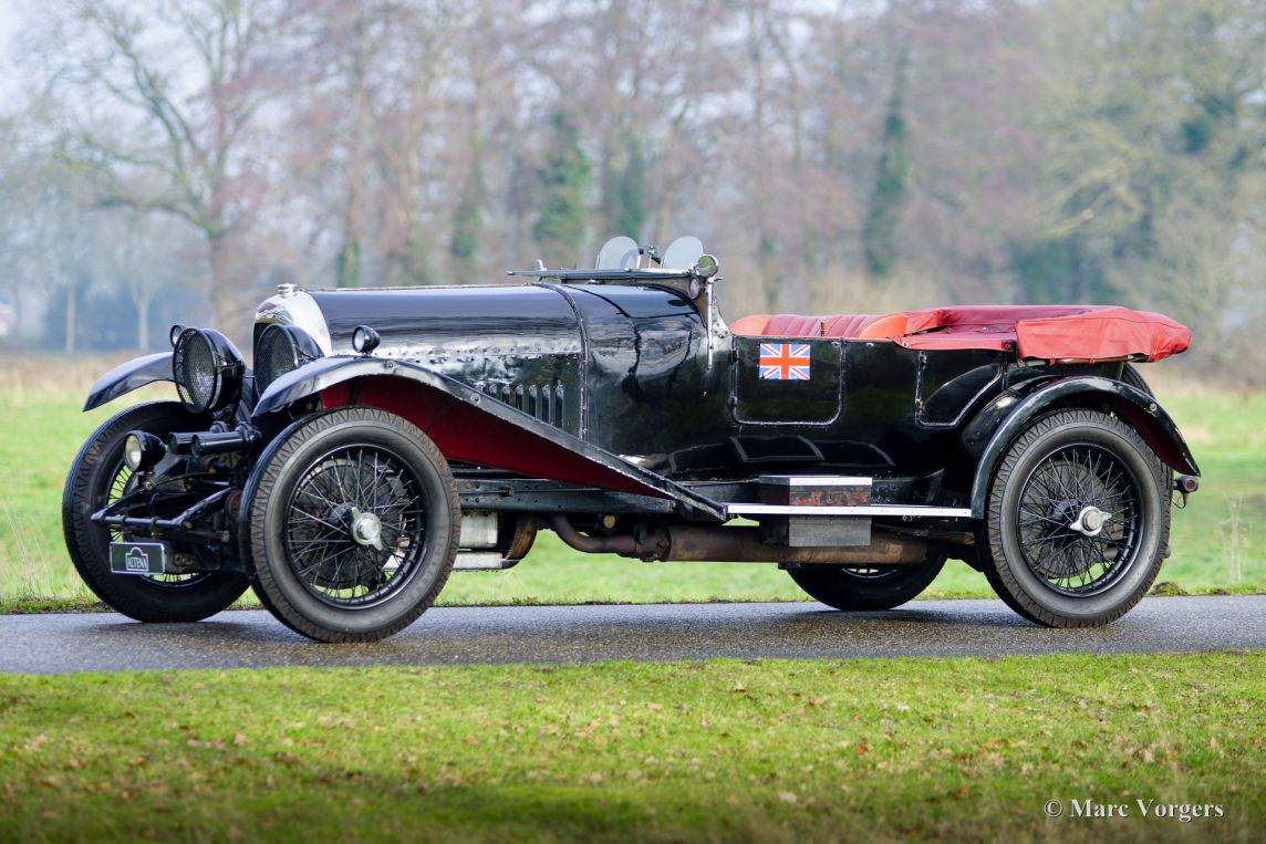 Bentley 3-Liter, Baujahr 1923. Fahrgestellnummer 110, Motornummer 104. Kennzeichen KLY 3, Spitzname „Wilfred“. Dieser Bentley wurde am 4. Juni 1923 ausgeliefert. Der erste datierte Arbeitsauftrag in originalen Serviceheft lautet: „Für den Rennsport zerlegt“. Dieser Bentley 3-Liter gewann ein Rennen in Brooklands unter der Führung von Captain Cecil Wingfield Twisleton-Wykeham Fiennes. 1923 belegte Fiennes den ersten Platz im Brooklands 90-mph-Langstrecken-Handicap-Rennen. Er fuhr zwei Runden mit einer Durchschnittsgeschwindigkeit von 92,23 mph. Einen weiteren Podiumsplatz – den dritten Platz – erreichte er im 35. Brooklands 100-mph-Kurzstrecken-Handicap-Rennen. Die Daten des Brooklands Automobile Racing Club (BARC) zu Fahrgestellnummer 110 wurden vom bekannten früheren Motorsportredakteur und Brooklands-Historiker William „Bill“ Boddy überprüft und bestätigt. Der Bentley ist auf zeitgenössischen Fotos bei Rennen in Brooklands mit seitlichem Auspuff und ohne Kotflügel dokumentiert. Weitere Werksaufträge erwähnen den Einbau unterschiedlicher Hinterachsübersetzungen, spezieller Hochkompressionskolben, Hartford-Stoßdämpfer usw. Im Dezember 1923 wurde Chassis 110 vom Werk wieder standardisiert und am 15. Dezember 1923 für 525 Pfund Sterling an Herrn Angus Douglas Vickers (Mitglied der Familie Vickers und Eigentümer der berühmten Vickers-Flugzeugfabrik in Brooklands) verkauft. Vickers fuhr den Wagen nie bei Rennen, sondern nutzte ihn als Privatfahrzeug. 1924 ließ er den Wagen ab Werk mit zusätzlichen Vorderradbremsen und den beiden SU-„Sloper“-Vergasern aufrüsten. 1925 wurde der Motor im Werk Kingsbury einer kleineren Überholung unterzogen, und später im selben Jahr wurde der Wagen an RAF Flight Lieutenant (und später Squadron Leader) John Brooke verkauft. 1935 wurde der letzte Arbeitsauftrag im Werksinstandhaltungsregister eingetragen, der eine Reparatur des Fahrgestells betraf. Fahrgestellnummer 110 befand sich damals noch im Besitz von John Brooke, der zu dieser Zeit in Athen lebte. Angeblich nahm Herr Brooke den Bentley mit nach Griechenland, wo er während des Zweiten Weltkriegs stationiert war. Der Bentley überstand den Zweiten Weltkrieg und war 1947 in einen Unfall verwickelt, der den Einbau eines Ersatzfahrgestellrahmens von Fahrgestellnummer 712 erforderlich machte. Trotzdem blieb die ursprüngliche Identität von Fahrgestellnummer 110 erhalten, was durch erhaltene Originalteile wie die nummerierte Schalterplatte, das Motorgehäuse und der Benzintank belegt wird. Nach der Reparatur wurde das Fahrzeug bei der Straßenverkehrsbehörde zur Umklassifizierung eingereicht, um in eine niedrigere Steuerklasse zu fallen, und als KLY3 neu zugelassen. Der Vorbesitzer (der verstorbene Herr Lionel Burrell – Gründer des Magazins „Classic Cars“, verstorben im März 2025) erwarb den Wagen in Jahr 1963 und pflegte ihn 60 Jahre lang! 1969 fuhr Herr Burrell den berühmten „Bentley Boy“ S.C.H. „Sammy“ Davis im KLY 3 nach Le Mans zum 50-jährigen Jubiläum der Marke! Herr Burrell führte außerdem ein Interview mit dem Markengründer W.O. Bentley und fotografierte ihn an diesem Tag hinter dem Steuer des Wagens! Dieses Foto wurde im Januar 1969 auf dem Titelbild der Zeitschrift „The Autocar“ veröffentlicht. Zu den späteren Arbeiten am KLY 3 gehören eine Karosserierestaurierung in den 1980er-Jahren und eine Überholung des Ventiltriebs im Jahr 2004 durch Fopp d’Hane, wobei auch die Magnetzünder, Reifen und Vergaser instandgesetzt wurden. Nach 60 Jahren in Besitz des Wagens wechselte dieser 2023 zum jetzigen Eigentümer. Dieser ließ den Bentley technisch und mechanisch überprüfen, warten und für die Teilnahme an Oldtimer-Veranstaltungen vorbereiten. Dieser exquisite Bentley 3-Litre wurde über Jahrzehnte von Markenspezialisten gewartet und blickt auf eine lange und gut dokumentierte Geschichte im Rennsport zurück. Der Wagen präsentiert sich mit einer fantastischen Originalpatina und fährt und lenkt hervorragend. Wir sind noch nie einen anderen Vorkriegs-Bentley gefahren, bei dem sich der nächste Gang fast gedankenlos einlegen lässt. Zum Fahrzeug gehört eine umfangreiche Dokumentation seit seiner Auslieferung, darunter das originale Serviceheft aus Kingsbury, ein handschriftliches Protokoll der Überholung Ende der 1940er-Jahre, ein Handbuch für den 3-Litre Bentley, das Handbuch „Technische Fakten zum Vintage-Bentley“ sowie zahlreiche Fotos und Rechnungen. Eine einmalige Gelegenheit, einen in Brooklands siegreichen Vintage-Bentley zu erwerben!