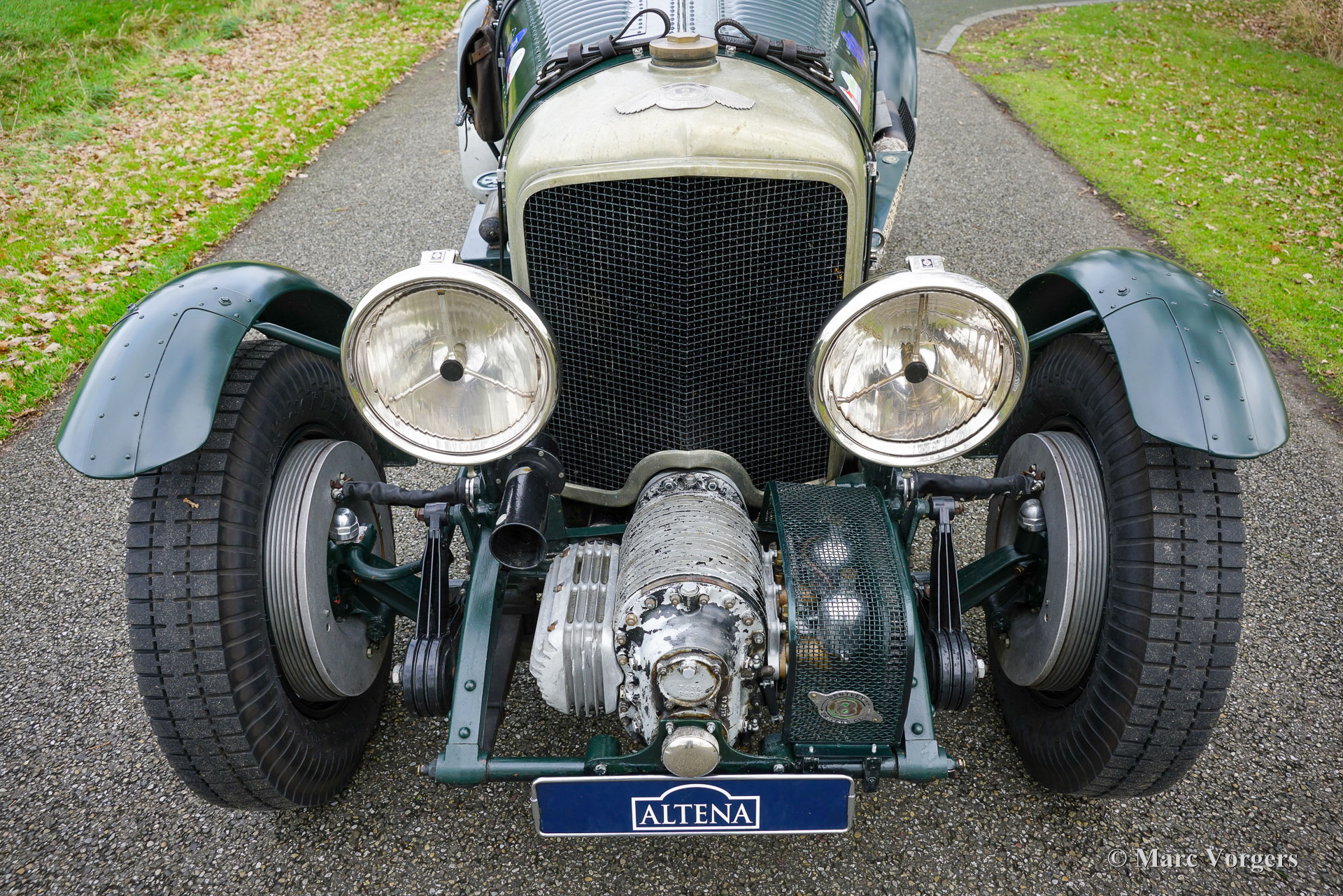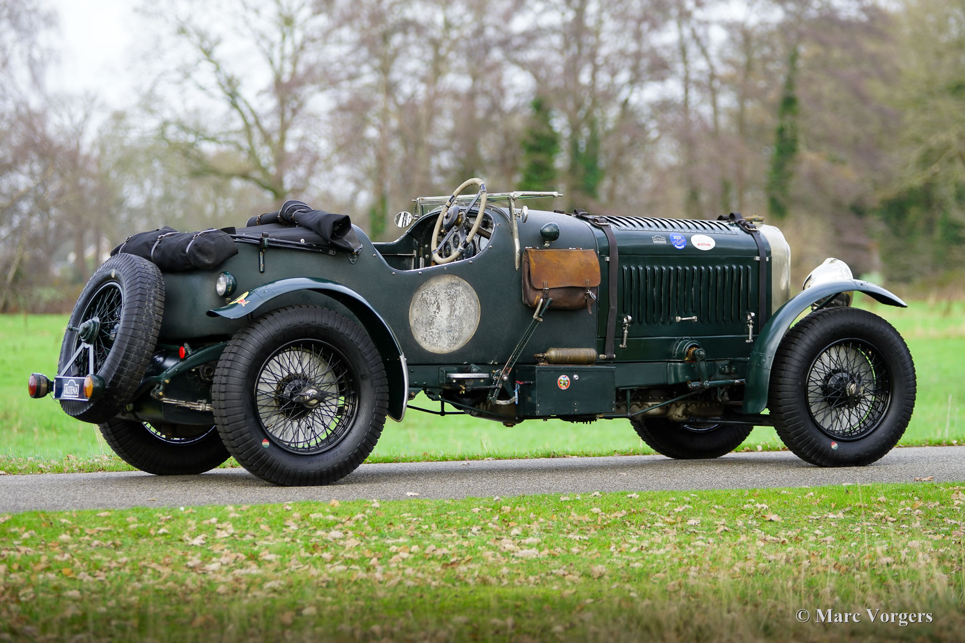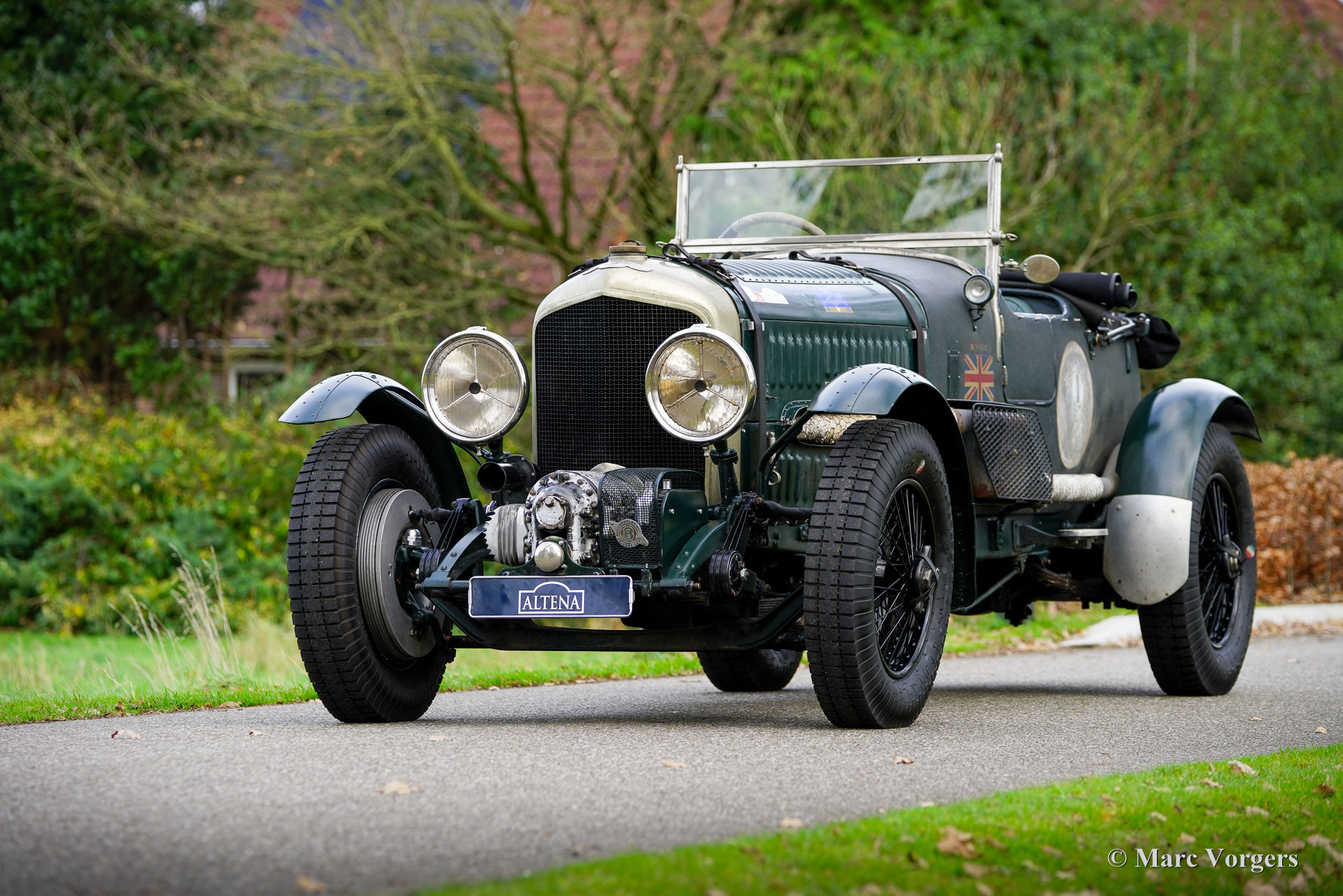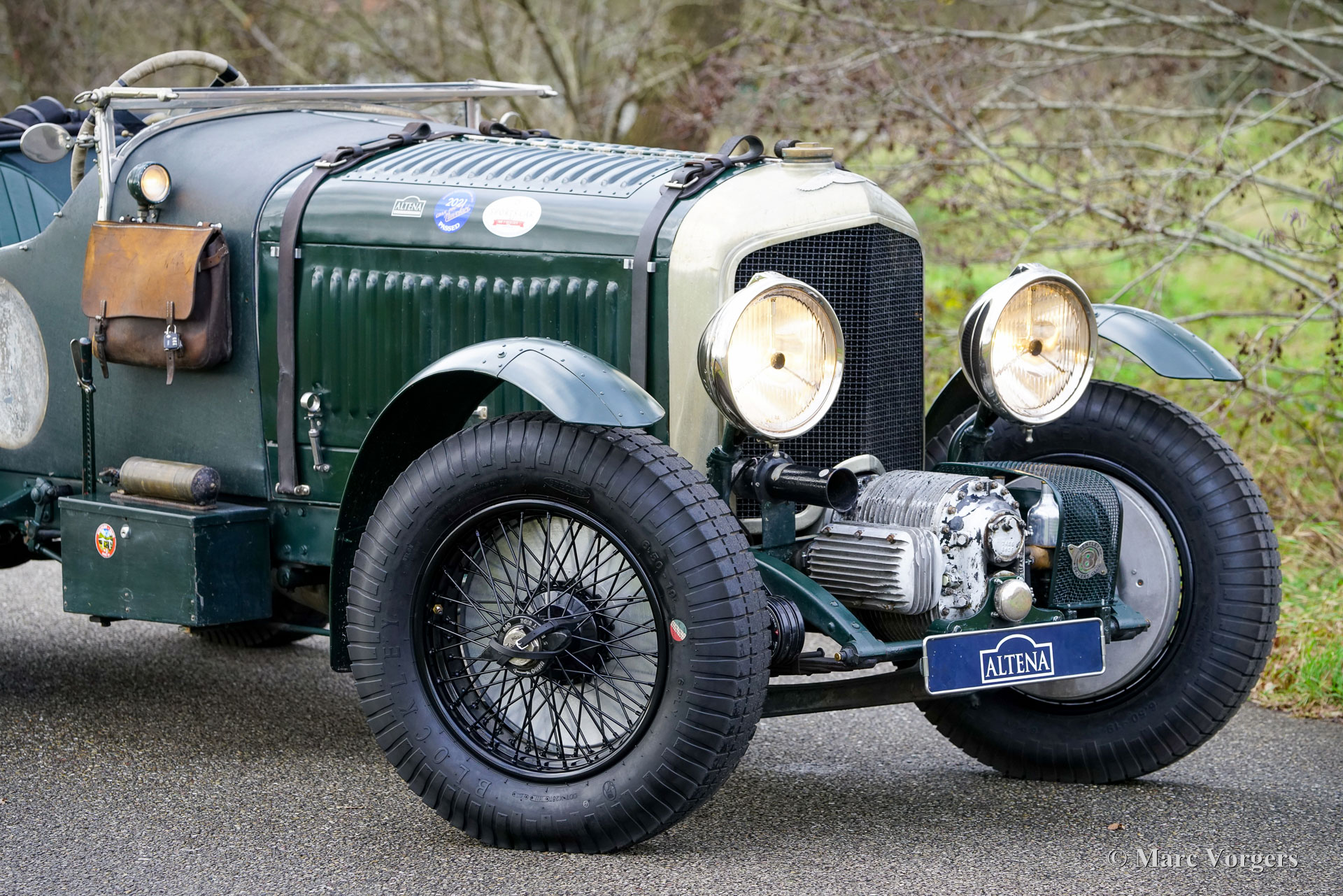 Bentley 4-Litre „Blower“, Baujahr 1931. Der Bentley 4-Litre zählt zu den seltensten Bentley-Modellen, die unter der Leitung von W.O. Bentley vor der Übernahme durch Rolls-Royce im Jahr 1931 produziert wurden. Nur fünfzig Exemplare des 4-Litre wurden gebaut, und dieses Fahrzeug ist ein seltener Überlebender. Im Jahr 2017 wurde der Wagen von Altena Classic Service vollständig zerlegt und verbessert, ohne die originale Patina zu beeinträchtigen. Der 3915 cm³ große Bentley-Reihensechszylinder wurde überholt und mit einem einwandfrei funktionierenden Marchal-Kompressor (Gebläse) ausgestattet. Sämtliche anderen mechanischen Komponenten wurden von Altena Classic Service geprüft, überholt und instandgesetzt. Einen Eindruck von den durchgeführten Arbeiten erhalten Sie im Fotoreport von 2017. Die Hinterachse wurde überholt, neue Trommelbremsen angefertigt, eine neue Lenksäule mit neuem Lenkgetriebe eingebaut und neue Speichenräder montiert. Der Wagen ist mit zwei SU-15-Motoren ausgestattet. Vergaser (am Kompressor montiert) und zwei SU-Kraftstoffpumpen sowie Speichenräder mit Blockley-Reifen der Größe 6,50 x 19 Zoll. Die originale Sitzbank (mit dunkelrotem Leder bezogen und noch vorhanden) wurde durch zwei Schalensitze mit grünem Lederbezug ersetzt. Lackiert in dunklem British Racing Green und mit einer über 80 Jahre alten Patina, präsentiert sich dieser mächtige Bentley 4-Liter-Kompressor in beeindruckend originalem Zustand. Seit der mechanischen Überholung in unserer Werkstatt hat der Besitzer den Wagen bei verschiedenen Langstrecken-Rallyes wie dem Gran Premio Nuvolari 2021 genossen. 2024 unternahm der eigner mit dem Bentley eine lange Reise durch Frankreich. Er hat sich als robuster und zuverlässiger Begleiter erwiesen! Dieser wundervolle Vintage-Bentley ist in der niederländischen und europäischen Oldtimer- und Rallye-Szene bestens bekannt. Der Wagen wurde und wird seit 2017 in unserer Werkstatt lückenlos gewartet und ist bereit für viele aufregende Abenteuer in den Händen eines echten Bentley-Fans!