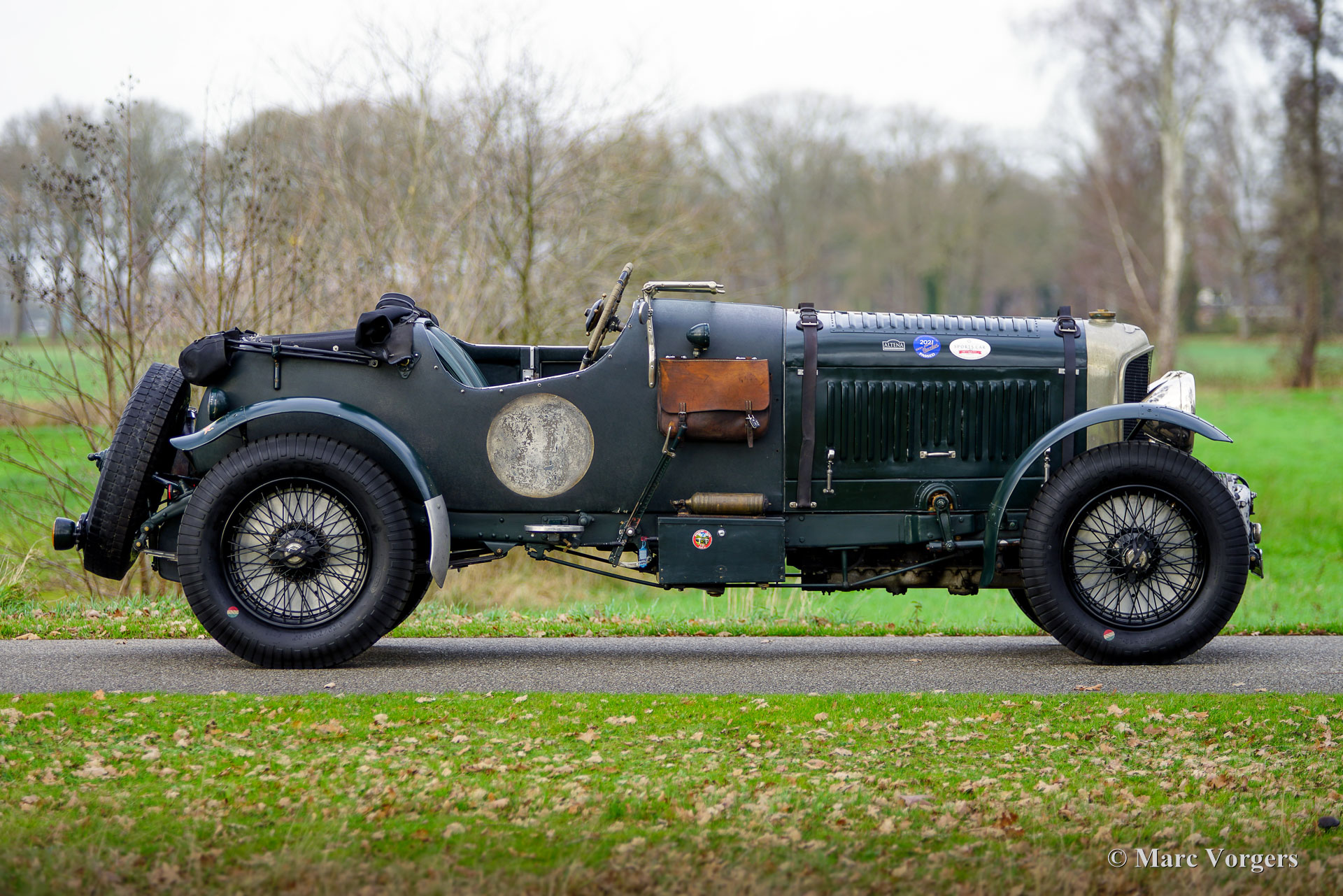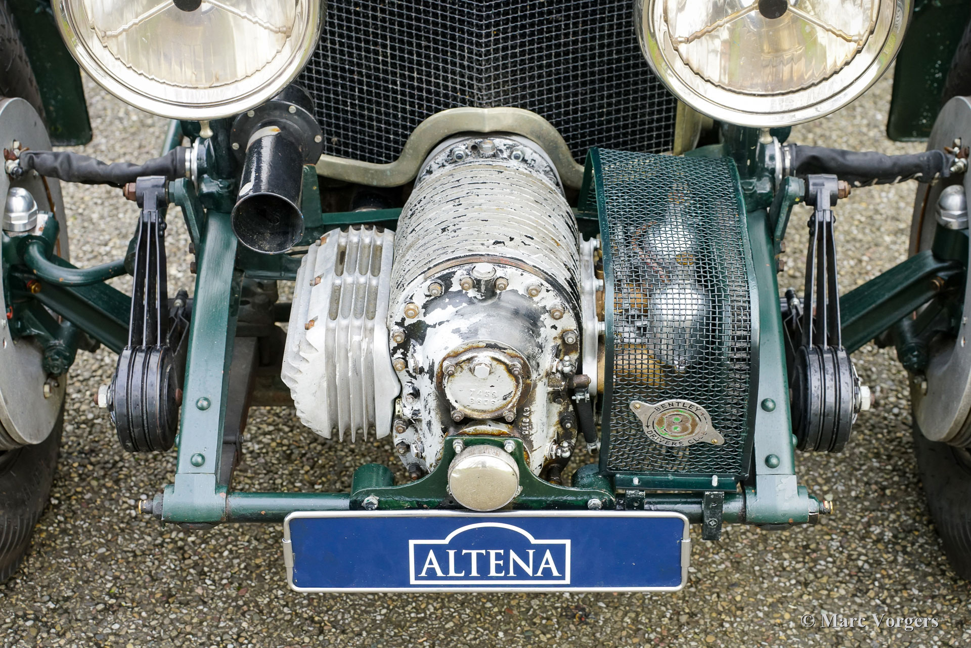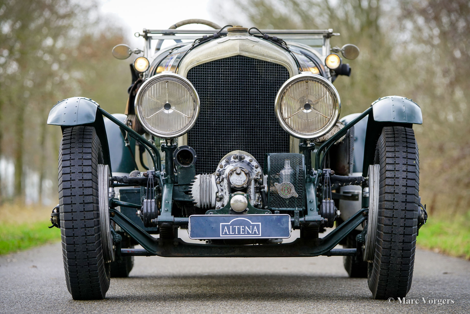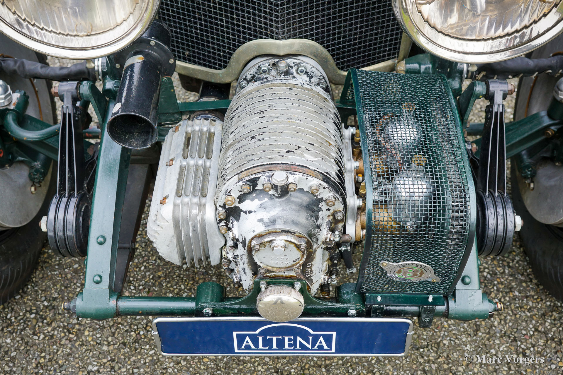 Bentley 4-Litre „Blower“, Baujahr 1931. Der Bentley 4-Litre zählt zu den seltensten Bentley-Modellen, die unter der Leitung von W.O. Bentley vor der Übernahme durch Rolls-Royce im Jahr 1931 produziert wurden. Nur fünfzig Exemplare des 4-Litre wurden gebaut, und dieses Fahrzeug ist ein seltener Überlebender. Im Jahr 2017 wurde der Wagen von Altena Classic Service vollständig zerlegt und verbessert, ohne die originale Patina zu beeinträchtigen. Der 3915 cm³ große Bentley-Reihensechszylinder wurde überholt und mit einem einwandfrei funktionierenden Marchal-Kompressor (Gebläse) ausgestattet. Sämtliche anderen mechanischen Komponenten wurden von Altena Classic Service geprüft, überholt und instandgesetzt. Einen Eindruck von den durchgeführten Arbeiten erhalten Sie im Fotoreport von 2017. Die Hinterachse wurde überholt, neue Trommelbremsen angefertigt, eine neue Lenksäule mit neuem Lenkgetriebe eingebaut und neue Speichenräder montiert. Der Wagen ist mit zwei SU-15-Motoren ausgestattet. Vergaser (am Kompressor montiert) und zwei SU-Kraftstoffpumpen sowie Speichenräder mit Blockley-Reifen der Größe 6,50 x 19 Zoll. Die originale Sitzbank (mit dunkelrotem Leder bezogen und noch vorhanden) wurde durch zwei Schalensitze mit grünem Lederbezug ersetzt. Lackiert in dunklem British Racing Green und mit einer über 80 Jahre alten Patina, präsentiert sich dieser mächtige Bentley 4-Liter-Kompressor in beeindruckend originalem Zustand. Seit der mechanischen Überholung in unserer Werkstatt hat der Besitzer den Wagen bei verschiedenen Langstrecken-Rallyes wie dem Gran Premio Nuvolari 2021 genossen. 2024 unternahm der eigner mit dem Bentley eine lange Reise durch Frankreich. Er hat sich als robuster und zuverlässiger Begleiter erwiesen! Dieser wundervolle Vintage-Bentley ist in der niederländischen und europäischen Oldtimer- und Rallye-Szene bestens bekannt. Der Wagen wurde und wird seit 2017 in unserer Werkstatt lückenlos gewartet und ist bereit für viele aufregende Abenteuer in den Händen eines echten Bentley-Fans!