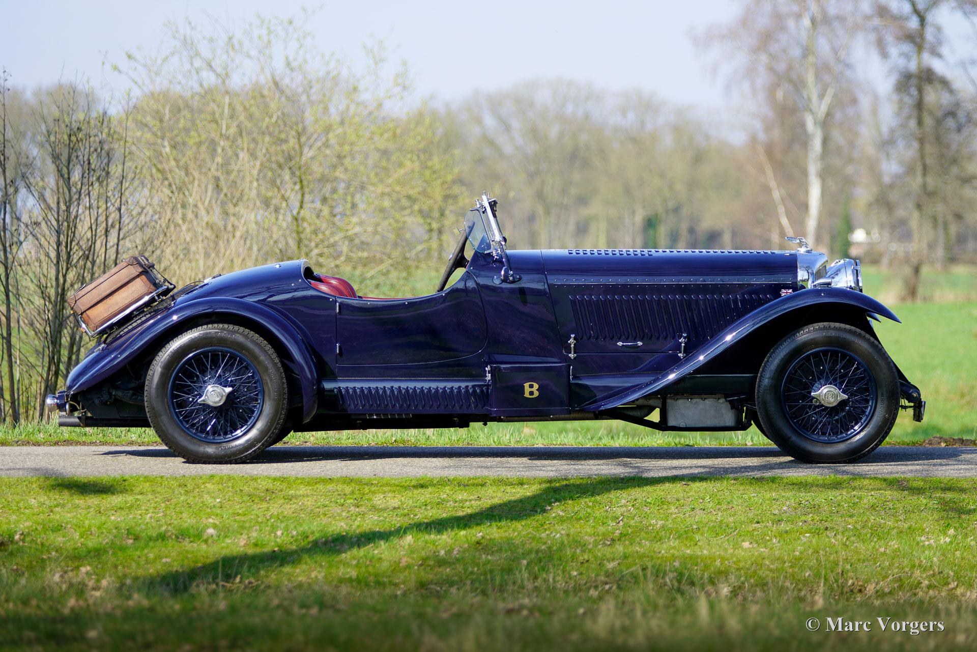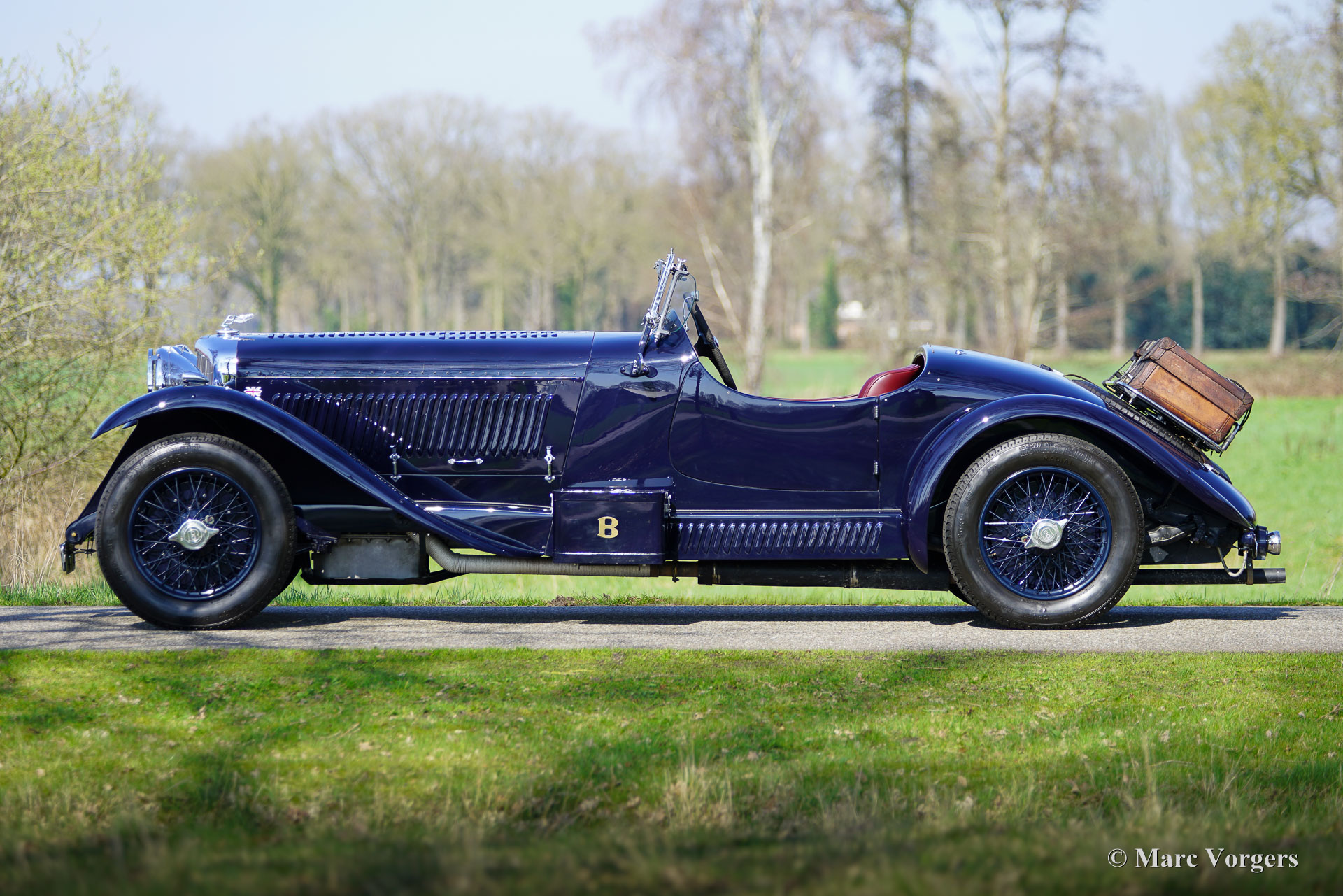 The Bentley 3 Litre was W.O. Bentley’s first design. The car was presented in 1919 but the first cars were sold in 1921. The four cylinder cars of rugged construction where in a class of their own for they combined the size and comfort of the big tourers and saloons with the road holding, and speed of the smaller sports- and racing cars. The Bentley was a true owner-driver car for the sporting motorist and connoisseur. The Bentley car could be had in three different types which were designated with three different radiator badges*. Red badge: short chassis speed model, Blue badge: the early short and then long chassis type for bespoke bodywork, Green badge: very rare and used for about eighteen 100 mph. These Green badge car won at Le Mans in 1924 and 1927 (Old Number Seven.) The 3-Litre was built from 1919 until 1929.