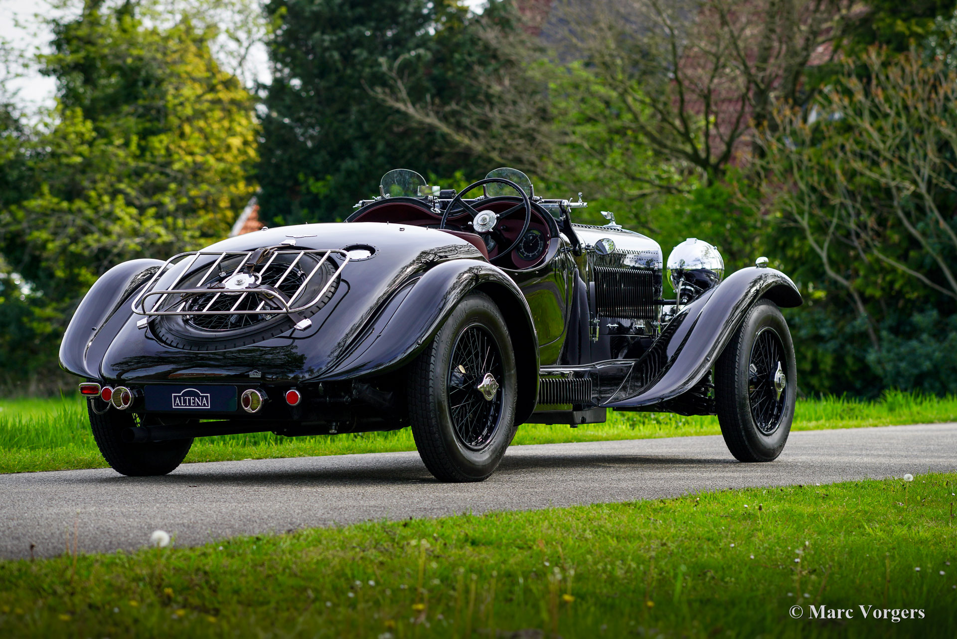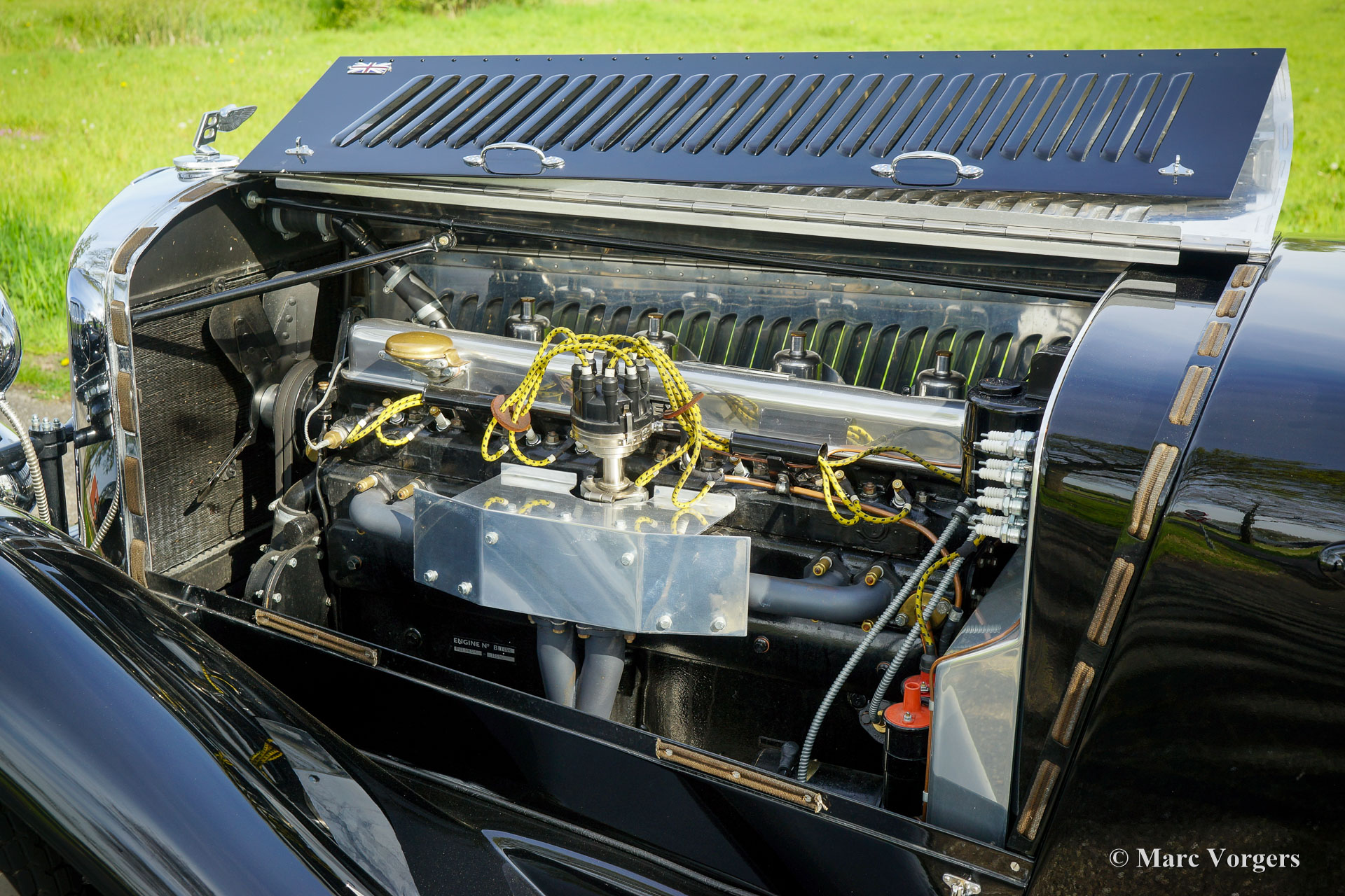 The Bentley 3 Litre was W.O. Bentley’s first design. The car was presented in 1919 but the first cars were sold in 1921. The four cylinder cars of rugged construction where in a class of their own for they combined the size and comfort of the big tourers and saloons with the road holding, and speed of the smaller sports- and racing cars. The Bentley was a true owner-driver car for the sporting motorist and connoisseur. The Bentley car could be had in three different types which were designated with three different radiator badges*. Red badge: short chassis speed model, Blue badge: the early short and then long chassis type for bespoke bodywork, Green badge: very rare and used for about eighteen 100 mph. These Green badge car won at Le Mans in 1924 and 1927 (Old Number Seven.) The 3-Litre was built from 1919 until 1929.