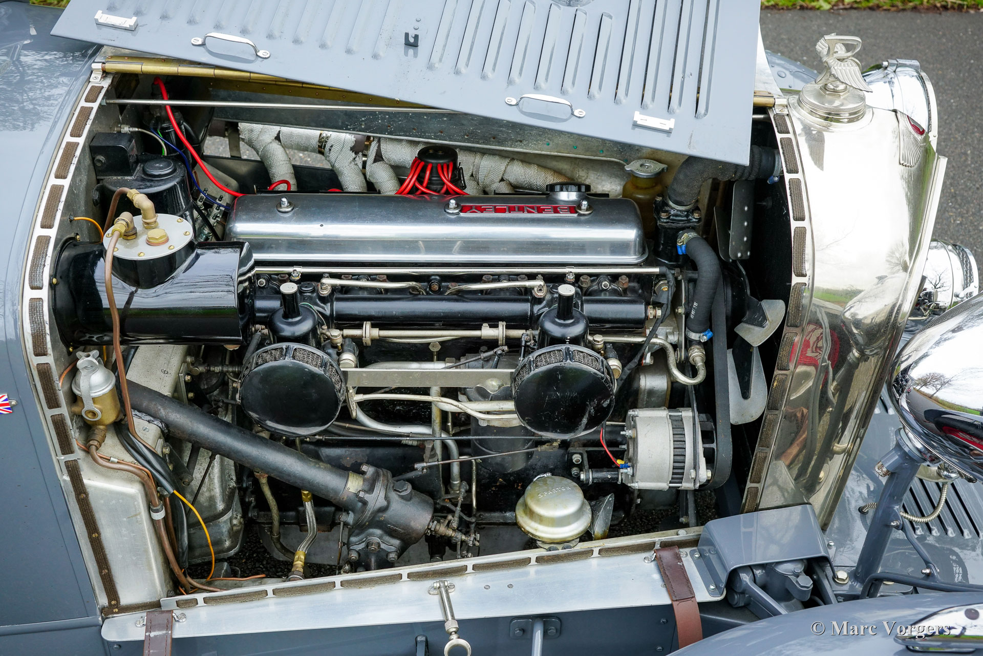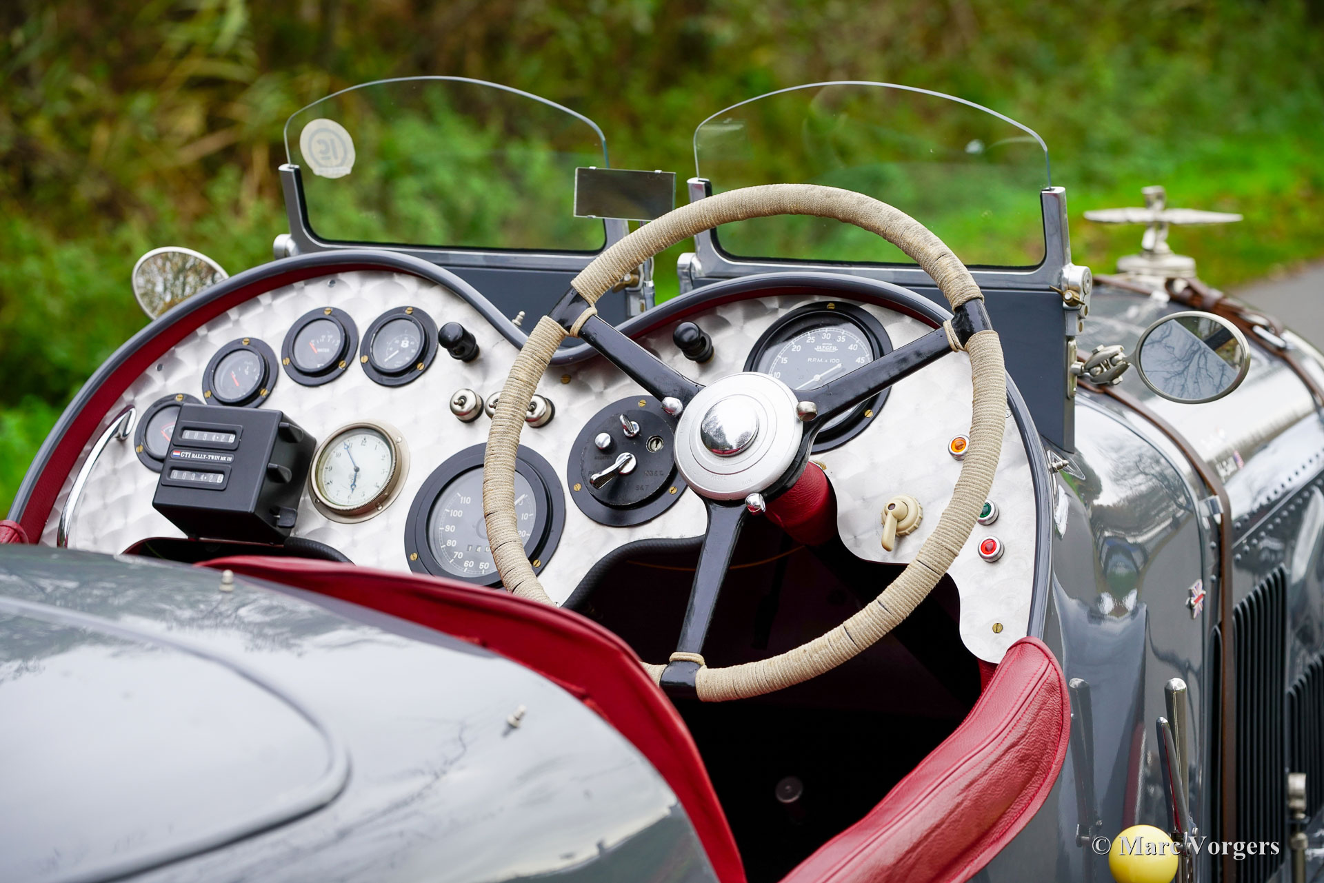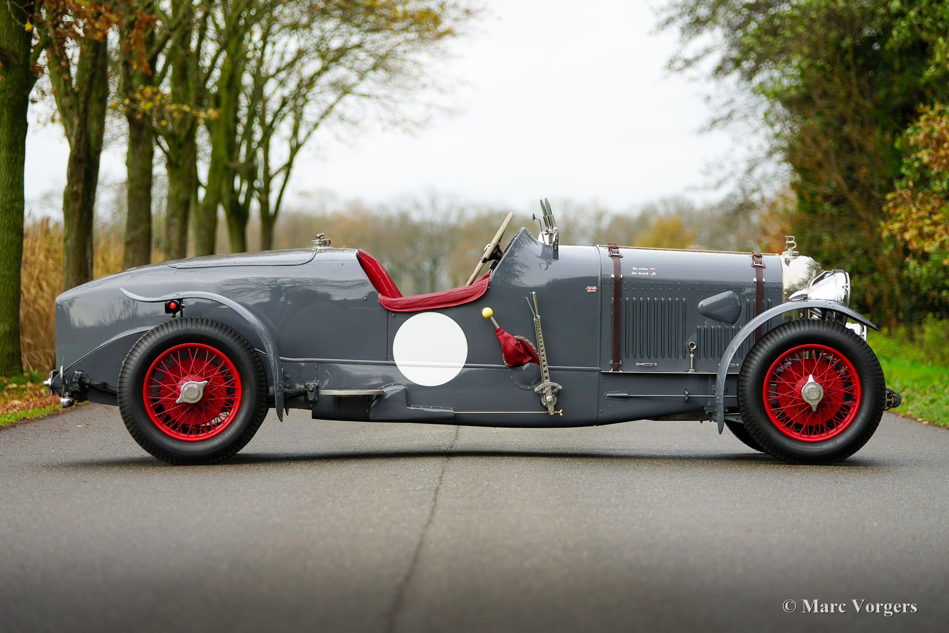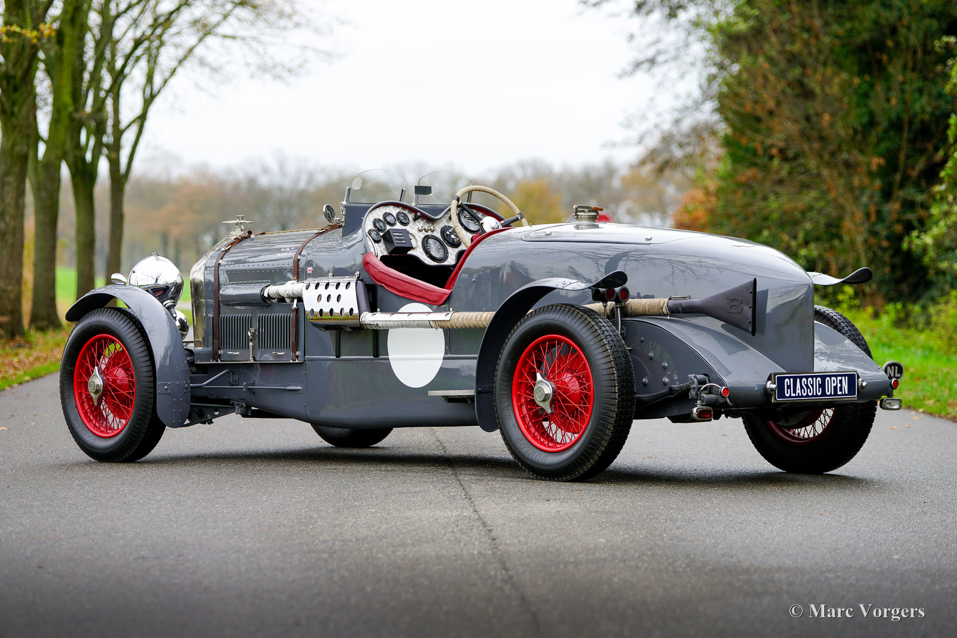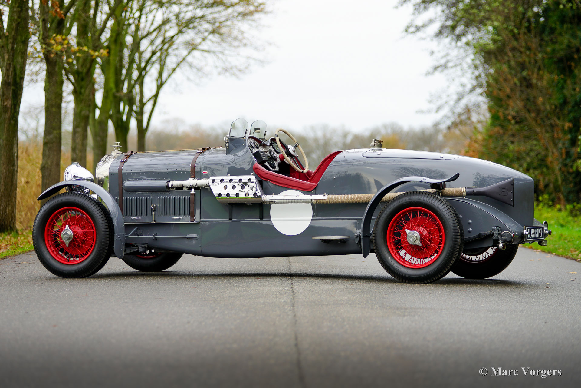 Bentley „Old Number One“ Special, Chassis 1947. Fahrgestellnummer: B172AK. Karosseriefarbe: Grau mit roten Speichenrädern. Innenausstattung: Rotes Leder und passender roter Wollteppich. Dieser wunderschöne Bentley „Old Number One“-Replika wurde auf einem originalen Bentley Mk VI-Chassis von 1947 aufgebaut. Gebaut wurde das Fahrzeug von Vintage Car Serry (Serry Exclusive) in Hilversum, Niederlande. Diese renommierte Firma fertigt seit zehn Jahren maßgeschneiderte Nachbildungen des legendären Bentley Speed Six „Old Number One“, der 1929/30 in Le Mans siegte. Dieses beeindruckende Automobil wurde mit authentischer und vollständig überholter Bentley Mk VI-Technik (4,25-Liter-Bentley-B60-Reihensechszylinder und Bentley-Vierganggetriebe), einer meisterhaft handgefertigten Aluminiumkarosserie und einer perfekt verarbeiteten Leder- und Wollpolsterung für den Innenraum ausgestattet. Dieses prachtvolle Exemplar wurde Ende 2016 fertiggestellt und 2017 zugelassen. Seitdem hatte der Wagen nur einen sorgsamen Besitzer, der ihn 4981 Meilen lang gefahren ist und genossen hat. Dieser edle Bentley Special wurde nach höchsten Standards gebaut und verarbeitet und befindet sich in einem exzellenten Zustand. Da dieses Special auf dem herausragenden Bentley Mk VI Chassis und der dazugehörigen Mechanik basiert (die in den 1940er Jahren branchenführend waren), ist das Fahrverhalten im Vergleich zum Original von 1929 angenehm und einfach. Das offene Fahrgefühl ist grandios, und der kraftvolle Klang des Auspuffs mit Brooklands-Schalldämpfer und „Fishtail“ ist einfach mitreißend! Der Blick auf das Aluminium-Armaturenbrett mit seinen zahlreichen Instrumenten ist beeindruckend und vermittelt das Gefühl, ein Kampfpilot zu sein. Der Innenraum bietet ausreichend Platz für einen großen Fahrer und Beifahrer. Im Heck befindet sich ein geräumiger Kofferraum, in dem das Reserverad untergebracht ist und Sie Ihr Gepäck verstauen können. Der einzigartige Bentley Speed Six „Old Number One“ ist einer der legendärsten Wagen der „Bentley Boys“-Ära. Diese atemberaubende, handgefertigte Aluminium Replika mit originalem Bentley-Chassis und -Mechanik Komponenten bringt den Nervenkitzel und den legendären Heldenmut der Le-Mans-„Bentley Boys“ in die Welt eines abenteuerlustigen neuen Besitzers!