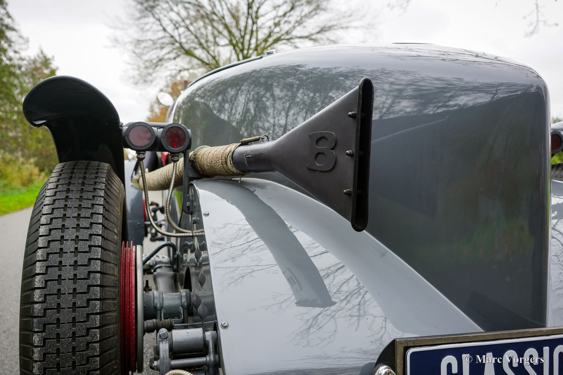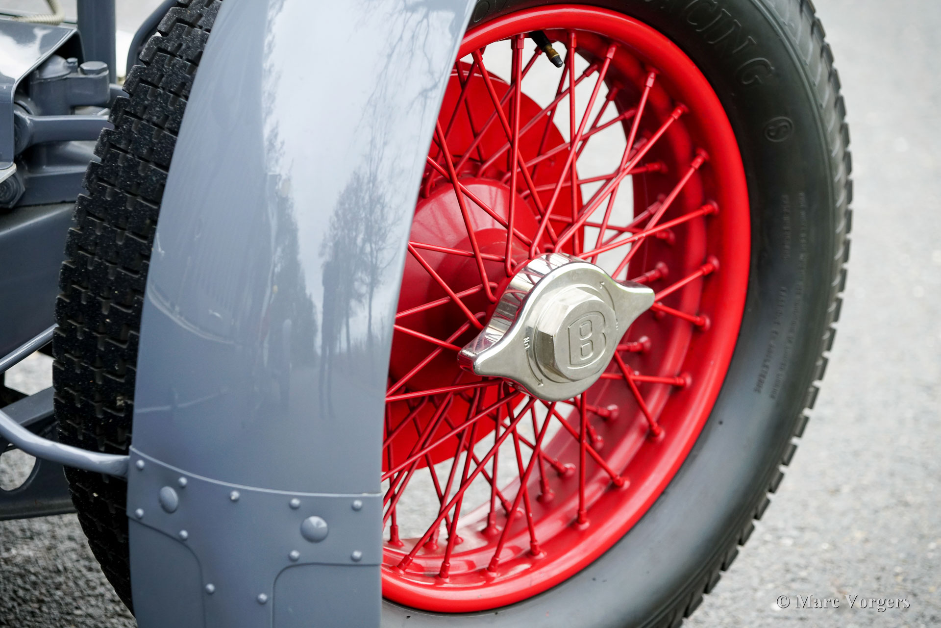 The Bentley 3 Litre was W.O. Bentley’s first design. The car was presented in 1919 but the first cars were sold in 1921. The four cylinder cars of rugged construction where in a class of their own for they combined the size and comfort of the big tourers and saloons with the road holding, and speed of the smaller sports- and racing cars. The Bentley was a true owner-driver car for the sporting motorist and connoisseur. The Bentley car could be had in three different types which were designated with three different radiator badges*. Red badge: short chassis speed model, Blue badge: the early short and then long chassis type for bespoke bodywork, Green badge: very rare and used for about eighteen 100 mph. These Green badge car won at Le Mans in 1924 and 1927 (Old Number Seven.) The 3-Litre was built from 1919 until 1929.