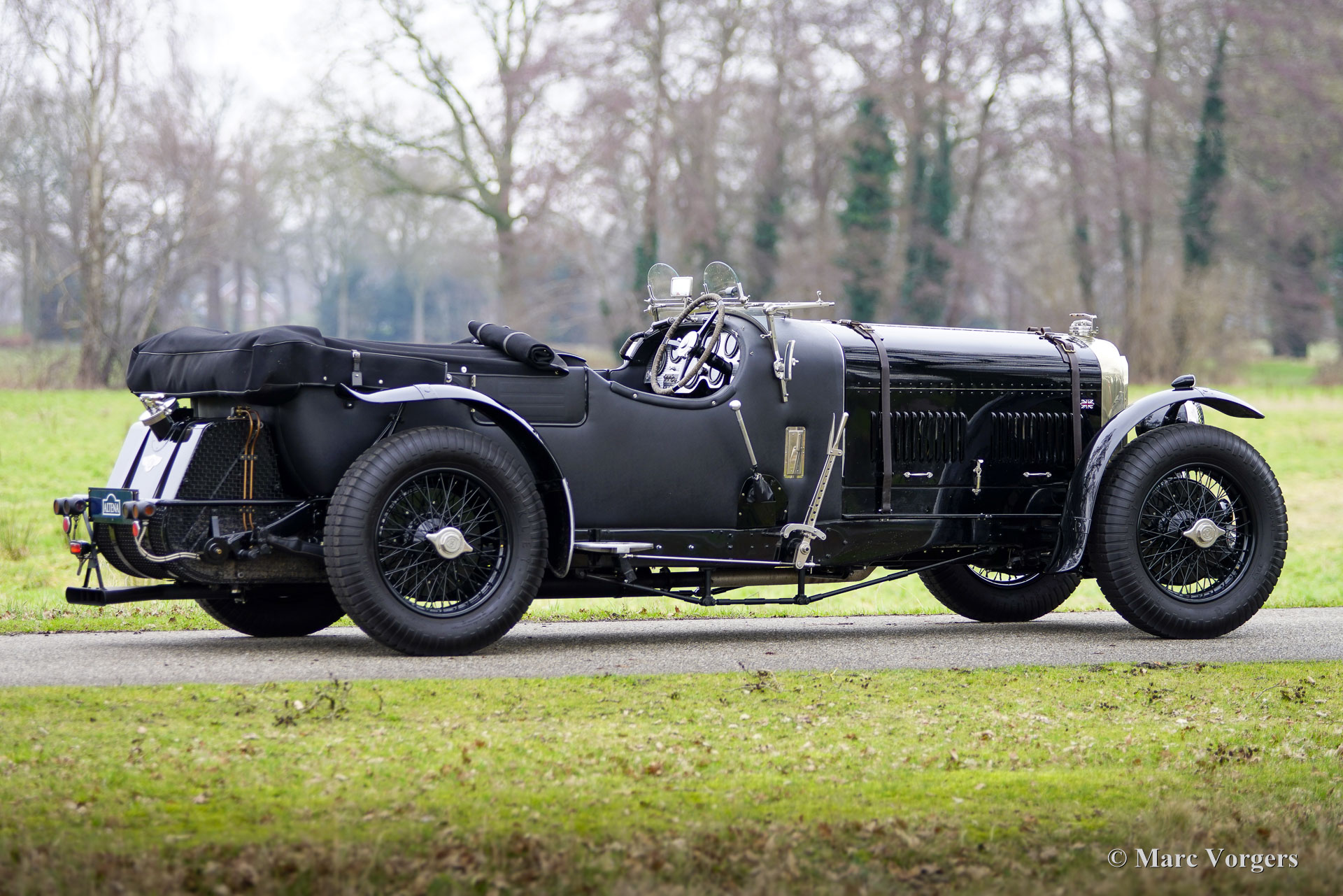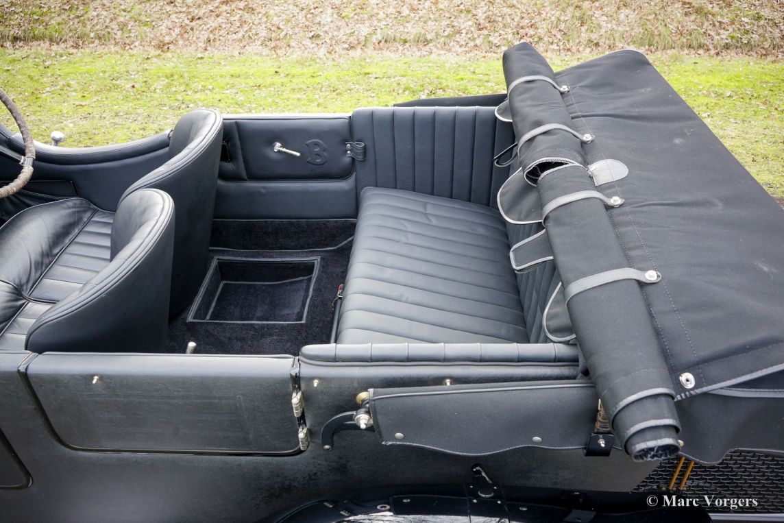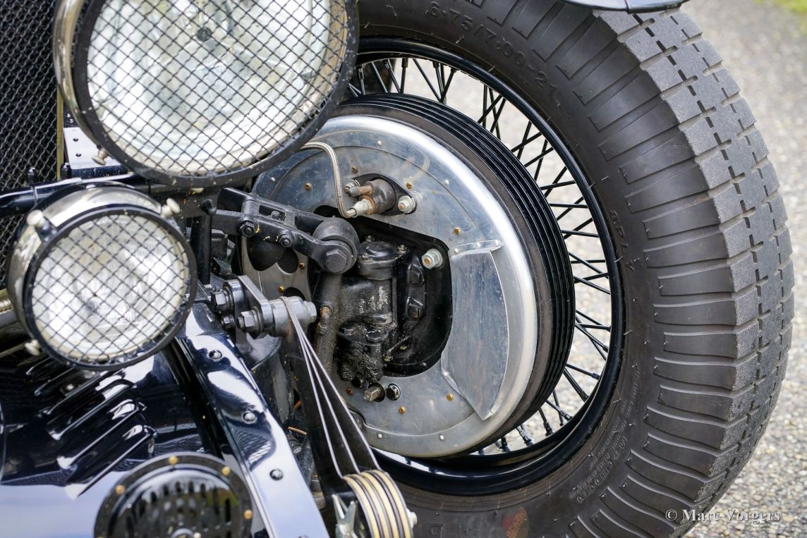 The Bentley 3 Litre was W.O. Bentley’s first design. The car was presented in 1919 but the first cars were sold in 1921. The four cylinder cars of rugged construction where in a class of their own for they combined the size and comfort of the big tourers and saloons with the road holding, and speed of the smaller sports- and racing cars. The Bentley was a true owner-driver car for the sporting motorist and connoisseur. The Bentley car could be had in three different types which were designated with three different radiator badges*. Red badge: short chassis speed model, Blue badge: the early short and then long chassis type for bespoke bodywork, Green badge: very rare and used for about eighteen 100 mph. These Green badge car won at Le Mans in 1924 and 1927 (Old Number Seven.) The 3-Litre was built from 1919 until 1929.