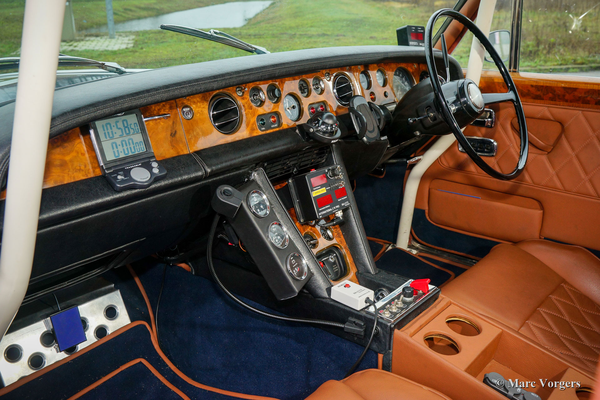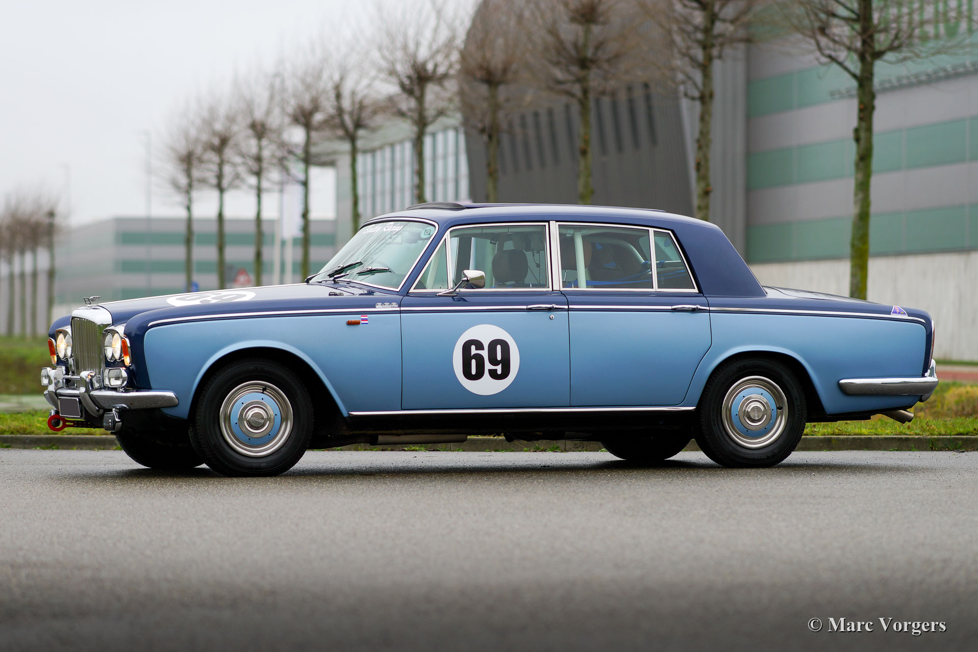 Bentley T1, Jahr 1969. Farbe zweifarbig blau kombiniert mit einer cognacbraunen Lederausstattung und dunkelblauem Teppich. Dieser sehr beeindruckende Bentley T1 wurde für historische (Rallye-) Langstreckenveranstaltungen vorbereitet. Vor allem der Innenraum wurde mit einem Vollsicherheits-Überrollkäfig, Spezialsitzen, Vierpunkt-Sicherheitsgurten, einem digitalen Trip-zähler und anderem Rallye-Zubehör aufgewertet. An der Außenseite befinden sich vier zusätzliche Lucas LR-8-Fernscheinwerfer, zwei breitstrahlende Lucas FT-8-Nebelscheinwerfer. Der leistungsstarke 6,2-Liter-V8-Motor und das Automatikgetriebe wurden überholt und das Fahrwerk wurde für die anspruchsvolle Aufgabe aktualisiert. Alle Überholungs- und Rallyevorbereitungsarbeiten wurden in den Jahren 2017 und 2018 durchgeführt. Dieser feine Bentley T1 ist ausgestattet mit einem Webasto-Falt- / Schiebedach, das das maximale Open-Top-Erlebnis bietet, das Sie in einem Limousine haben können. Der Bentley fährt und handhabt, wie Sie es von einem sehr gepflegten Bentley erwarten können. Dieser großartige Bentley T1 ist innen und außen in einem sehr guten Zustand, das Auto ist schlüsselfertig für jedes Abenteuer in den Händen eines neuen Besitzers.