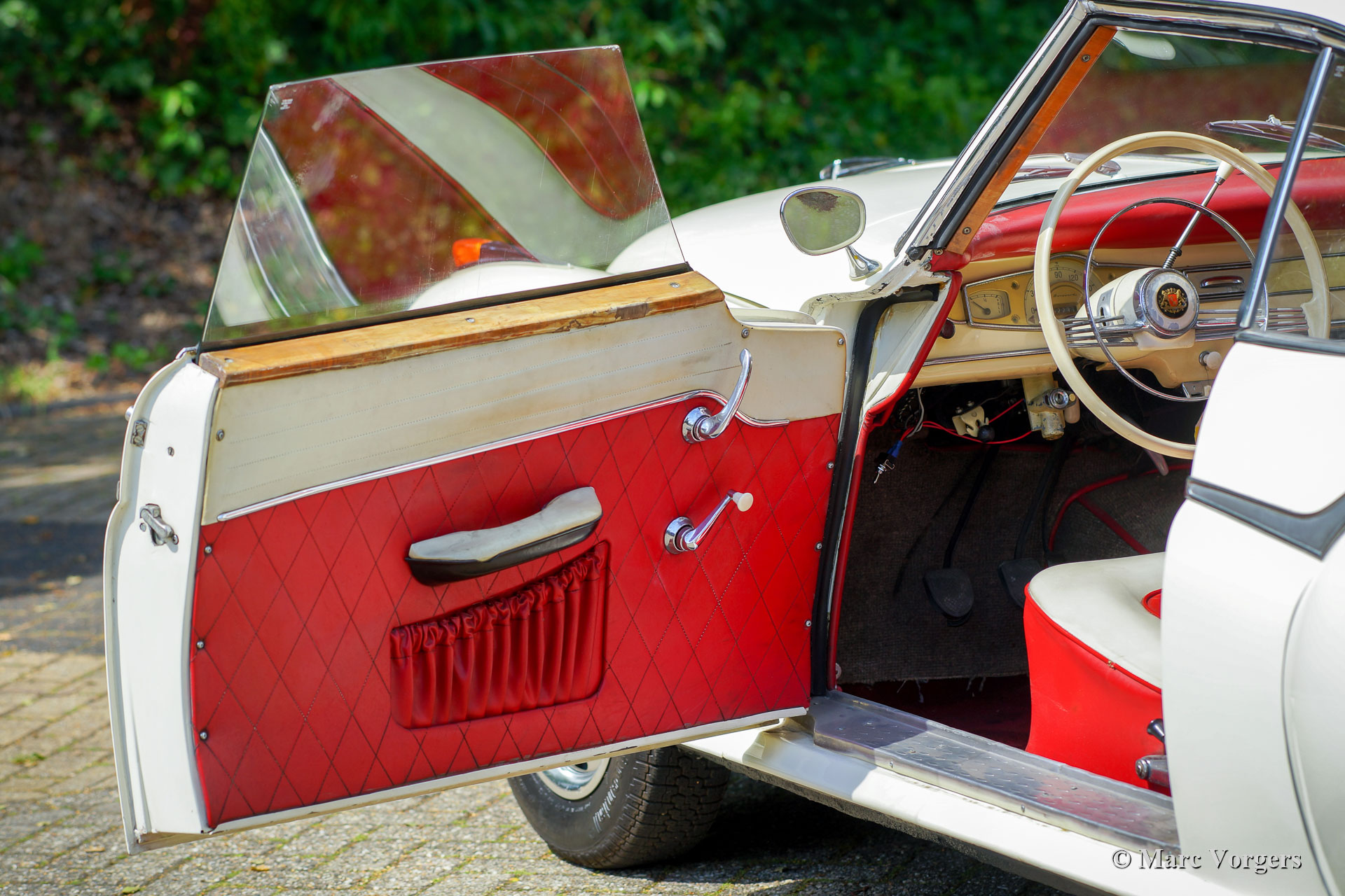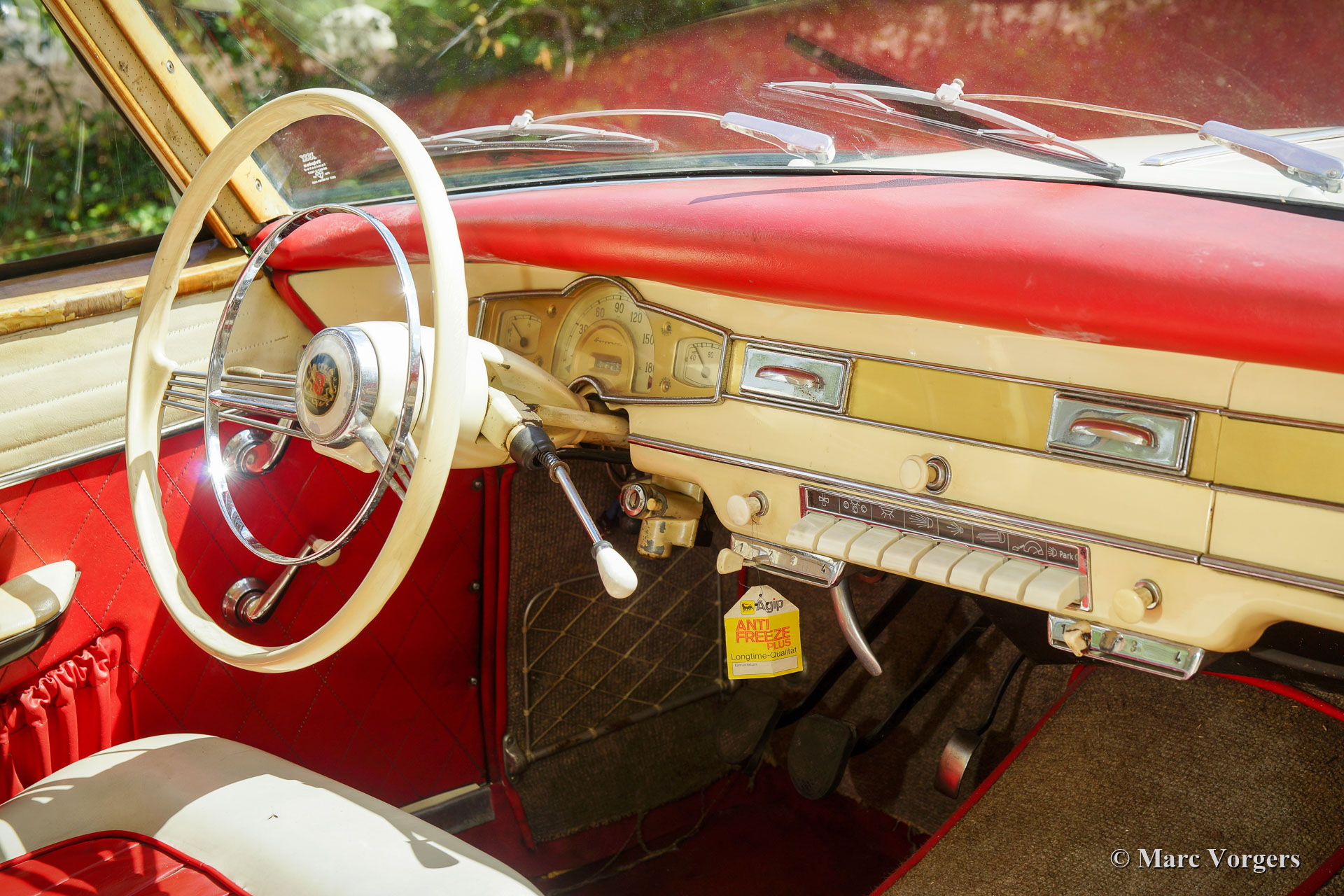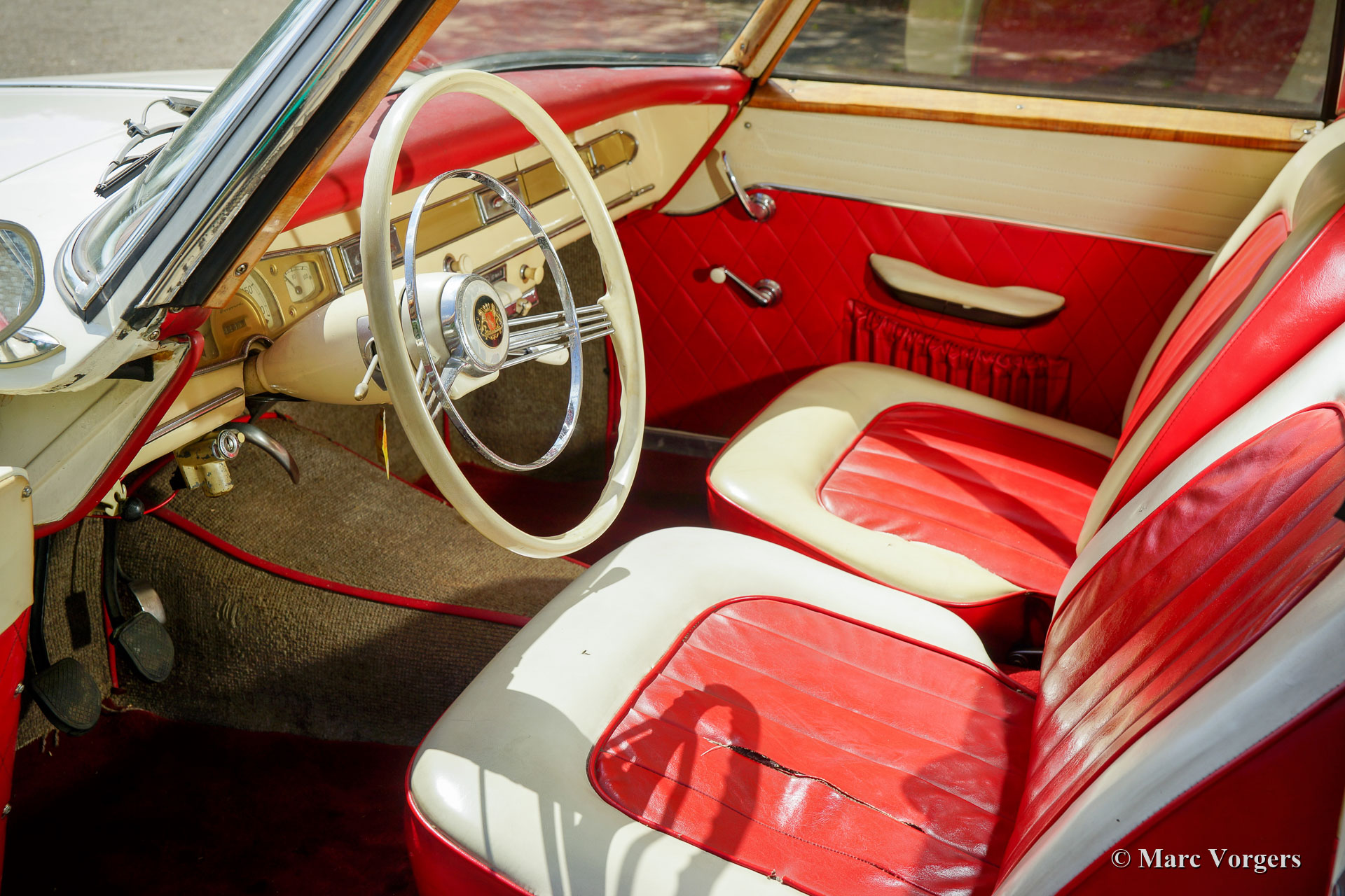 Borgward Isabella Coupé, Jahr 1958. Farbe cremeweiß kombiniert mit cremeweiß / rotem Interieur und grauem Teppich. Dieses wundervolle Borgward Isabella Coupé wurde neu in Deutschland verkauft, wo das Auto noch immer zugelassen ist. Dieses wunderschöne Coupé ist in einem super originalen Zustand! Das Auto wurde in der Vergangenheit nur sehr gut neu lackiert, alles andere ist komplett original. Das Auto zeigt alle Originaldetails und natürlich an einigen Stellen Gebrauchs- und Altersspuren. Der Innenraumteppich und der Kofferraumteppich haben schon bessere Tage gesehen und der Fahrersitz braucht einige neue Stiche. Ein neuer Besitzer kann dieses Auto mit minimalen Verbesserungen zu seinem eigenen machen. Die Karosserie ist komplett solide und die Mechanik ist in einem guten Zustand und funktioniert so, wie sie sollte. Das Auto ist eine Freude zu fahren! Diese super originale Borgward Isabella wird mit deutschen Papieren geliefert, sodass sie in jedes Land weltweit importiert werden kann.
