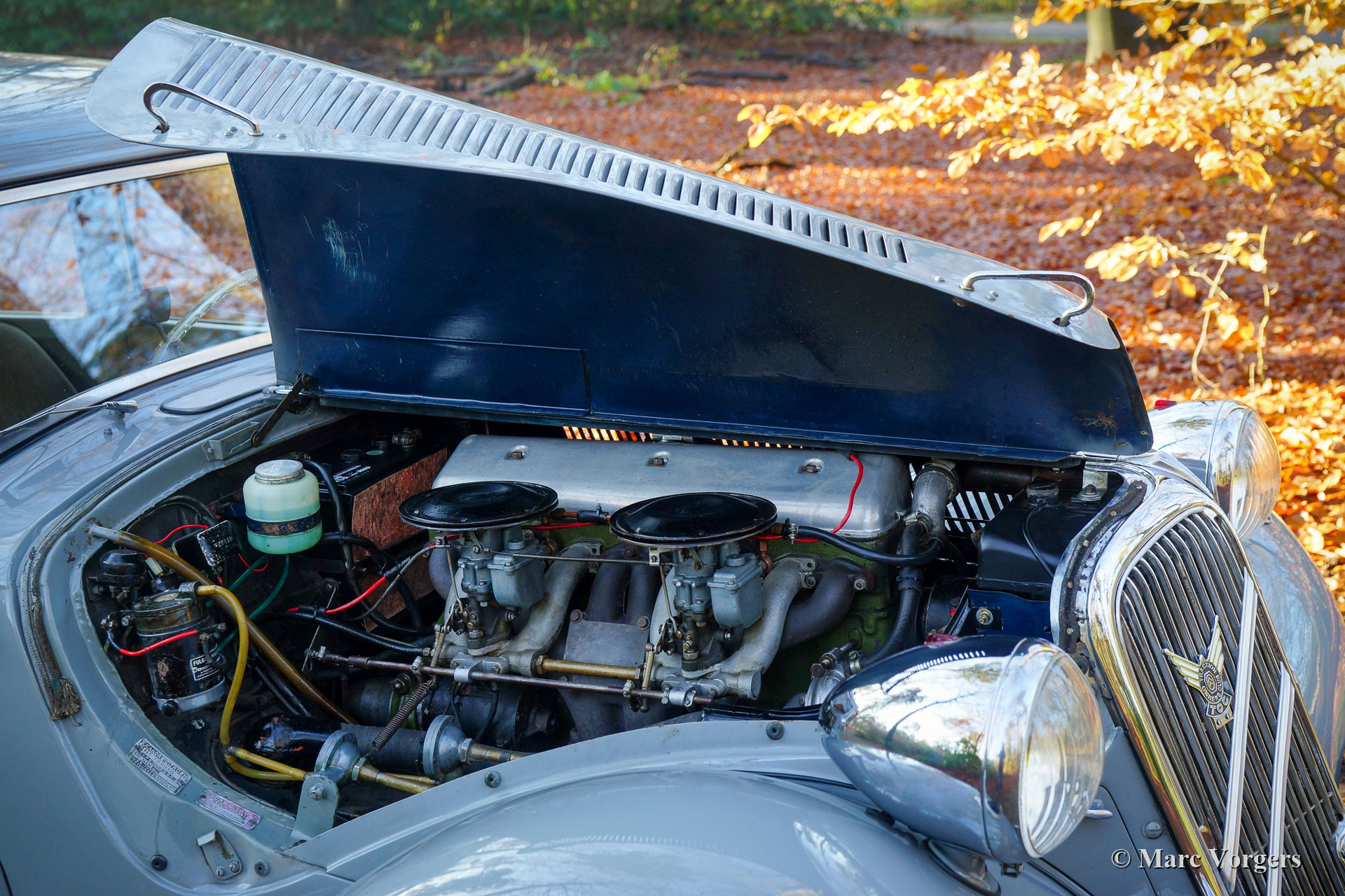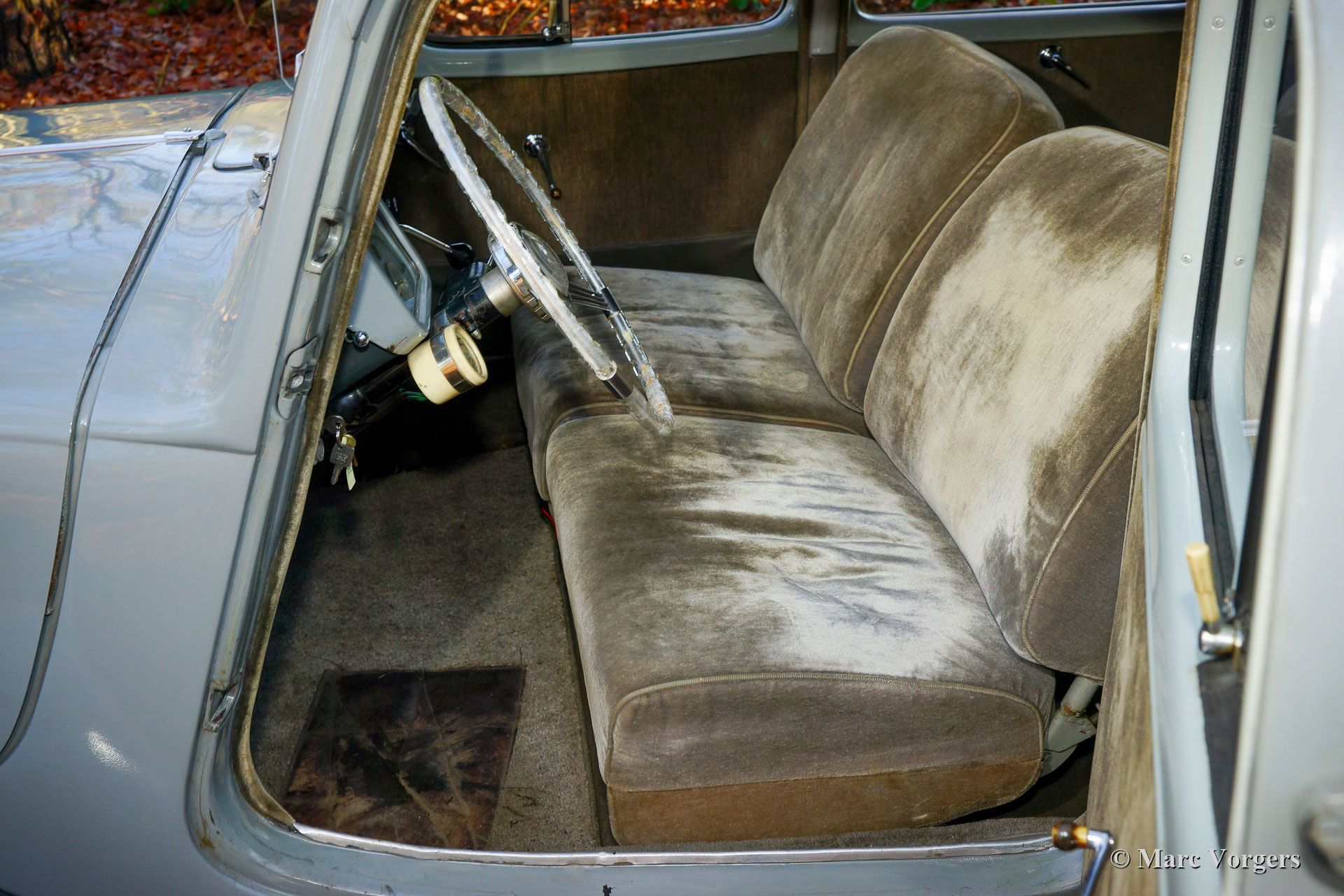 Citroën Traction Avant 15-SIX Berline, Jahr 1954. Farbe grau kombiniert mit einem dunkelgrauen Velours-Interieur. Dieser fantastische und relativ seltene Citroën ‚Traction Avant‘ 15-SIX Berline wurde in Frankreich neu verkauft. Der erste Besitzer war Herr. Mandel, der Bürgermeister von Evreux. Im Juni 1969 wurde das Auto in den Niederlanden zugelassen. Seit dem Jahr 2001 wird das Auto vom letzten und jetzigen Besitzer geschätzt. Dieser wundervolle Citroën 15 SIX befindet sich in einem guten und sehr originalen Zustand. Das Auto fährt und lenkt herrlich. Das Auto verfügt über einige Sonderzubehörteile wie ein Quillery-Lenkrad und Lichtknopf. Diese Luxusartikel wurden teilweise aus transparentem Kunststoff gefertigt. Ebenfalls anwesend sind Luxus Karosserieverkleidungen aus Aluminium von Robri. Darüber hinaus ist dieser feine Citroën ausgestattet mit speziellen Hupen an der vorderen Stoßstange, Cricks unter dem Auto, einer blauen Sonnenblende, einem Kühler-Abdeckung und zusätzlichen Anzeigen für Wassertemperatur und Öldruck. Dieser Citroën ‚Traction Avant‘ 15-SIX Berline ist eine echte Zeitkapsel, ein fantastisches Exemplar für den wahren Enthusiasten!