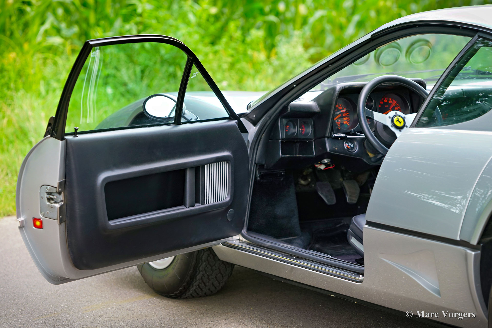 Ferrari 512 BB, Jahr 1978. Erstzulassung 2. Januar 1978. Fahrgestellnummer F102BB*22253*. Farbe Silbermetallic kombiniert mit schwarzer Lederausstattung und schwarzem Teppich. 1976 war der Ferrari 512 BB einer der ersten Ferrari-Straßenwagen mit Mittelmotor. Dies in Kombination mit dem großartigen „Berlinetta Boxer“-Zwölfzylinder-Boxermotor, der eine Weiterentwicklung des Formel-1-Rennwagenmotors des Ferrari 512 von 1964 war. Der präsentierte beeindruckende Ferrari 512 BB wurde neu in Deutschland verkauft. Das Auto wird komplett mit einer vollständigen Historie und einem „Fahrzeugbrief“ geliefert, in dem alle Vorbesitzer aufgeführt sind. Der Ferrari 512 BB wurde 1978 neu an Herrn Peter Klein in Euskirchen ausgeliefert. Das Auto wurde 1984 an den zweiten Besitzer verkauft und von da an von Modena Motorsport gewartet. 1992 fand der Wagen in Köln einen neuen Besitzer, der ihn von Lackierer Meissner in „Rosso Chiaro“ lackieren ließ. Der Wagen blieb in Köln bei zwei weiteren Enthusiasten, bevor er an den letzten deutschen Besitzer weiterverkauft wurde. Im Mai 2009 wurden der Motor und die Mechanik überprüft und die Zahnriemen von einem deutschen Ferrari-Spezialisten erneuert. Eine neue Lederausstattung wurde von der renommierten Firma Luppi in Modena gefertigt. In den Jahren 2011-2013 wurde die Karosserie vom blanken Metall restauriert und wieder in der Originalfarbe Silbermetallic lackiert. Ein neues Hochdruckkühlsystem wurde eingebaut, neue Kühlgebläse, neue Fensterheber, neue Rücklichter und Blinker wurden eingebaut und die elektrische Verkabelung wurde aufgearbeitet/erneuert. Die Arbeiten wurden von einem deutschen Ferrari-Spezialisten durchgeführt und Rechnungen von Modena Motorsport liegen bei. Die Restaurierung ist in zwei wunderbaren Fotobüchern und auf einer CD dokumentiert. 2015 wurde dieser wunderschöne Ferrari 512 BB in die Niederlande importiert. 2016 wurden neue Stoßdämpfer eingebaut (6 Stück), Vorder- und Hinterradaufhängung überholt und die Antriebswellen überholt. (Service-)Rechnungen von Münsterhuis und Zagari liegen vor. Das Auto wurde 2016 an den aktuellen Besitzer verkauft. Seitdem wurde der Ferrari von S2 Classic Cars gewartet und gepflegt. 2019 nahm der 512 BB am Concours d’Elegance Paleis Soestdijk in den Niederlanden in der Klasse „Supersportwagen der 1980er Jahre“ teil. Das Auto fährt und klingt beeindruckend, und der Kilometerzähler zeigt derzeit 50.200 Kilometer an. Dieser Ferrari 512 BB wird mit dem Original-Toolkit, der Historiendatei und Fotobüchern geliefert. Dies ist ein seltenes Ferrari-Sammlerauto, von dem nur 929 Exemplare gebaut wurden. Dieser schöne Ferrari 512 BB steht bei S2 Classic Cars zum Verkauf, wo in den Ausstellungsräumen eine handverlesene Auswahl hochwertiger Ferrari-Sportwagen zum Verkauf bewundert werden kann.