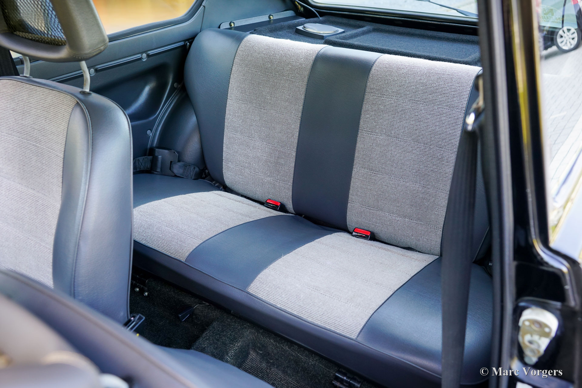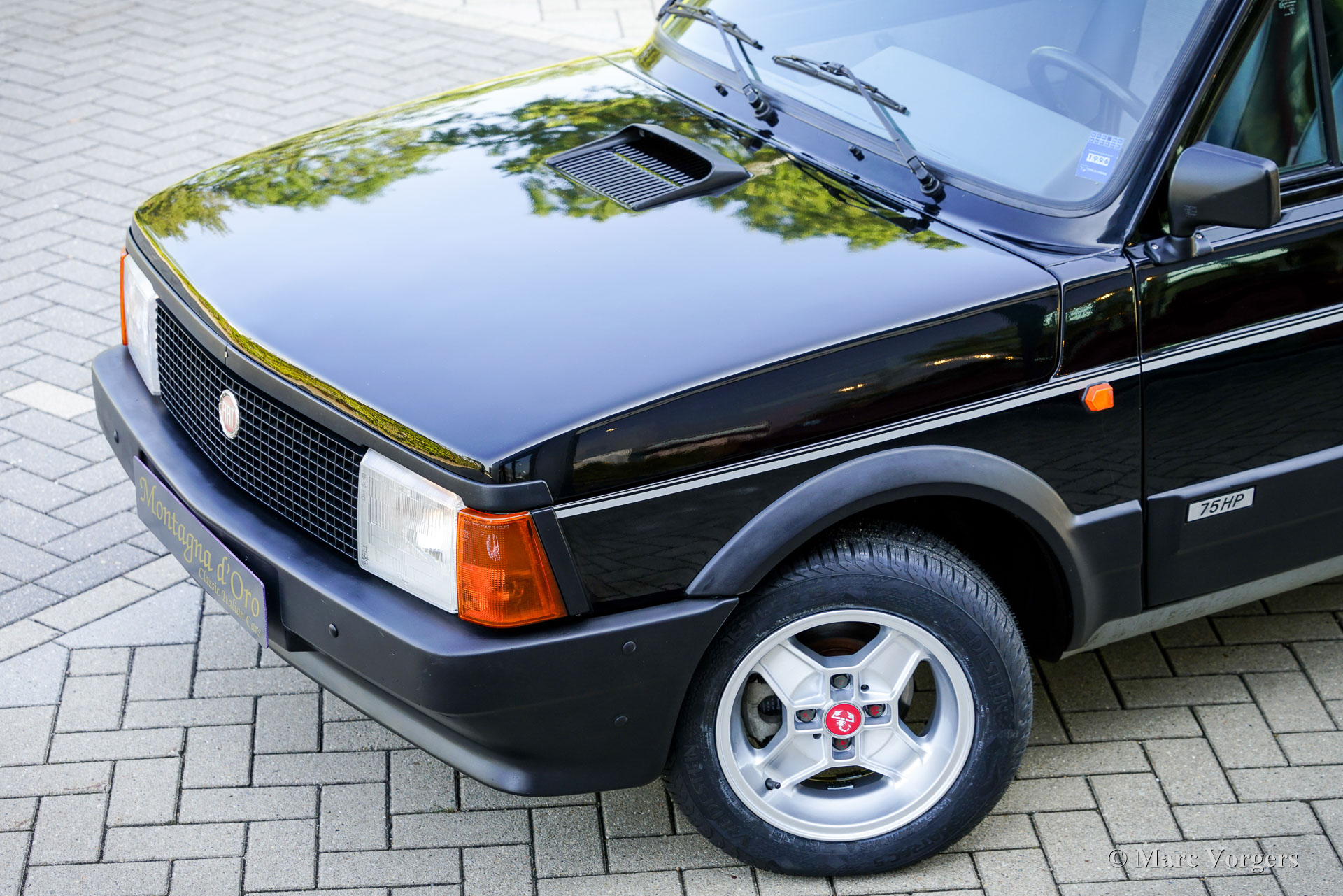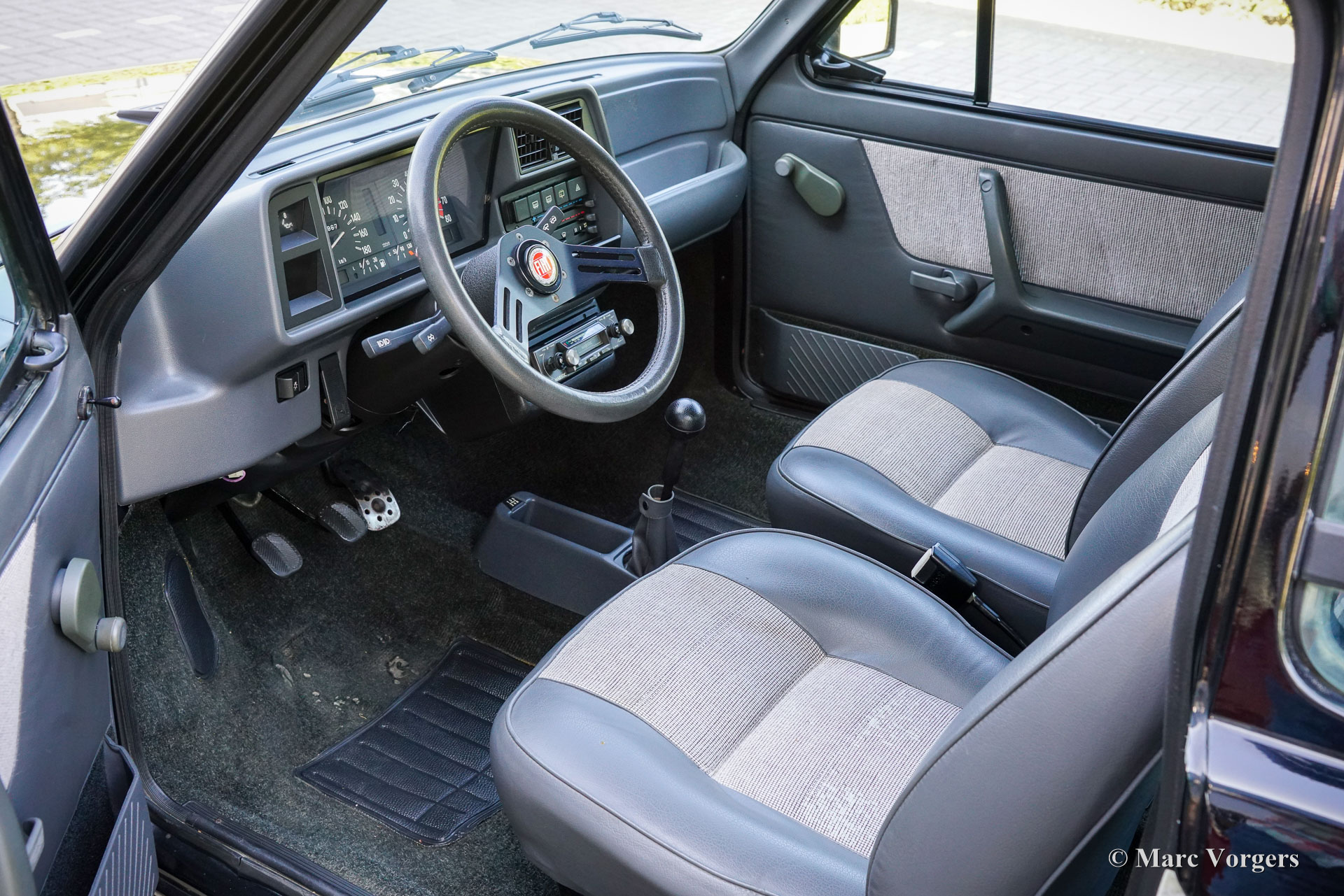 Fiat 127 Sport 5 Speed 75 HP, Jahr 1983. Farbe Schwarz (Nero) kombiniert mit einem grauen Interieur. Zweifarbige graue Vinylsitze mit Stoffeinsätze, dunkelgrauer Teppich. Dieser prächtige Fiat 127 Sport wurde neu in die Schweiz verkauft, der zweite Besitzer war ein italienischer Sammler in Cervesina (PV). Der Fiat hat noch sein italienisches Kennzeichen CT738176 und der Tachostand beträgt derzeit 52,967 Kilometer. Dieser fantastische Fiat 127 Sport stammt aus der 3. Fiat 127-Serie und verfügt über den leistungsstarken 75 PS starken 1300-cm³-Motor mit Doppelchoke-Weber-Vergaser. Der 127 Sport 75 PS ist das Topmodell der 127er-Reihe. Das Auto ist in einem atemberaubenden Originalzustand und zeigt alle Originaldetails! Eine wahre Zeitkapsel! Das Fahrerlebnis ist wunderbar und das Auto fühlt sich immer noch so an, als ob es gerade erst das Fiat-Werk verlassen hätte. Dieser Fiat 127 Sport 75 PS ist ein entzückendes Auto und in diesem fantastischen Originalzustand ein echtes Sammlerstück!