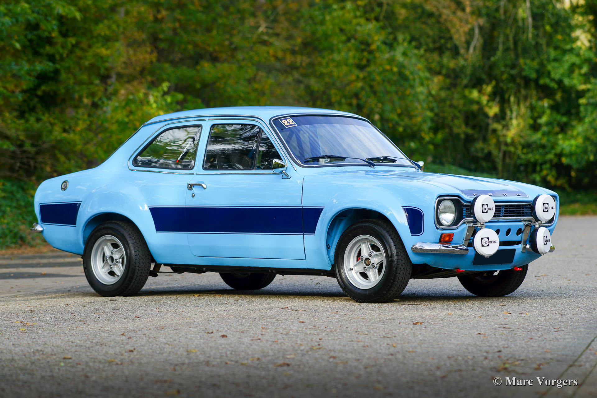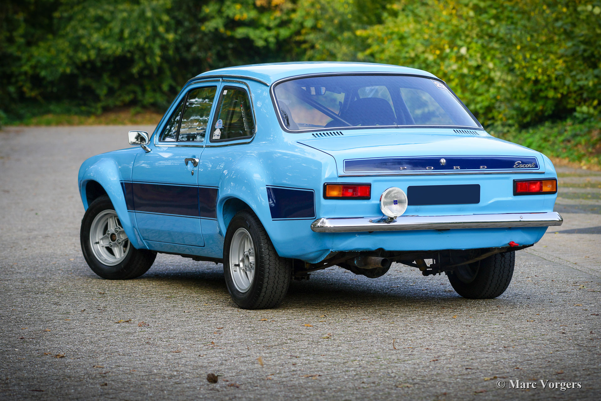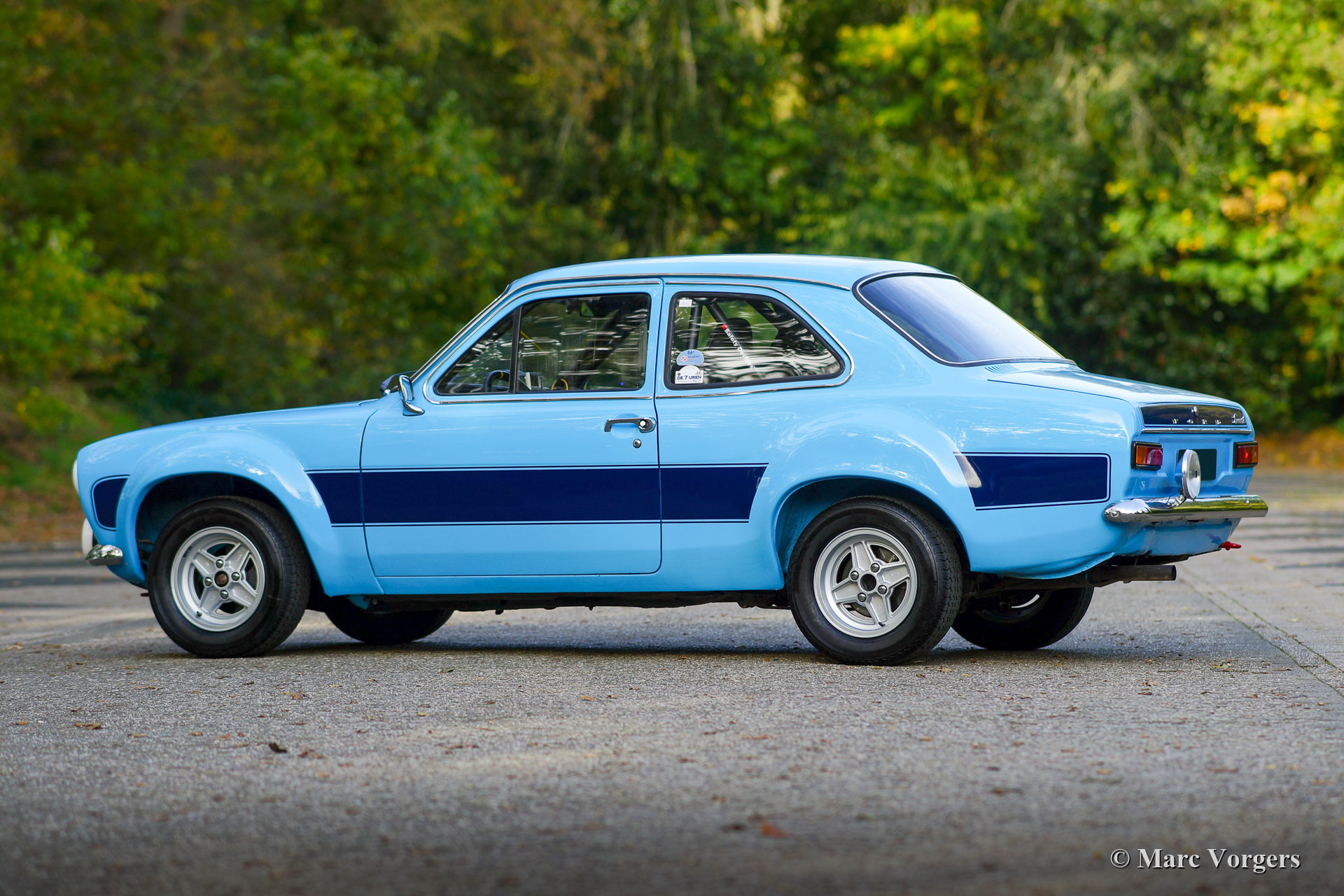 Ford Escort 2000 Rally Car, Jahr 1968. Farbe blau mit schwarzen Sportstreifen. Schwarzes Rallye-Interieur mit anthrazitfarbenen Sparco Rallye-Schalensitzen mit 4-Punkt-Sicherheitsgurten. Dieser fantastische Ford Escort wurde am 22. Mai 1968 in den Niederlanden neu verkauft und zugelassen. In den letzten Jahren wurde das Auto restauriert, auf RS2000-„Widebody“-Spezifikationen modifiziert und umfassend für Rallyes vorbereitet. Die letzten Vorbereitungen wurden von Classic Job durchgeführt. Dieser prächtige Ford Escort verfügt über einen äußerst begehrenswerten 2-Liter-Vierzylinder-OHC-Motor vom Typ RS2000 „Pinto“, der mit zwei doppelten Weber-Vergasern, Sportluftfiltern, einem Hochleistungskühler und einer Freistrom-Sportauspuffanlage ausgestattet ist. Der Motor ist mit einem 5-Gang-Getriebe gekoppelt. Das Auto wurde bis ins Detail auf die Rallye vorbereitet, Karosserie und Aufhängung wurden versteift, ein Überrollkäfig eingebaut, eine ‚strut-bar‘ hinzugefügt, ein Sperrdifferenzial eingebaut und vieles mehr. Ein Aktenordner mit Dokumenten und Fotos, die den Bau und die Vorbereitung im Detail beschreiben, ist vorhanden. Der Innenraum verfügt über alle Instrumente und Sicherheitseinrichtungen, die Fahrer und Navigator brauchen und wünschen. Dies ist ein voll ausgestattetes und sehr gut gebautes historisches Rallyeauto. Dieses Ford Escort Rallyeauto im RS2000-Look fährt und handhabt sich beeindruckend. Dieses fantastische Rallye-Auto ist bereit für jedes historische Rallye-Event in den Händen des neuen Besitzers!