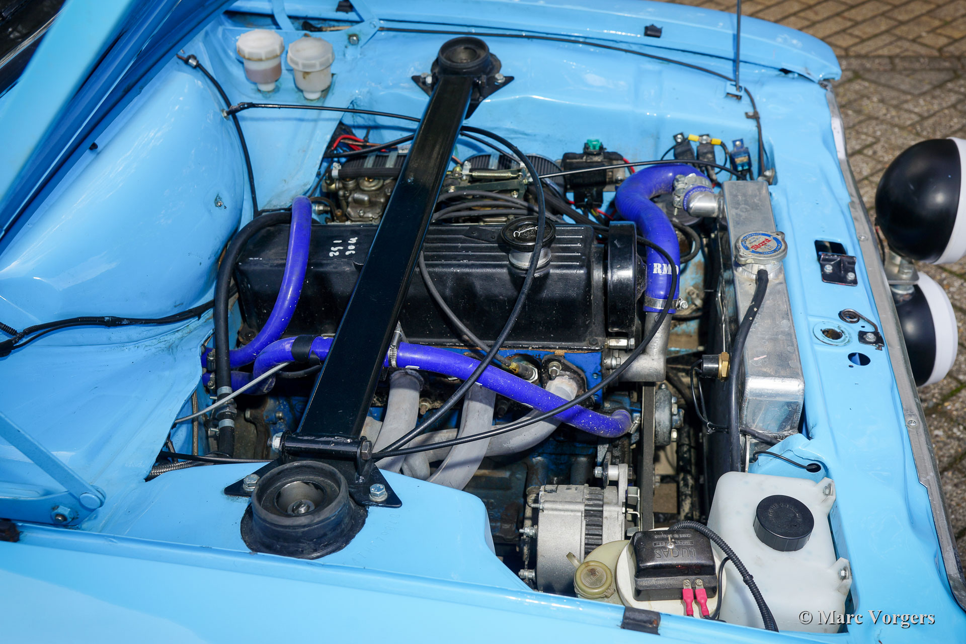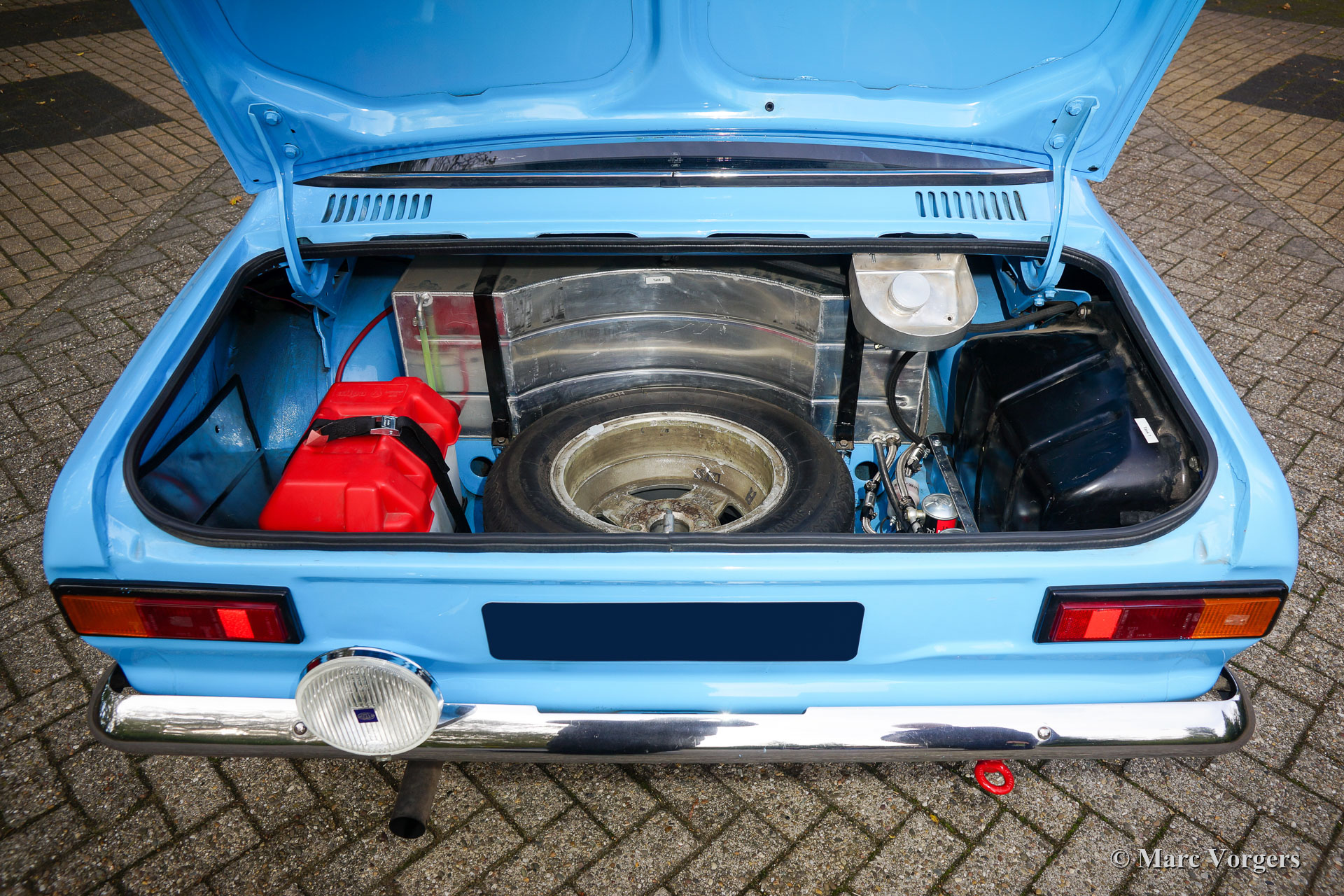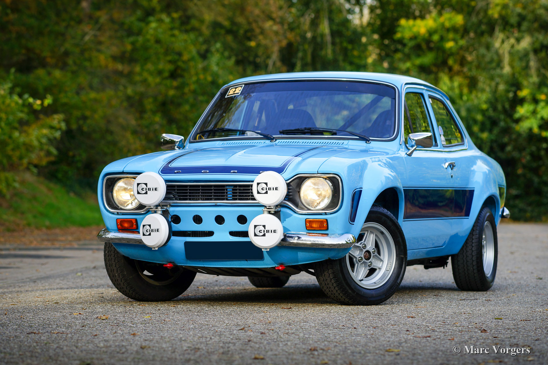 Ford Escort 2000 Rally Car, Jahr 1968. Farbe blau mit schwarzen Sportstreifen. Schwarzes Rallye-Interieur mit anthrazitfarbenen Sparco Rallye-Schalensitzen mit 4-Punkt-Sicherheitsgurten. Dieser fantastische Ford Escort wurde am 22. Mai 1968 in den Niederlanden neu verkauft und zugelassen. In den letzten Jahren wurde das Auto restauriert, auf RS2000-„Widebody“-Spezifikationen modifiziert und umfassend für Rallyes vorbereitet. Die letzten Vorbereitungen wurden von Classic Job durchgeführt. Dieser prächtige Ford Escort verfügt über einen äußerst begehrenswerten 2-Liter-Vierzylinder-OHC-Motor vom Typ RS2000 „Pinto“, der mit zwei doppelten Weber-Vergasern, Sportluftfiltern, einem Hochleistungskühler und einer Freistrom-Sportauspuffanlage ausgestattet ist. Der Motor ist mit einem 5-Gang-Getriebe gekoppelt. Das Auto wurde bis ins Detail auf die Rallye vorbereitet, Karosserie und Aufhängung wurden versteift, ein Überrollkäfig eingebaut, eine ‚strut-bar‘ hinzugefügt, ein Sperrdifferenzial eingebaut und vieles mehr. Ein Aktenordner mit Dokumenten und Fotos, die den Bau und die Vorbereitung im Detail beschreiben, ist vorhanden. Der Innenraum verfügt über alle Instrumente und Sicherheitseinrichtungen, die Fahrer und Navigator brauchen und wünschen. Dies ist ein voll ausgestattetes und sehr gut gebautes historisches Rallyeauto. Dieses Ford Escort Rallyeauto im RS2000-Look fährt und handhabt sich beeindruckend. Dieses fantastische Rallye-Auto ist bereit für jedes historische Rallye-Event in den Händen des neuen Besitzers!
