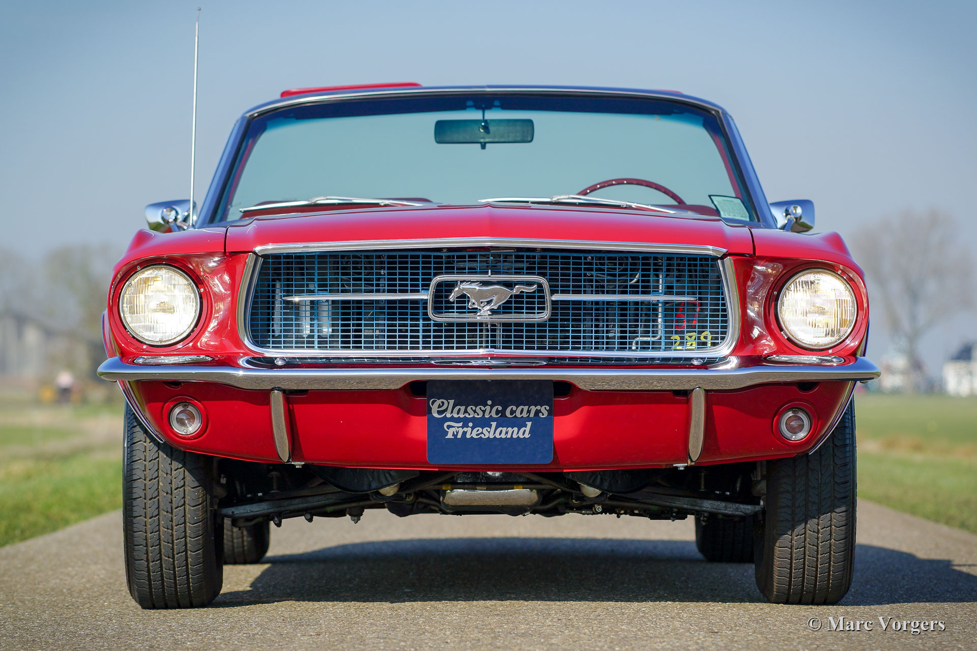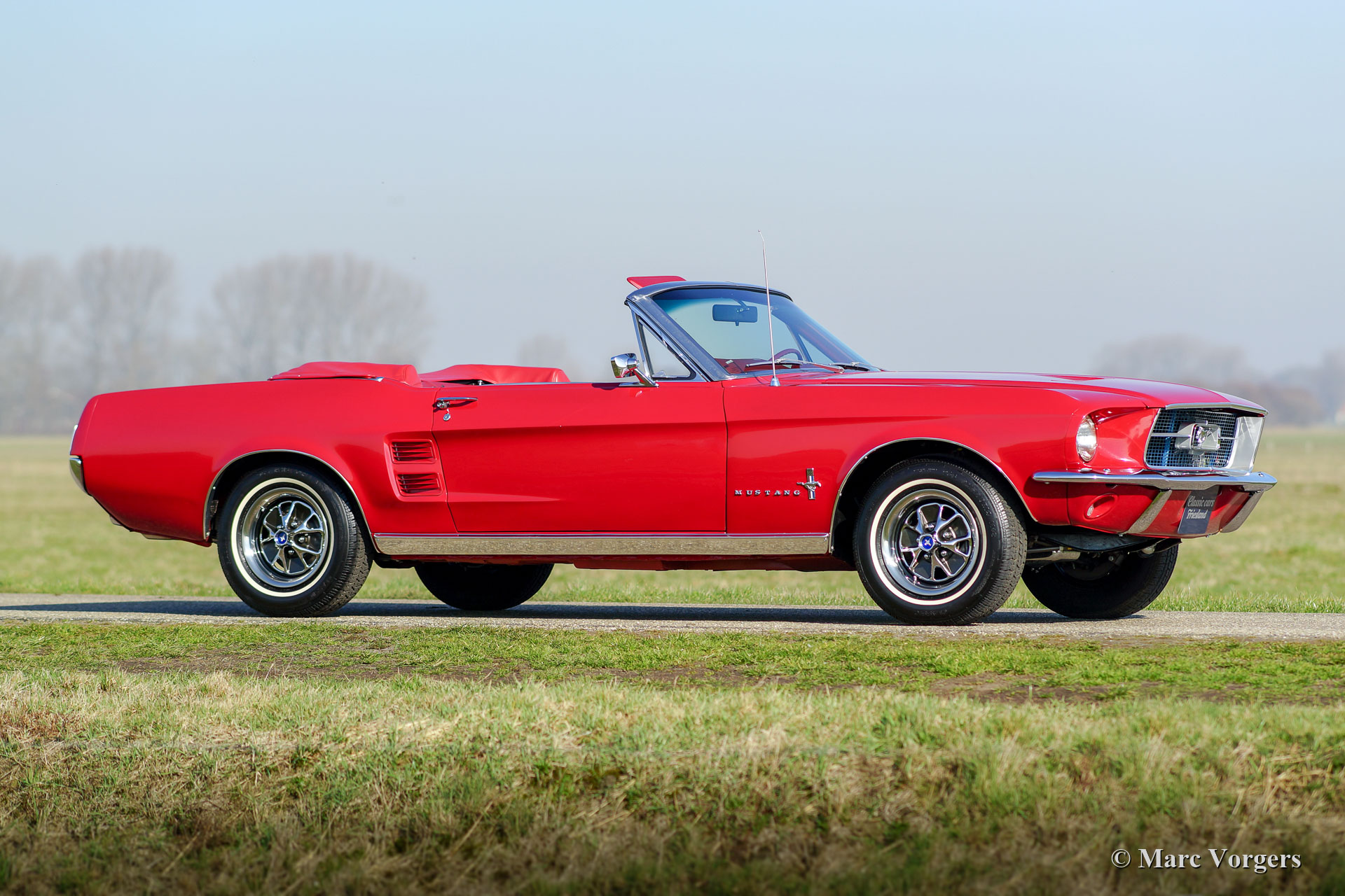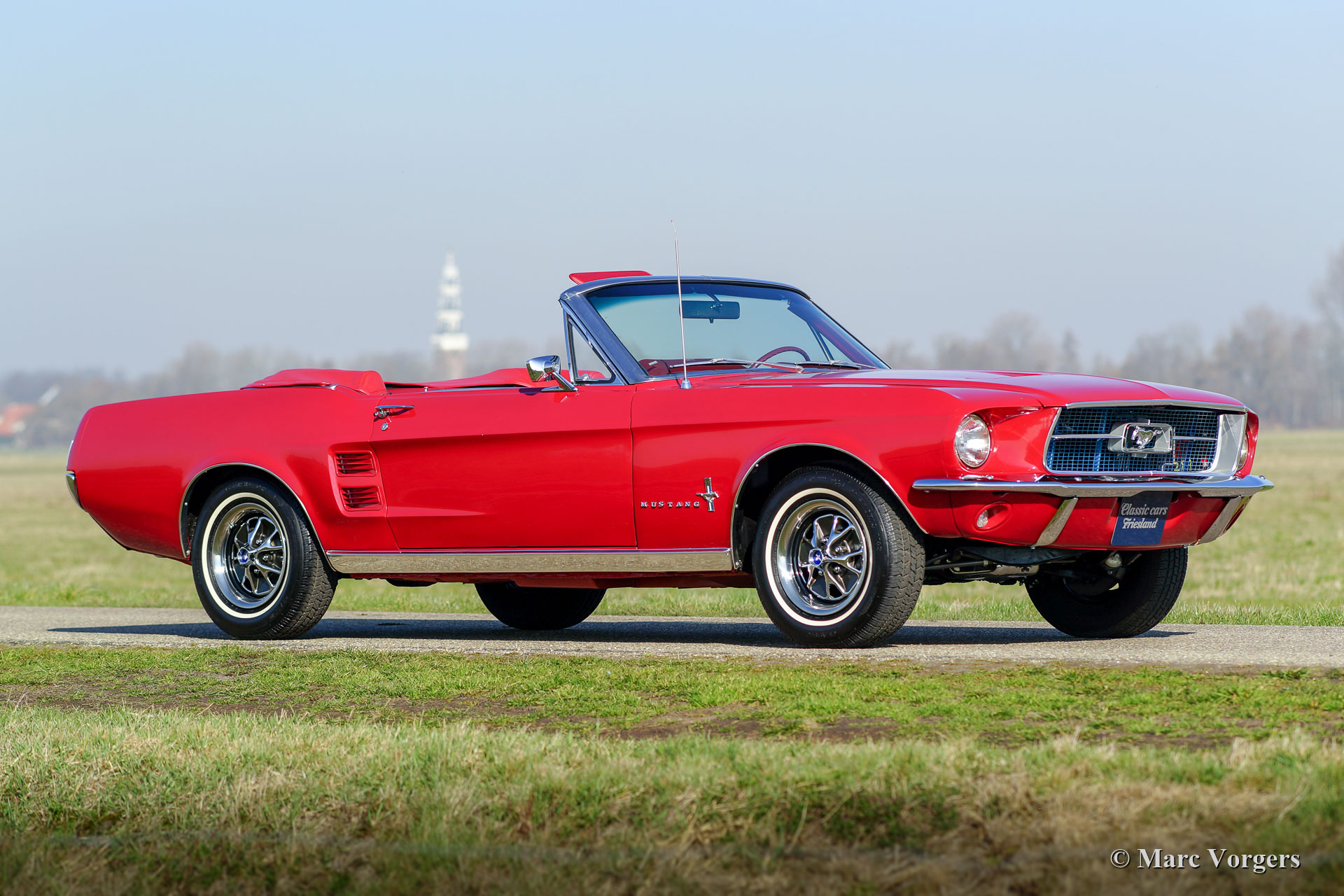 Ford Mustang 289 Cabrio, Jahr 1967. Farbe rot mit einem roten Kunstlederausstattung und rotem Teppich. Weißes Verdeck. Dieser sehr schöne Ford Mustang wurde umfassend restauriert. Das Auto ist in einem hervorragenden Zustand! Dieser Ford Mustang verfügt über einen leistungsstarken 289 cui (4,7 Liter) V8-Motor und ein 3-Gang-Automatikgetriebe. Darüber hinaus ist das Auto ausgestattet mit Servolenkung, ein elektrisch betriebenes Verdeck und einem Edelbrock-Vergaser. Ein wunderschönes Exemplar!