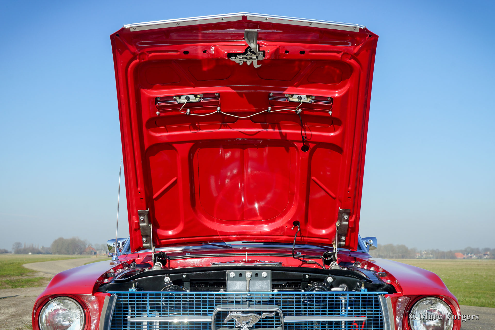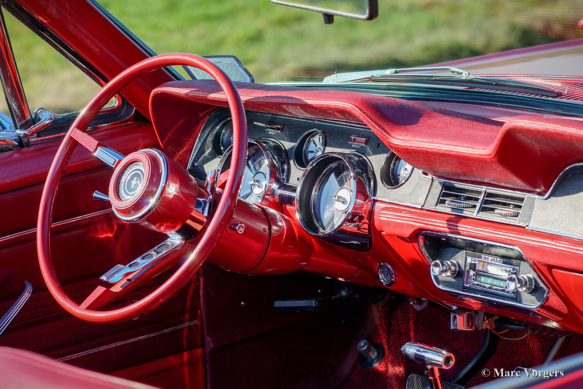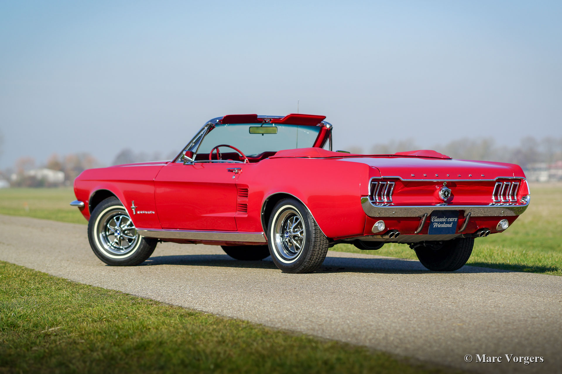 Ford Mustang 289 Cabrio, Jahr 1967. Farbe rot mit einem roten Kunstlederausstattung und rotem Teppich. Weißes Verdeck. Dieser sehr schöne Ford Mustang wurde umfassend restauriert. Das Auto ist in einem hervorragenden Zustand! Dieser Ford Mustang verfügt über einen leistungsstarken 289 cui (4,7 Liter) V8-Motor und ein 3-Gang-Automatikgetriebe. Darüber hinaus ist das Auto ausgestattet mit Servolenkung, ein elektrisch betriebenes Verdeck und einem Edelbrock-Vergaser. Ein wunderschönes Exemplar!