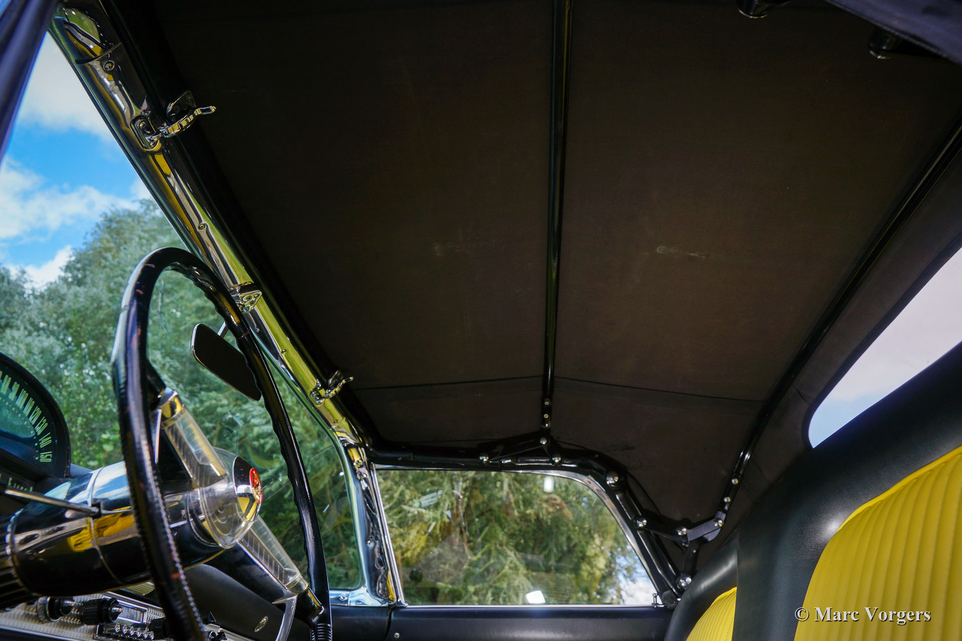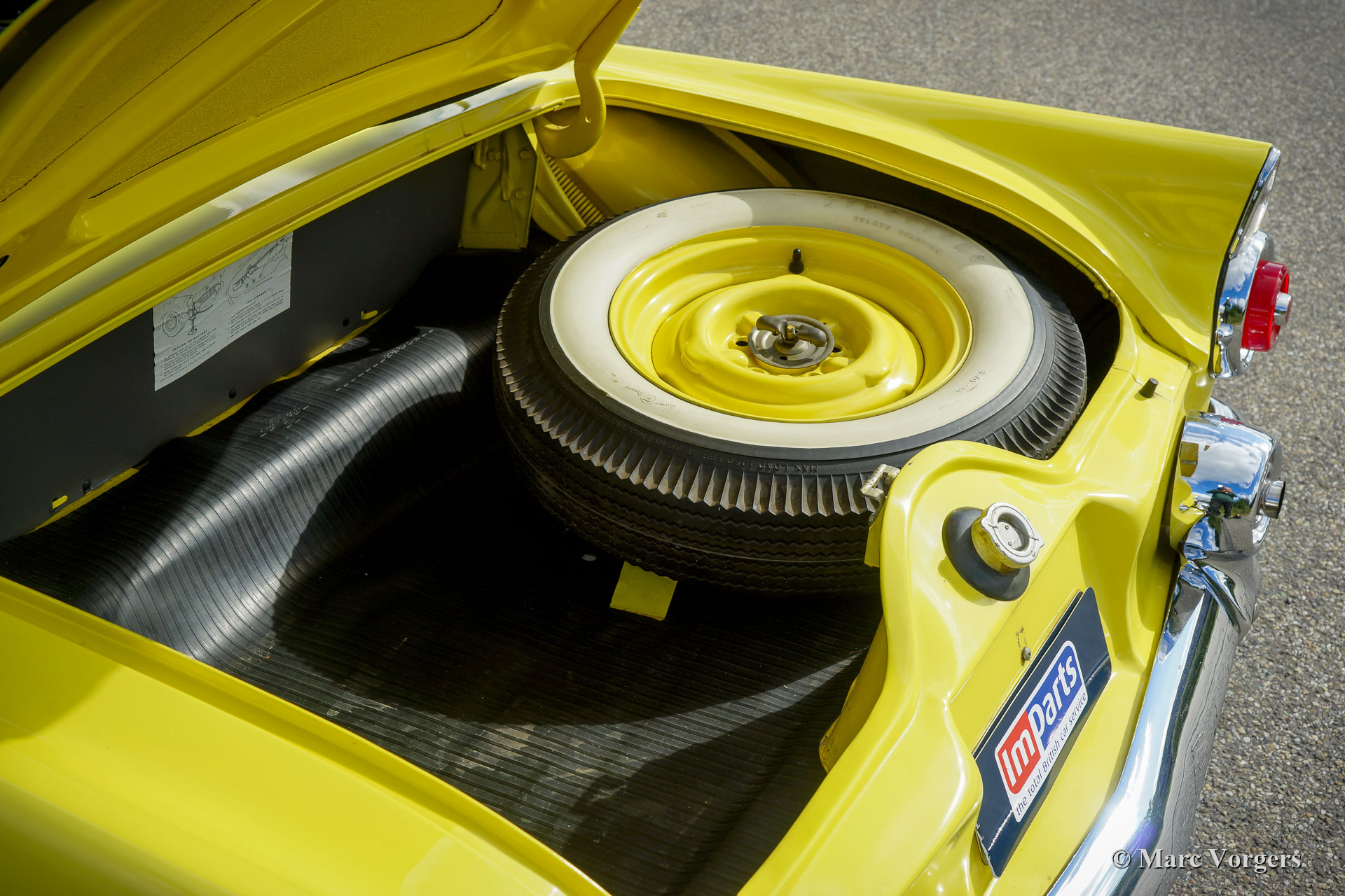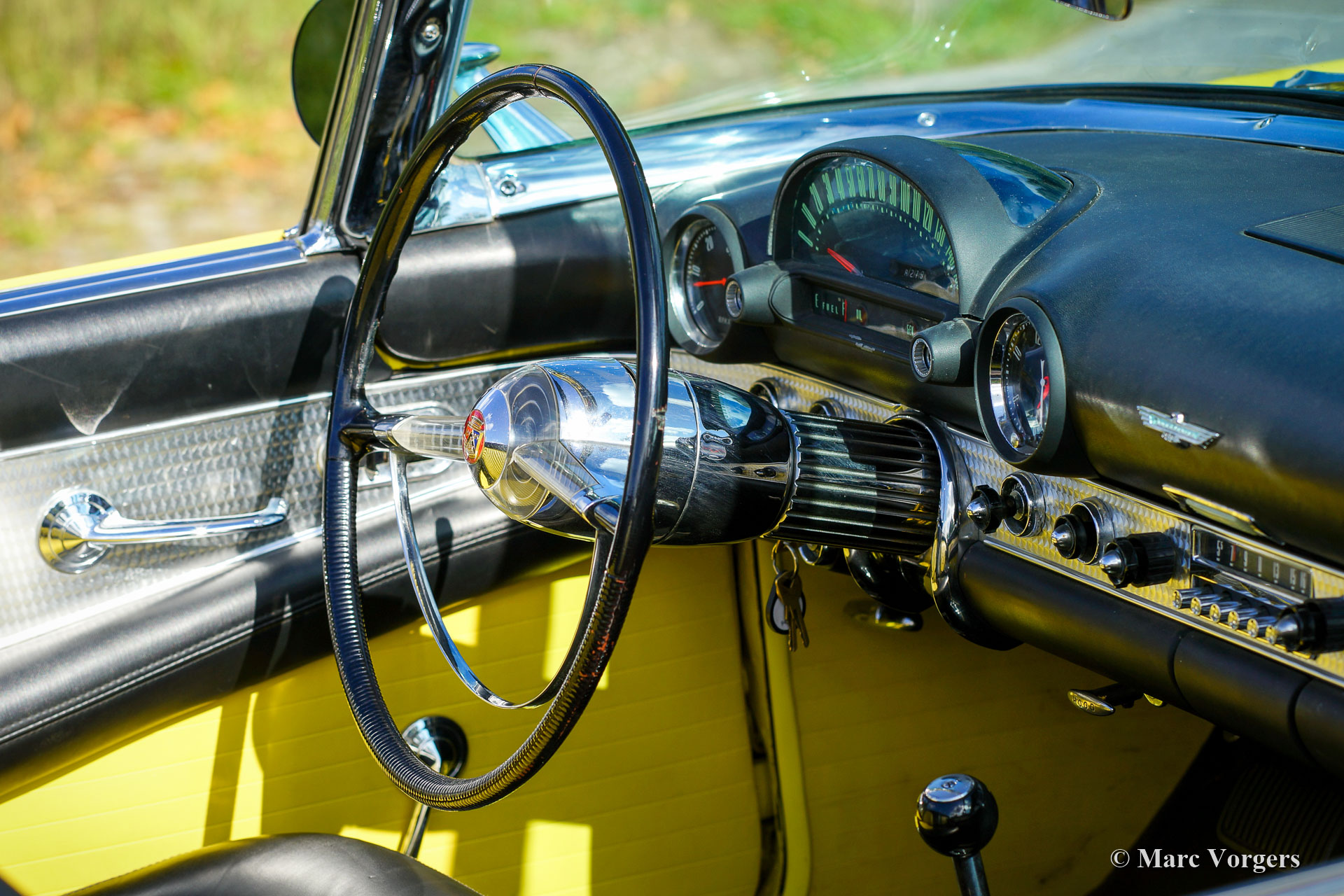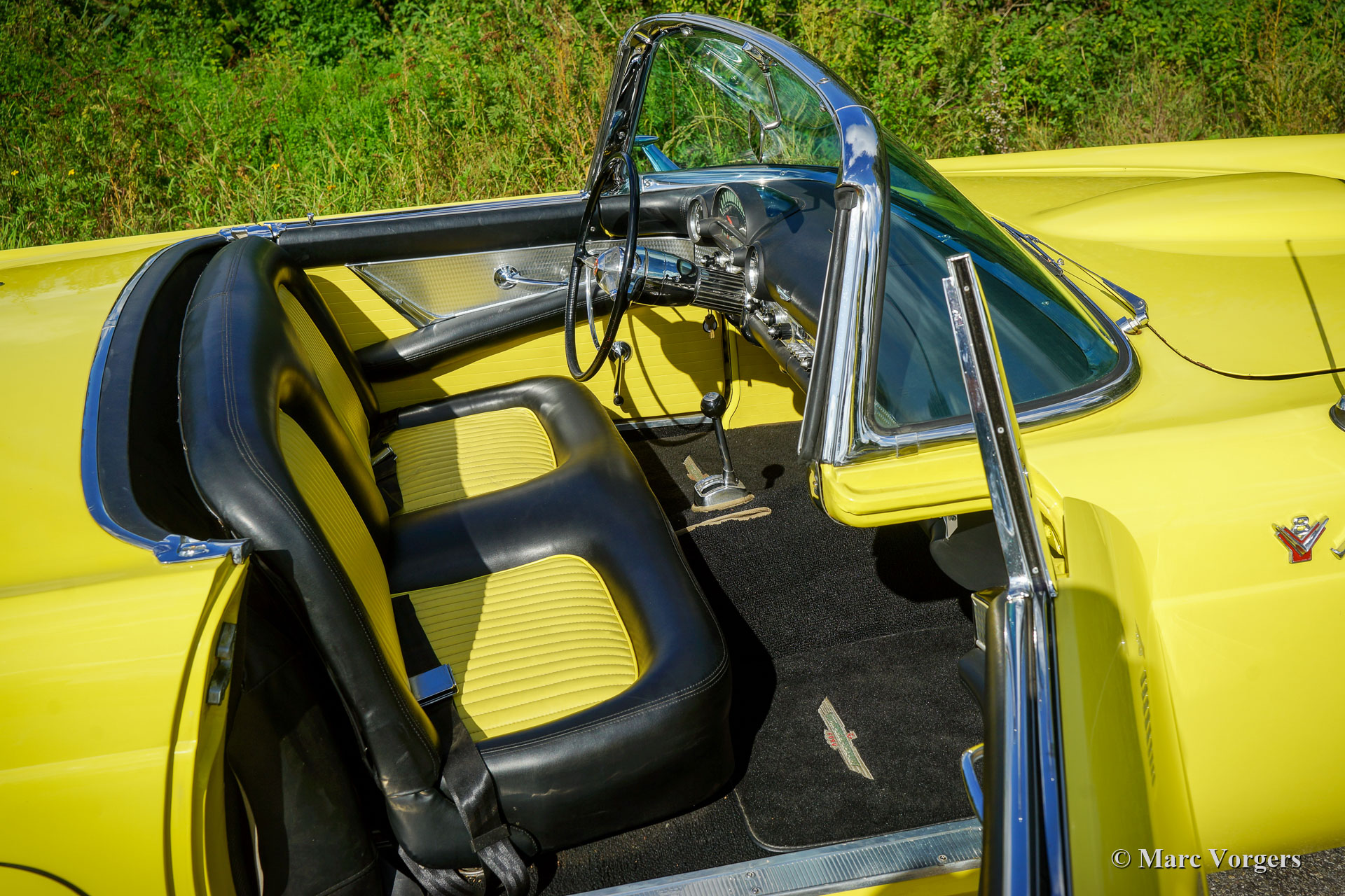Ford Thunderbird, Jahr 1955. Farbe Gelb kombiniert mit einem zweifarbigen (gelb / schwarz) Kunstleder-Interieur, einem schwarzen Teppich und einem schwarzen Verdeck. Der legendäre Ford Thunderbird wurde im Jahr 1955 eingeführt. Mit 16.000 verkauften Exemplaren im ersten Jahr verkaufte der Thunderbird die Chevrolet Corvette bequem über. Der vorgestellte Ford Thunderbird wurde in der Vergangenheit umfassend restauriert und die Karosserie restauriert (Fahrgestell, Karosserie, Innenraum, Federung und mechanische Komponenten), und die ursprüngliche 6-Volt-Elektrik wurde auf 12 Volt umgestellt. Das Auto ist in einem besonders guten Zustand mit leichten Gebrauchsspuren. Das Auto zeigt alle besonderen Originaldetails und Abzeichen, die in perfekter Form sind. Der Ford Thunderbird verfügt über einen 298 cu (4785 ccm) V8-Motor, der mit einem Automatikgetriebe kombiniert ist. Der Motor läuft wie neu und das Automatikgetriebe schaltet perfekt. Dieser Thunderbird verfügt über einen kraftverstellbaren Sitz, ein originales 6-Volt-AM-Radio (derzeit nicht an das 12-Volt-System angeschlossen) und weiße Seitenwandreifen. Dies ist einer der legendären amerikanischen Klassiker!