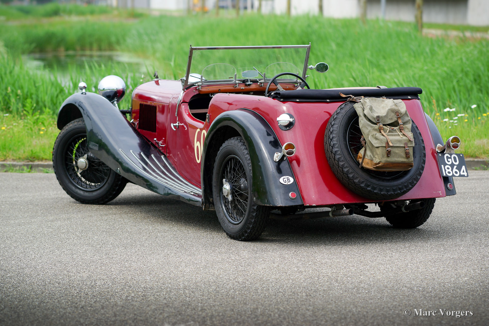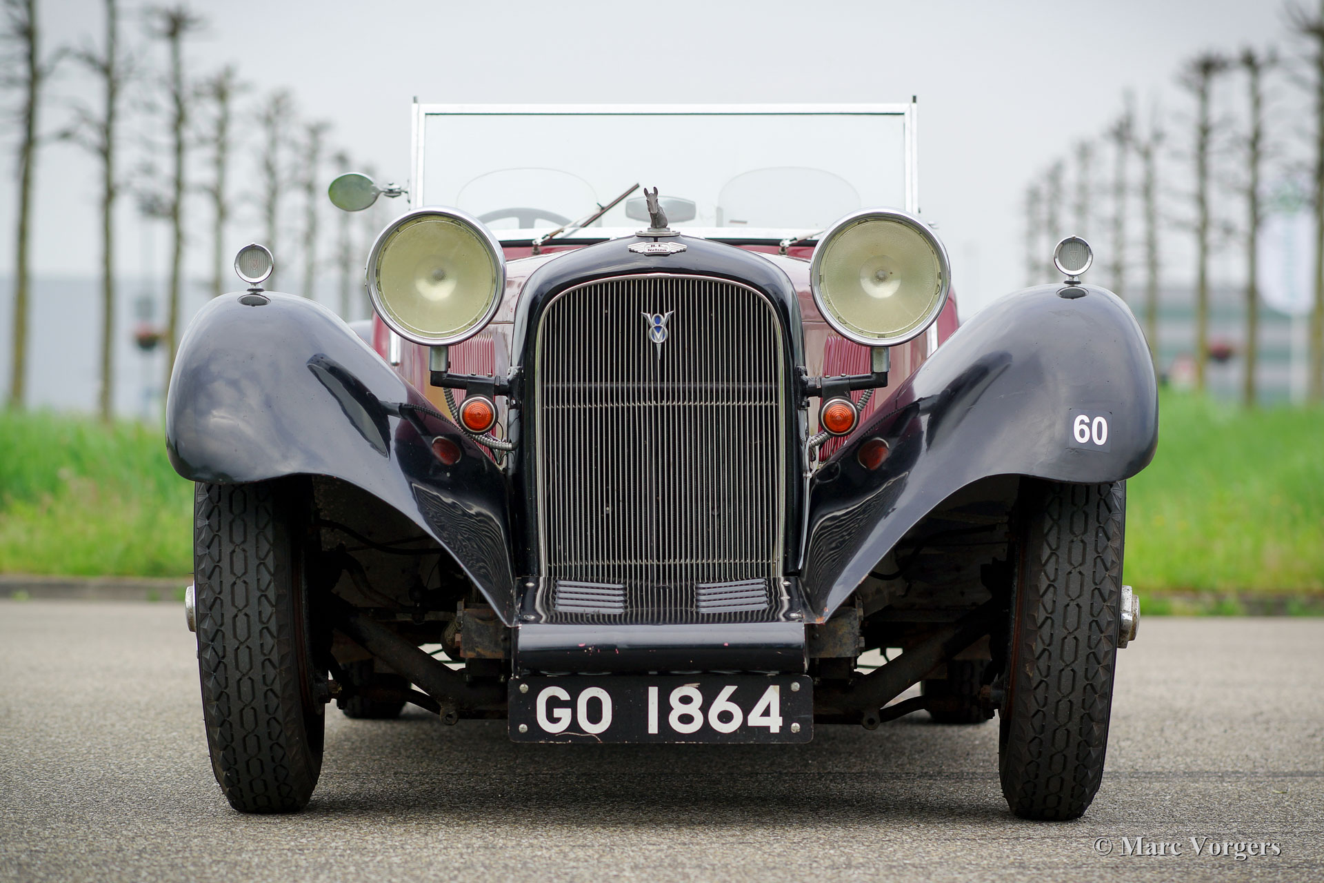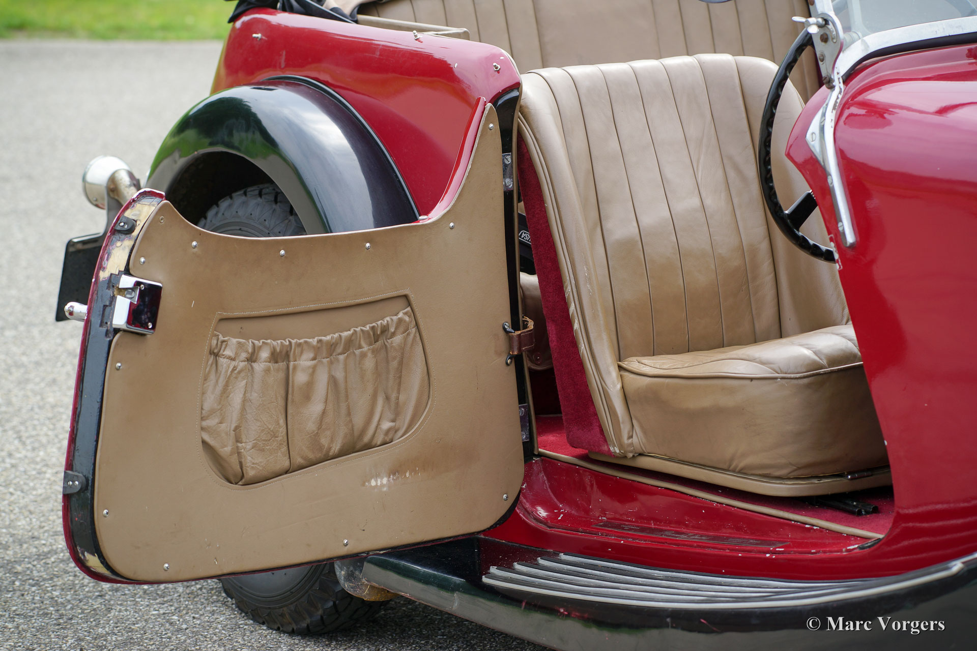 Herbert Engineering (H. E.) Nelson V8 open-tourer Spezial, Jahr 1931. Farbe dunkelrot (bordeauxrot) über Schwarz kombiniert mit einer beigen Lederausstattung und einer schwarzen Kapuze. Herbert Engineering ist einer der vielen kleinen britischen Automobilhersteller vor dem Zweiten Weltkrieg, die seit Jahrzehnten vergessen sind. Das H.E. Firma wurde geschlossen kurz nach der Einführung dieses Modells. Herbert Engineering Automobile sind sehr, sehr selten, daher sind wir stolz Ihnen diesem sehr interessanten ‘Special‘ zu präsentieren. Das Auto kommt mit einer perfekt dokumentierten Geschichte von über 85 Jahren! Am interessantesten ist die Tatsache, dass der zweite Besitzer, ein Mr. Nelson, in Jahr 1934 den ursprünglichen Sechszylinder-Reihenmotor für einem amerikanischen V8-Kraftwerk tauschte! Es ist nicht das erste britische Auto mit einem amerikanischen 8-Zylinder-Motor, sondern der 1933 Railton Terraplane. Aber eines der ersten britischen Autos (und Specials) mit einem amerikanischen V8-Motor! Der Motor ist ein 3,6 Liter Ford "Flat-Head" V8 der sehr tief im Chassis eingebaut ist! Dieses Chassis ist bereits am Heck "underslung" (Achse über dem Chassis montiert). Der Achsantrieb wurde ebenfalls mit einem höheren Übersetzungsverhältnis verbessert und die mechanischen Kabelbremsen wurden gegen ein Hydrauliksystem ausgetauscht. Kürzlich wurde der Motor mit einem neuen hochverdichteten Zylinderkopf und elektronischer Zündung ausgestattet. Dieser H.C. Nelson V8 Special sieht sicherlich zielstrebig aus, auch mit der Haube aufgerichtet! Die Motorhaube bildet fast die Hälfte der Länge des Autos! Dies ist ein sehr bemerkenswertes Special, das im Detail rau ist. Ein großartiges Projekt für den Enthusiasten! Das Auto ist derzeit in Großbritannien registriert.