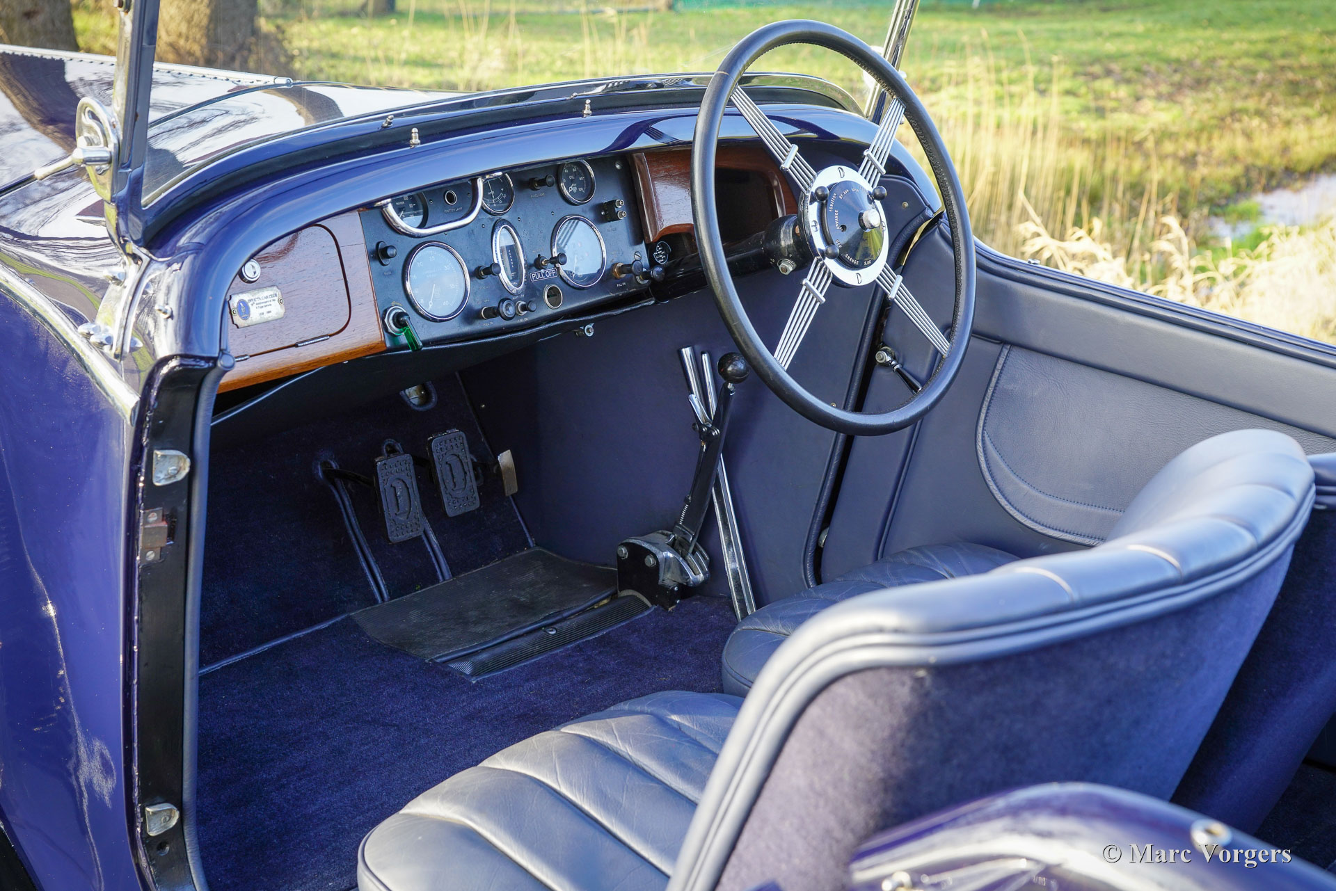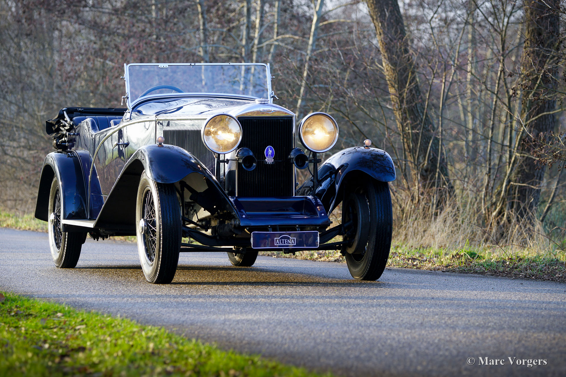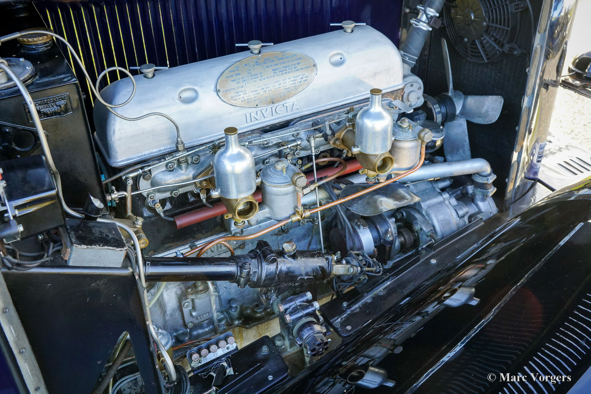 Invicta 4½-Liter (Serie A), Jahr 1931 (Erstzulassung 2. Januar 1931, Baujahr 1930). Fahrgestellnummer A204, Motornummer 7918. Außenfarbe Oxfordblau, kombiniert mit schwarzem Chassis und schwarzen Speichenrädern. Blaue Lederausstattung mit blauem Teppich und schwarzem Mohair Verdeck. In den 1920er-Jahren erwarb sich Invicta einen Ruf für Leistung und Fahrverhalten. Mit der Einführung des 4½-Liter-Modells wurde eine Legende geboren. Dieses sehr teure Topmodell war als schnelles und sportliches Fahrzeug mit außergewöhnlicher Beschleunigung bekannt. Der Invicta 4½-Liter wurde in sehr geringen Stückzahlen produziert; erhaltene Werks- und Clubunterlagen belegen eine Gesamtstückzahl von etwa 50 Fahrzeugen. Die Produktion lief von 1930 bis 1933, wobei das Modell in verschiedenen Ausführungen angeboten wurde, darunter das Low Chassis und der spätere S-Type. Die Karosserien wurden von einer Reihe namhafter Karosseriebauer wie Vanden Plas, Corsica, Lancefield und anderen geliefert, was zu gewissen Abweichungen in den angegebenen Produktionszahlen beiträgt. Diese geringe Stückzahl, kombiniert mit der fortschrittlichen Technik und der Sportliche Tradition des Modells, erklärt den Ruf des Invicta 4½-Litre als einen der seltensten und begehrtesten britischen Sportwagen der Vorkriegszeit. Der hier präsentierte 4½-Litre, Chassis A204, verfügt noch über seine originale offene Viersitzer-Karosserie von Corsica aus London. Das Automobil wurde in der Vergangenheit restauriert und hat seine fantastischen Originaldetails bewahrt. Unter der Motorhaube, in der der leistungsstarke 110 PS starke Meadows-Reihensechszylinder untergebracht ist, befinden sich auch die originale Zentralschmieranlage und ein zusätzlicher Kühlventilator. Das Vierganggetriebe ist mit einem Tim-Payne-Overdrive gekoppelt. Das Armaturenbrett beherbergt eine Reihe wundervoller Originalinstrumente (darunter eine ganz besondere Tankanzeige) und ein Instrument eines späteren Modells. Der Innenraum wurde vor Kurzem neu bezogen und präsentiert sich in einem sehr gepflegten Zustand. Dieser äußerst seltene Invicta 4½-Liter der A-Serie stammt aus einer Sammlung. Das Fahrzeug fährt sich hervorragend und verfügt über eine umfangreiche Dokumentation. Dieser Invicta 4½-Liter Corsica Tourer vereint alle erdenklichen Qualitäten: Leistung, Stil und Seltenheit.