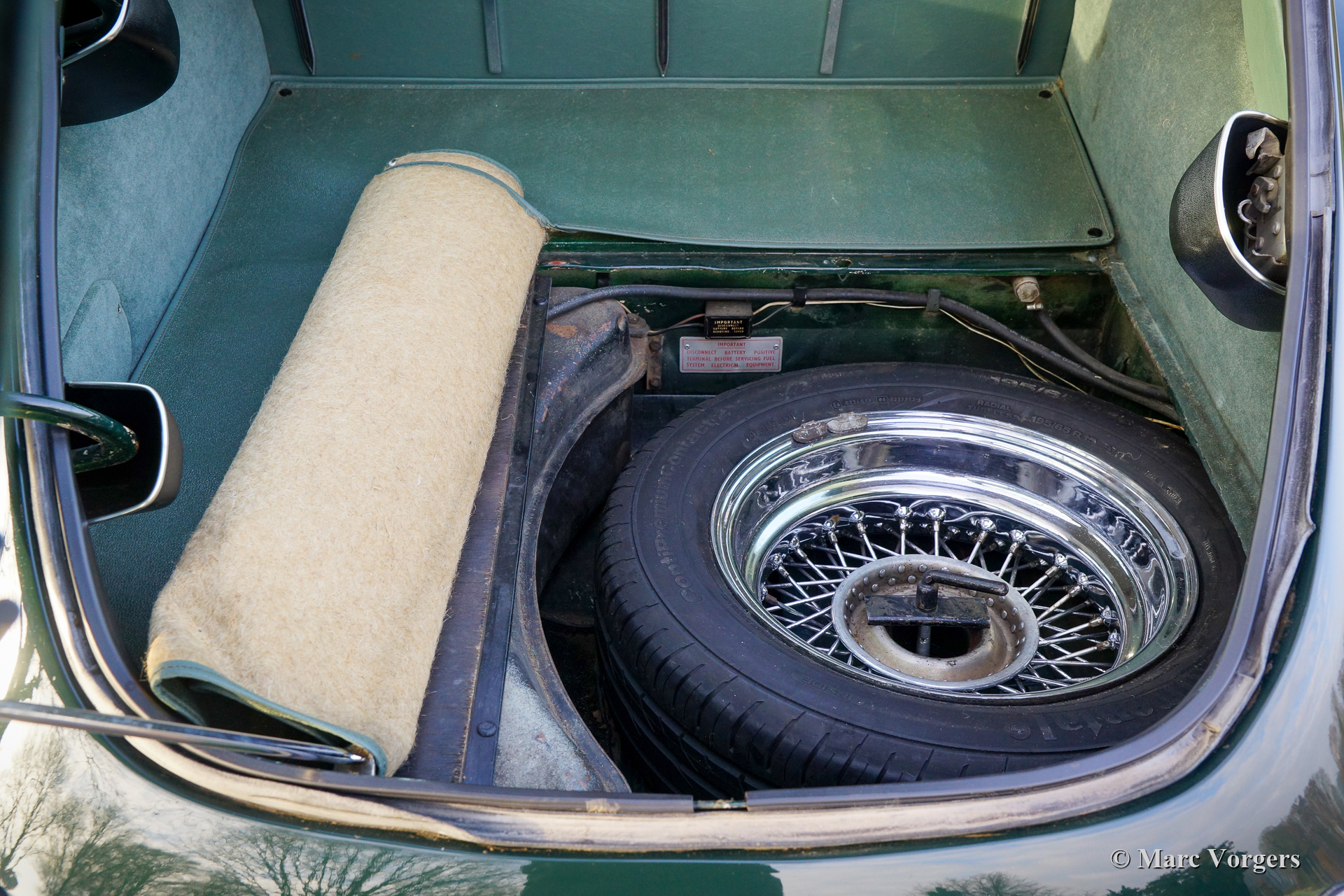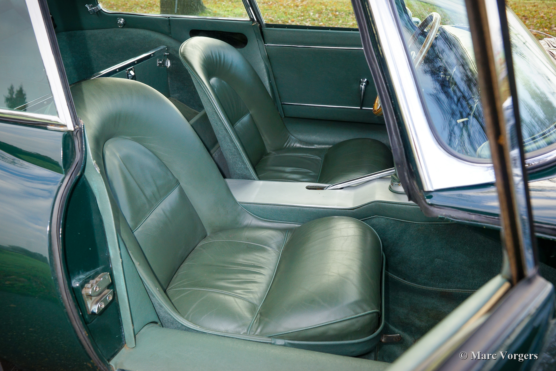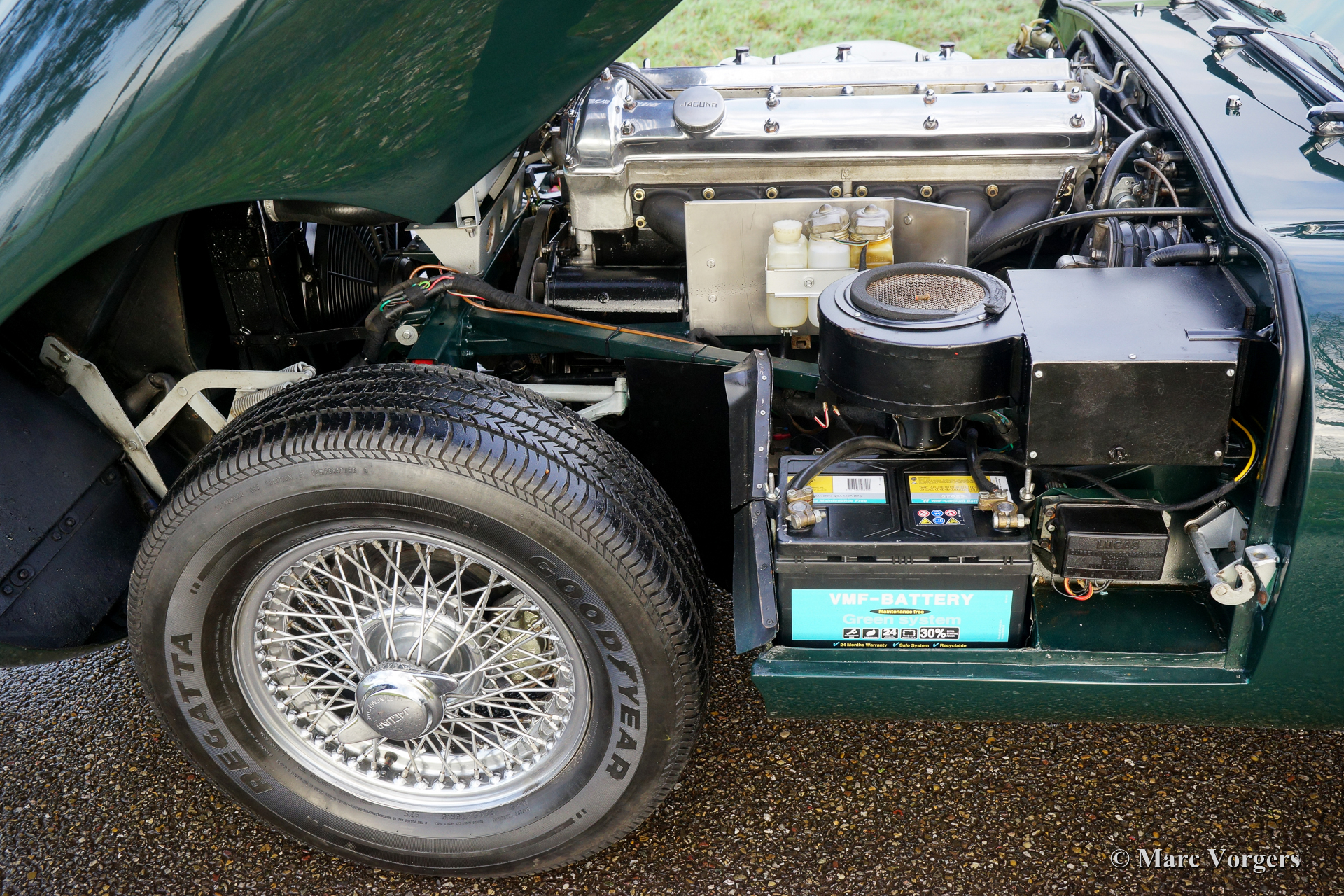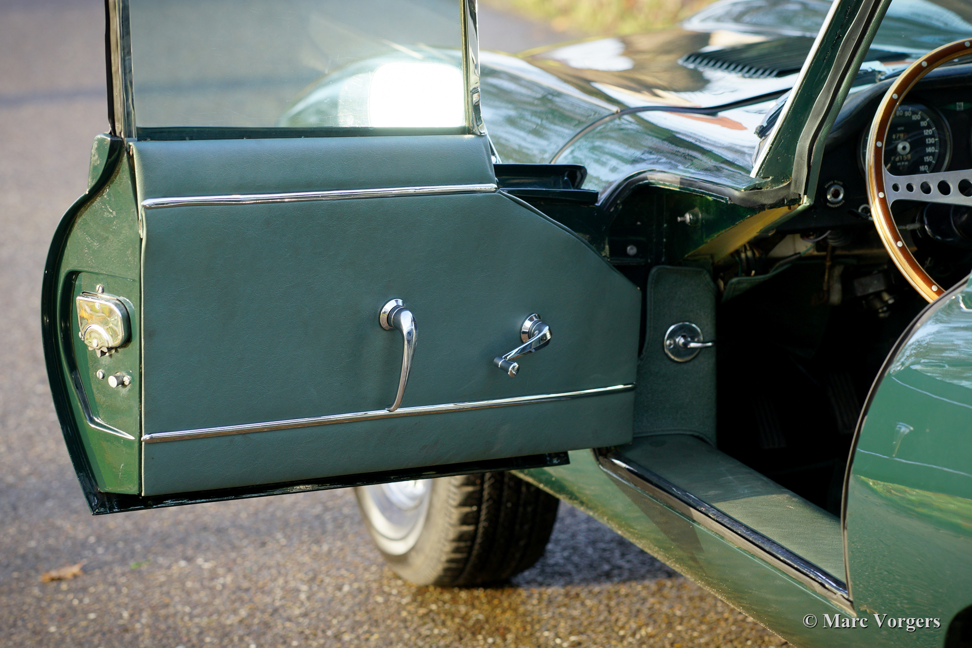 Jaguar E-Type 3,8 Liter FHC Serie 1, Jahr 1963. Farbe dunkel British Racing Green kombiniert mit einer hellgrünen „Suede Green“ Lederausstattung und einem hellgrünen Teppich. Dieses fabelhafte Jaguar E-Type „Fixed Head Coupé“ aus der 1. Serie wurde in den USA neu verkauft. Im Jahr 1994 wurde das Auto in die Niederlande importiert. Diese fantastische Maschine wurde vom letzten Besitzer von 2004 bis heute geschätzt! Der Jaguar E-Type wurde im März 1961 auf dem Genfer Autosalon vorgestellt. Der E-Type war in den 1960er Jahren fast so ein großer Showstopper wie der Citroën DS in der 1950er. Sogar Enzo Ferrari war beeindruckt und sagte, dass der Jaguar E-Typ das schönste Auto der Welt sei. Dieses frühe Coupé-Modell der 1. Serie ist aufgrund der großartigen Karosserieform, Dachlinie und Details der gefragteste E-Typ der Serie. Details wie die abgedeckten Scheinwerfer (die in der Serie 1.5 gelöscht wurden) und die wunderschönen Rückleuchten (die in der Serie 2 gelöscht wurden). Dieser fantastische Jaguar E-Type befindet sich in einem sehr guten und super originalen Zustand! Das Auto wurde nie restauriert, nur in der Vergangenheit neu lackiert. Technisch und mechanisch wurde das Auto wunderschön gewartet. In den letzten Jahren wurde der Motor überholt, das Getriebe überprüft und gewartet und die Hinterradaufhängung wiederhergestellt. Das Auto ist ausgestattet mit 15-Zoll-Chrom-Speichenrädern, die von 205/75 Goodyear-Reifen versehen sind. Weiter finden Sie einem zeitrichtigen Blaupunkt Essen-Radio mit FM am Armaturenbrett. Dieser Jaguar fährt und klingt fantastisch; Ein begehrliches Fahrerauto und ein wunderschöner Hingucker!