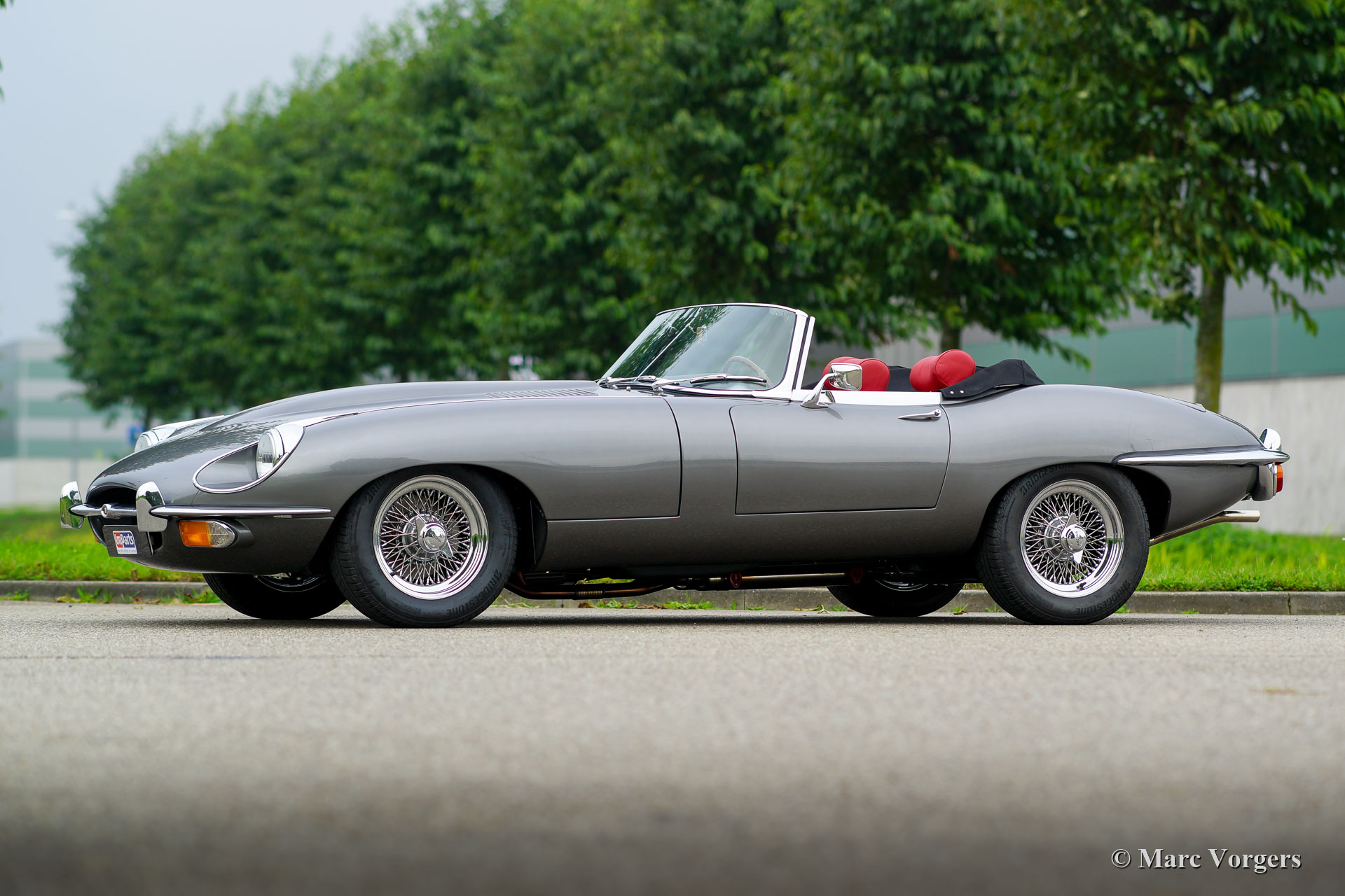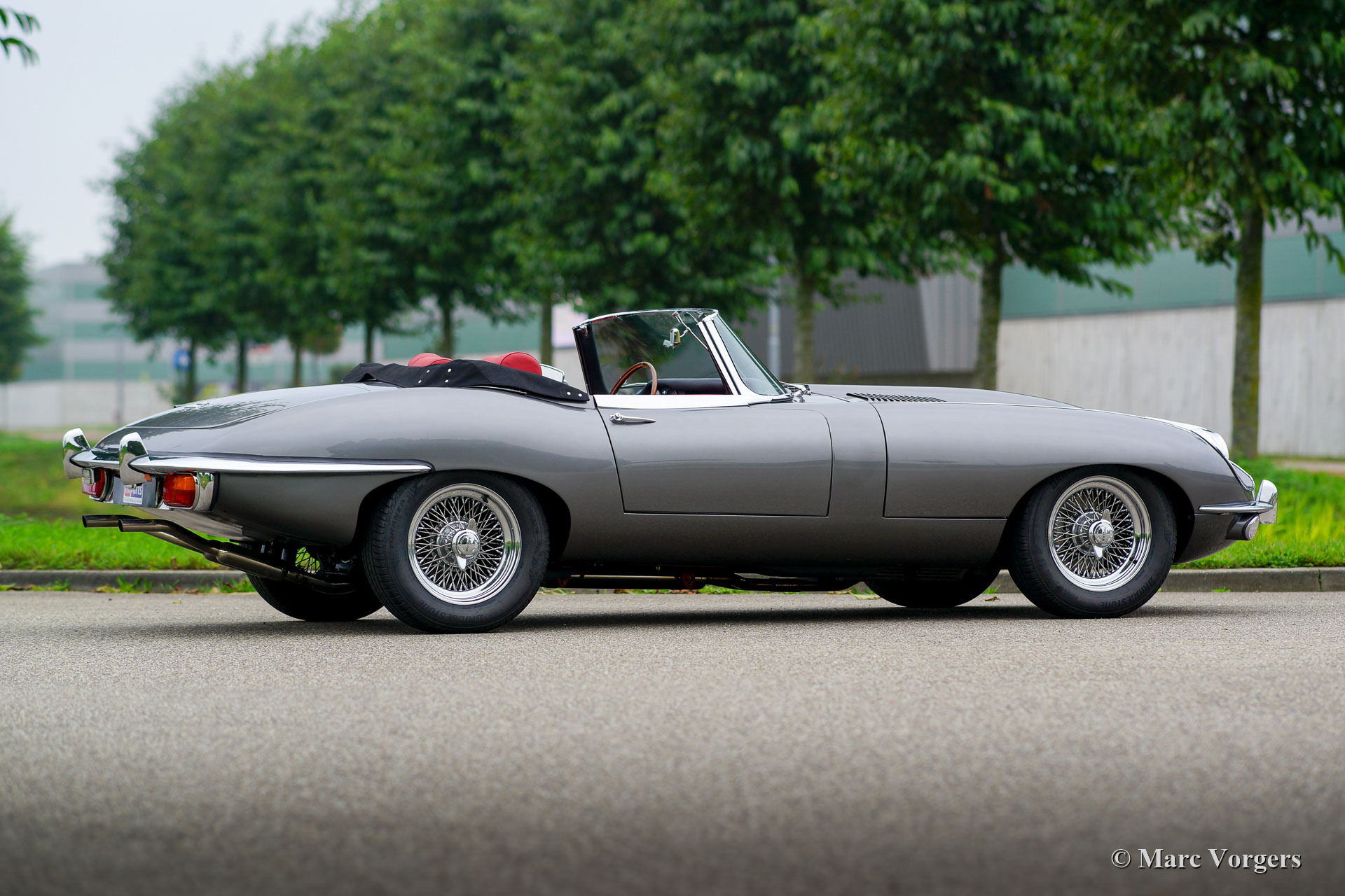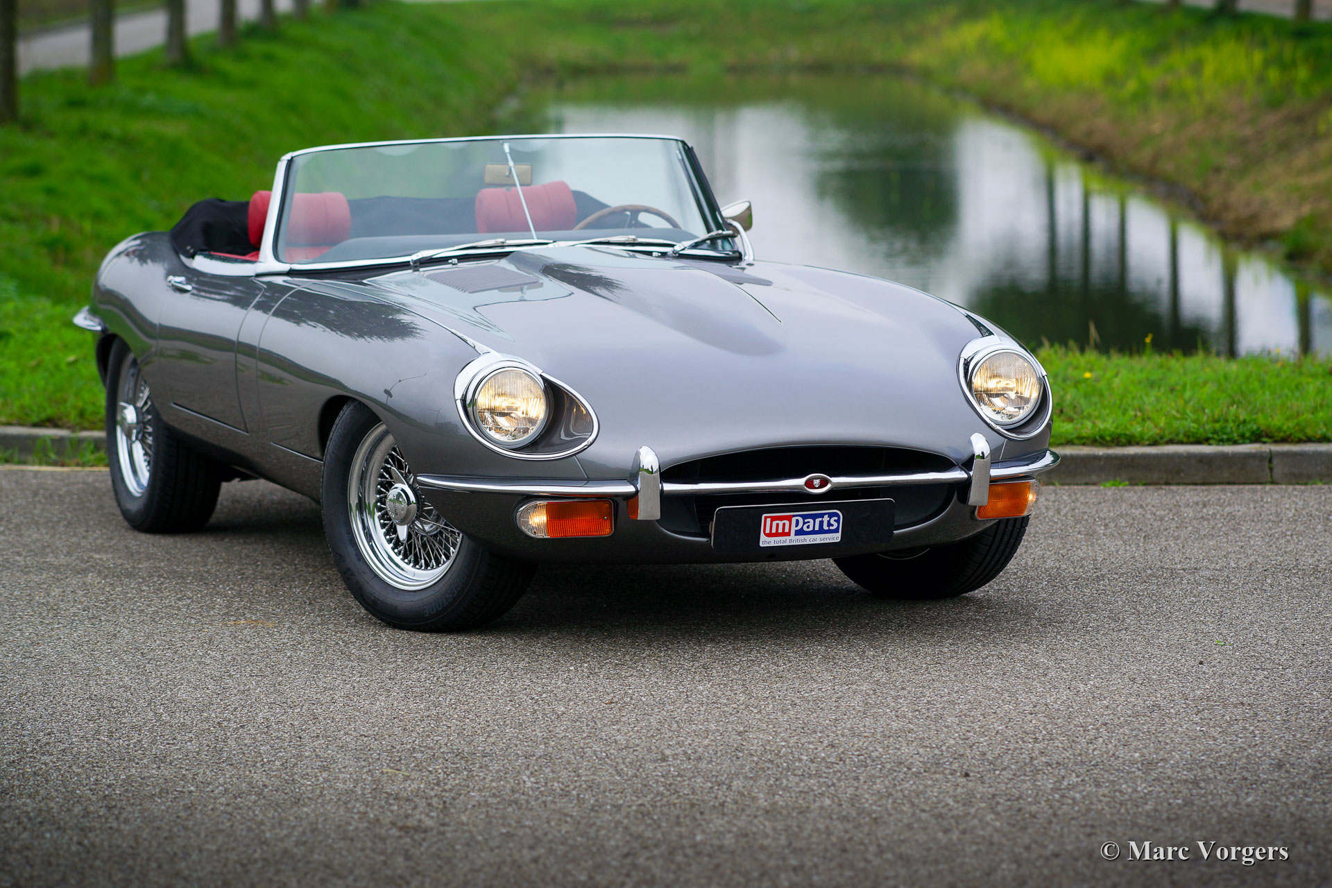 Jaguar E-Type 4,2 Liter OTS Serie 2, Jahr 1969. Farbe „Gunmetal“ grau metallic kombiniert mit einer roten Lederausstattung und rotem Teppich. Schwarzes Mohair-Verdeck und Verdeck-Abdeckung. Dieser wunderschöne Jaguar E-Type OTS („Open Two Seater“, auch Roadster genannt) wurde kürzlich restauriert, ein Fotobericht der Restaurierung und Rechnungen liegen vor. Dieser prächtige Jaguar E-Type Roadster zeigt alle originalen Details. Modifikationen sind breitere als die originalen Chrom-Speichenräder, eine Auspuffanlage aus Edelstahl und ein modernes Retro-Radio. Die Karosserie zeigt eine perfekte Passform und der Innenraum wurde hervorragend gepolstert! Dieser sehr begehrte Jaguar E-Typ Roadster fährt und klingt perfekt! Ein wunderschöner Roadster der E-Type-Serie 2 für alle Liebhaber, die ein hervorragendes Beispiel suchen.