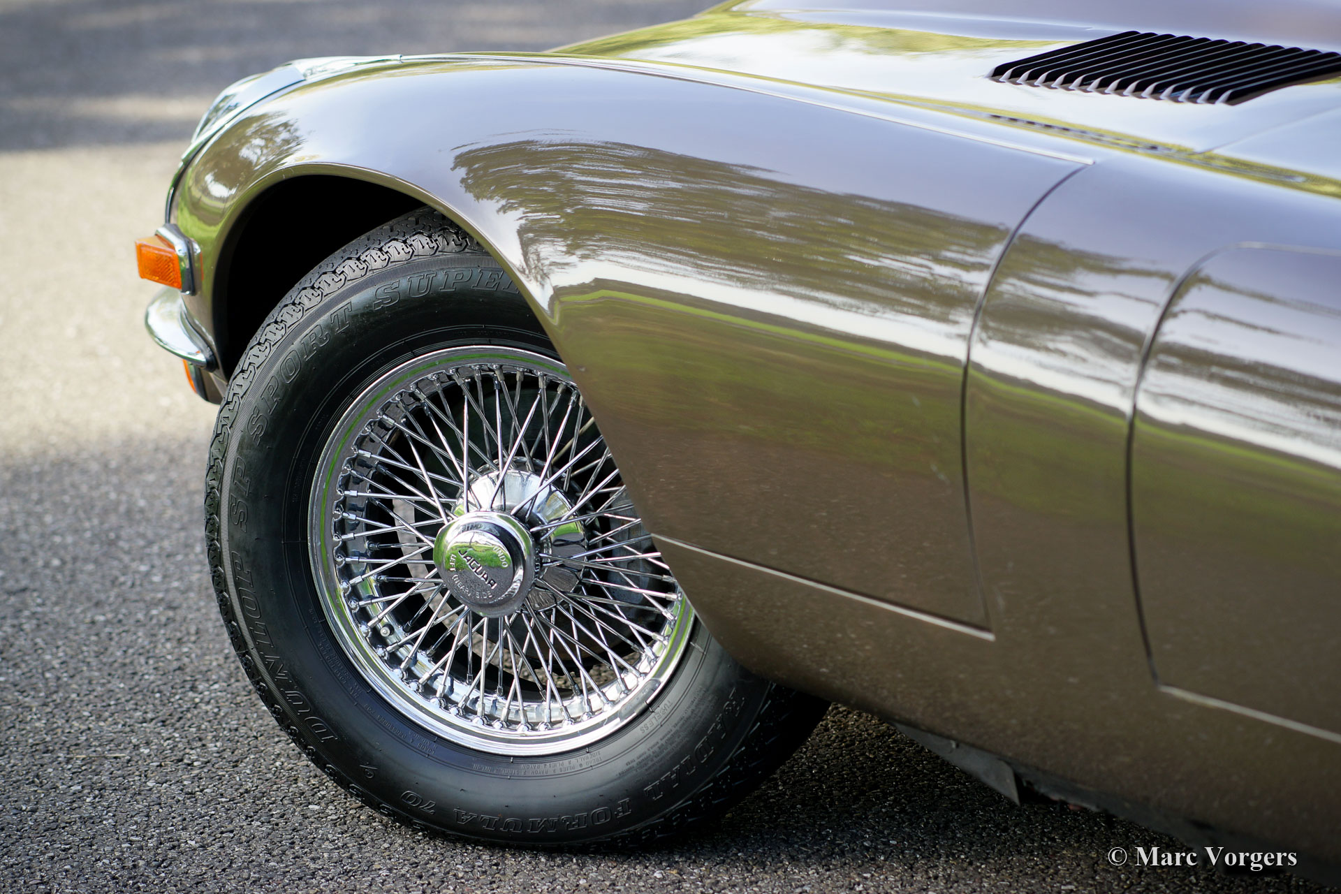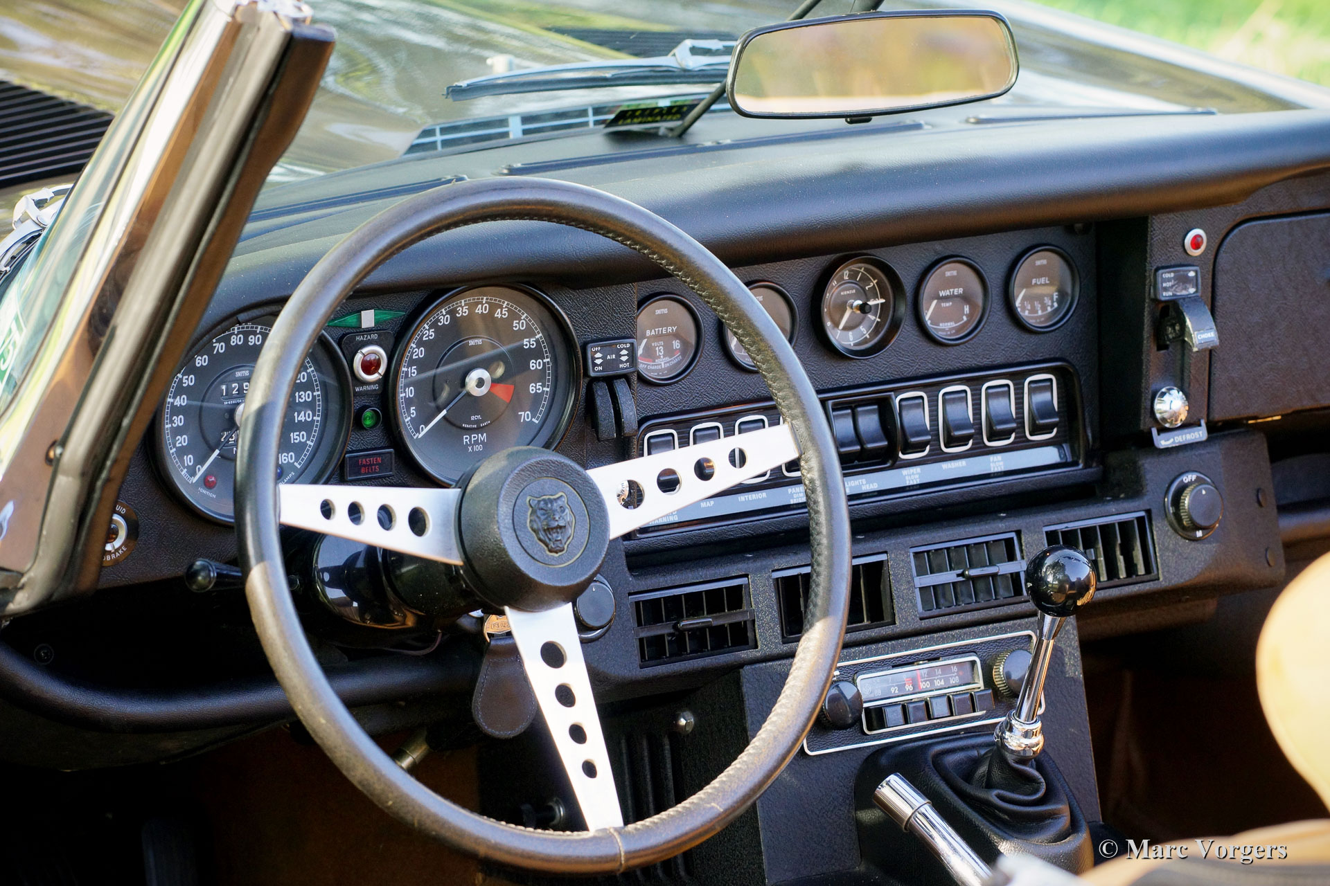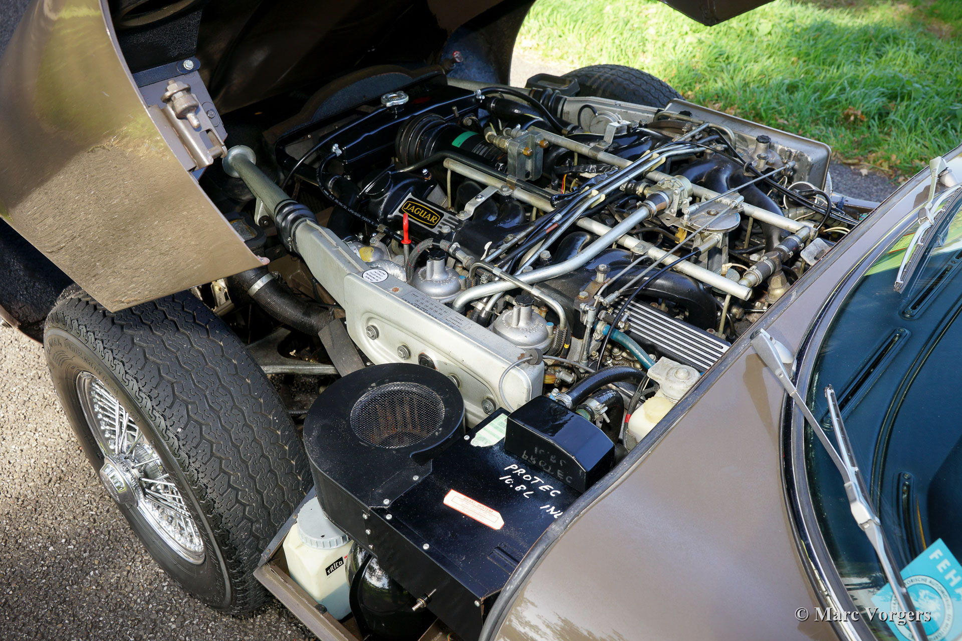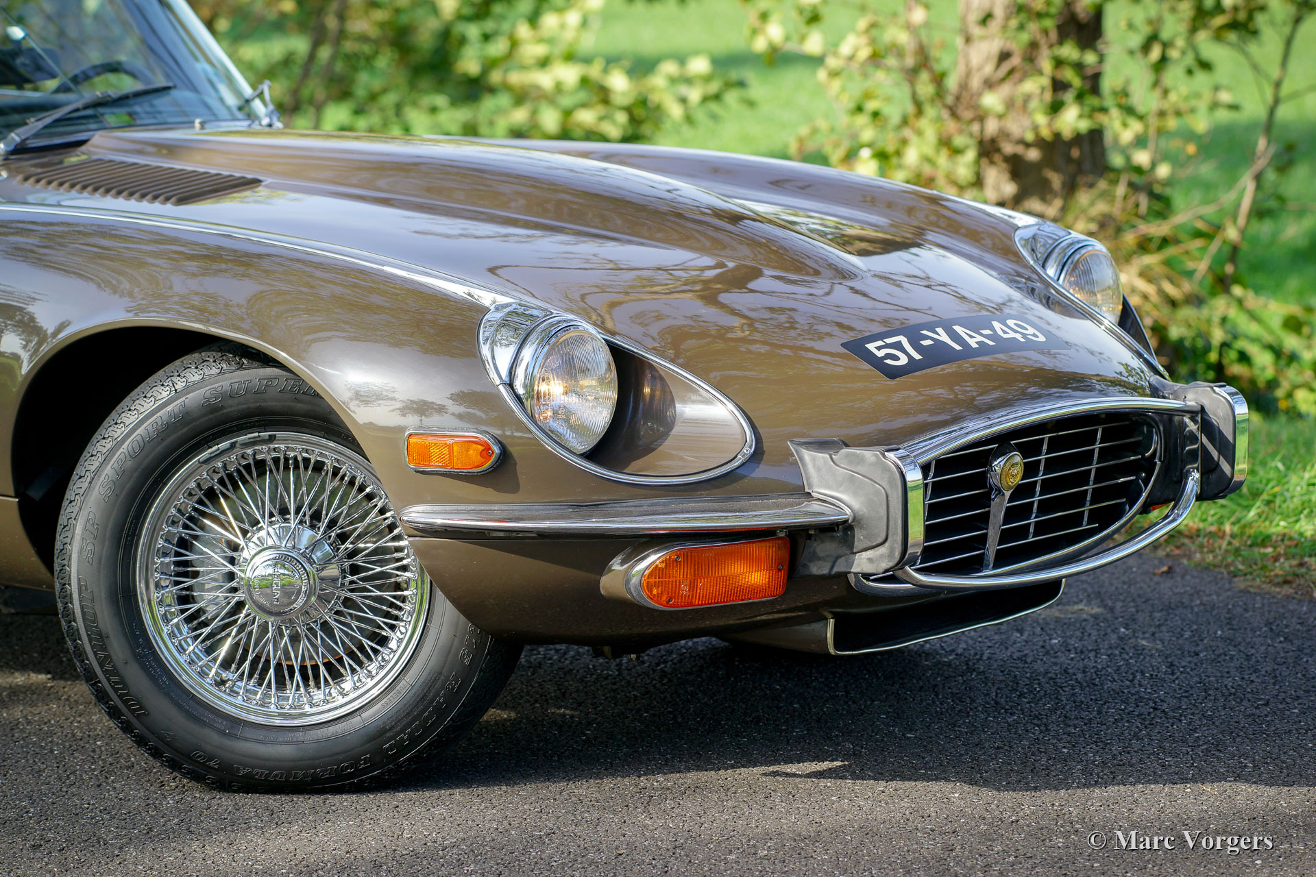 Jaguar E-Type V12 OTS, Jahr 1973. Fahrgestellnummer UDID2175X, Karosserienummer 4S346X, Motornummer 7S9980LX, Getriebenummer KL328X. Farbe braun (Sable) kombiniert mit einer hellbraunen Lederausstattung und hellbraunem Teppich. Schwarzes Verdeck und Verdeck-Abdeckung. Dieser beeindruckende Jaguar E-Type V12 wurde neu in den USA verkauft. Das Auto wurde 1991 in die Niederlande importiert. Dieser E-Type OTS (Open Two Seater, auch Roadster genannt) ist in einem sehr guten und super originalen Zustand! Der E-Type ist mit der seltenen manuellen Getriebeoption ausgestattet und das Auto fährt perfekt. Das Auto wurde nie restauriert, nur sehr gut gewartet, gepflegt und trocken abgestellt! In Anbetracht des Alters von 45 Jahren sind die Gebrauchs- und Altersspuren sehr gering; eine wahre Zeitmaschine! Die Lackierung ist weitgehend original, und das Interieur ist komplett original! In den Niederlanden kannte der E-Type nur zwei Besitzer, seit 2010 ist der Wagen beim zweiten niederländischen Eigner. Dieser Jaguar verfügt über 15-Zoll-Chrom-Draht-Räder, ein Chrom-Gepäckträger, das Original-Radio (British Leyland + FM) und das Original-Werkzeug-Set. Dies ist ein beeindruckender Jaguar E-Type V12 in sehr gutem und super original Zustand!