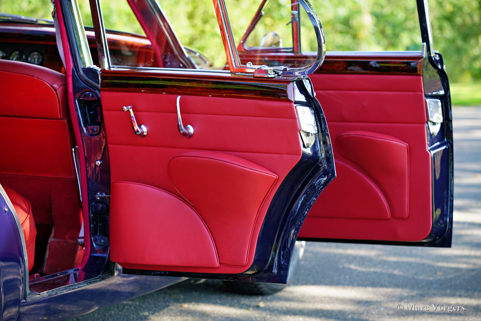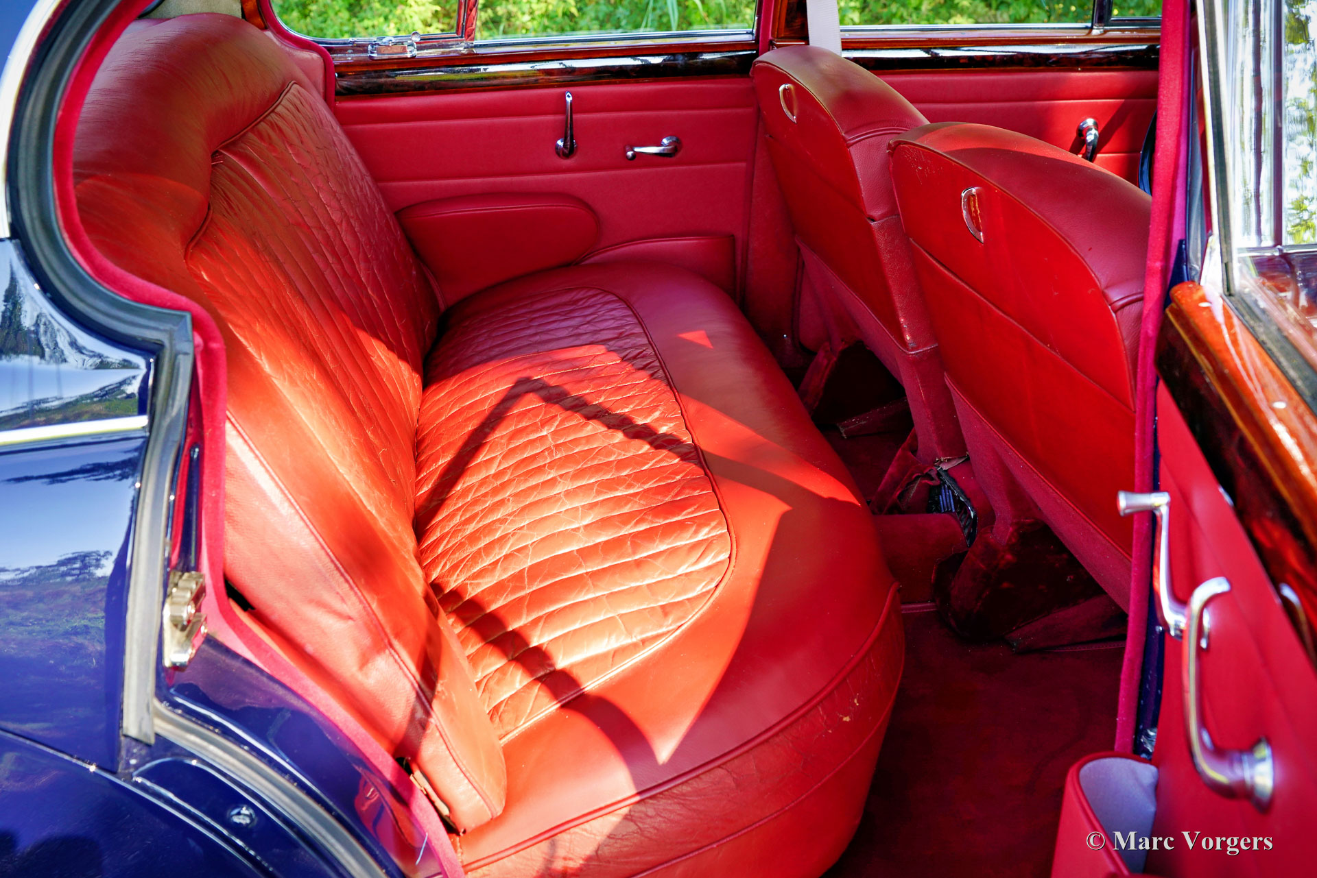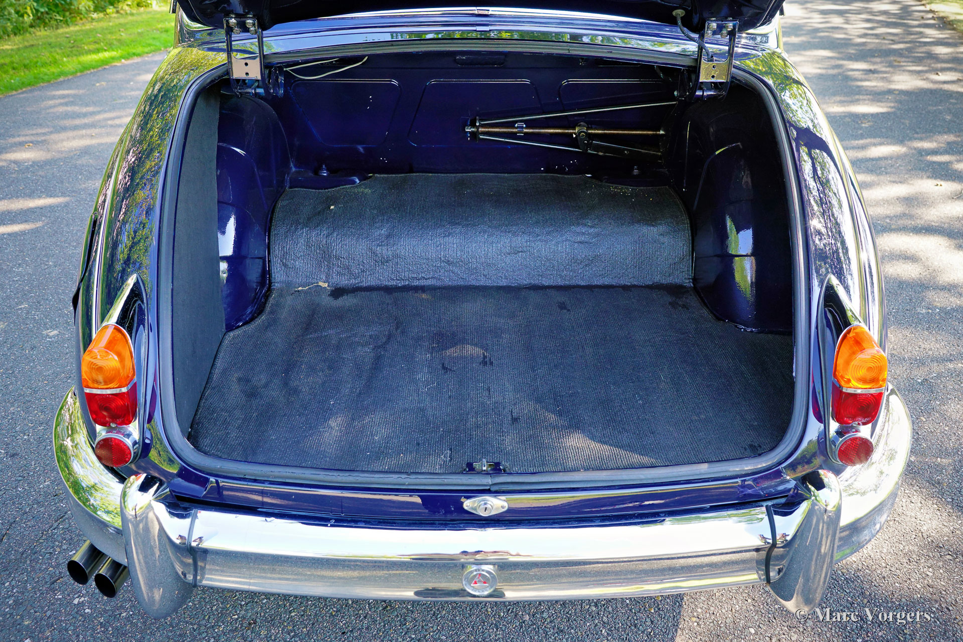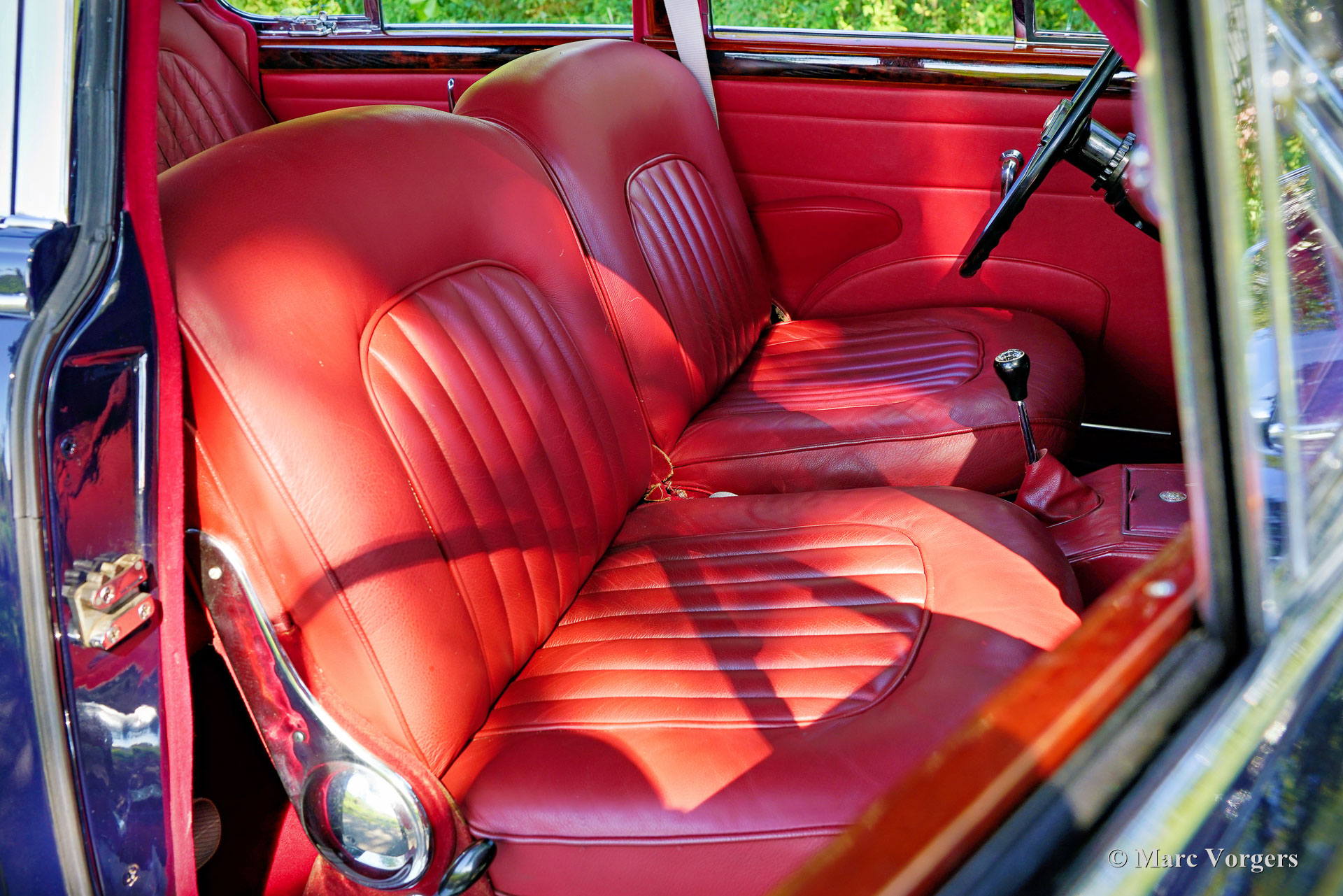 Jaguar Mk II 3,8 Liter, Jahr 1962. Farbe Dunkelblau kombiniert mit einem roten Lederausstattung und rotem Teppich. Dieser sehr schöne Jaguar Mk II wurde in der Vergangenheit umfassend restauriert, das Auto ist in einem sehr guten Zustand und fährt hervorragend. Der Jaguar Mk II war ein großer Erfolg und eine der begehrtesten britischen Limousinen der frühen 1960er Jahre. Dieses Spitzenmodell ist mit dem größten Motor von Jaguar zu dieser Zeit ausgestattet; dem 3,8-Liter-XK-Sechszylinder und dem manuell betätigten 4-Gang-Getriebe mit Overdrive! Der Reihensechszylinder mit 3781 ccm leistete 220 PS und ein 3,8er mit manuellem Getriebe war eine echte 200 km/h-Maschine, die zu Beginn der 1960er Jahre die meisten Sportwagen in den Schatten stellte. Aufgrund seines Potenzials war das Auto bei der Polizei sehr beliebt … und auch bei der Verbrechergilde. Dieser schöne Jaguar Mk II zeigt alle Originaldetails, einschließlich der Stahlräder mit verchromten Radkappen und den „Spats“ über den Hinterrädern. Der luxuriöse Innenraum atmet die Atmosphäre eines britischen Gentlemen‘s Clubs der Spitzenklasse, mit Wollteppich, teurer Lederpolsterung und Walnussholz rundherum. Der sportliche Charakter des Mk II wird durch das kraftvolle Knurren des Sechszylindermotors mit zwei Nockenwellen und das schöne Armaturenbrett voller Anzeigen und Schalter offenbart. Dieser Jaguar ist mit einem Edelstahlauspuff ausgestattet und das Auto wird komplett mit dem Originalwerkzeugsatz geliefert, der im Ersatzrad verstaut ist. Dieser Jaguar ist bereit, einem stolzen neuen Besitzer sein volles Potenzial zu zeigen.