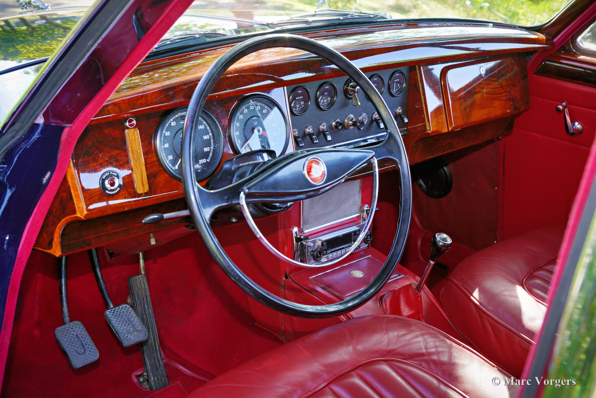 The Mk II derived its power and speed from the famous Jaguar XK engine with which Jaguar had been able to win in Le Mans in 1951 and in 1953 (3.4-litre version). The XK engine in the Mk II was available in three different cylinder capacities, namely 2483 cc/120 horsepower, 3442 cc/210 horsepower and 3781cc/220 horsepower respectively. The 3.8 version had a top speed of no less than 120.5 miles per hour (about 200 km/h). The Jaguar Mk II was built until 1967.
