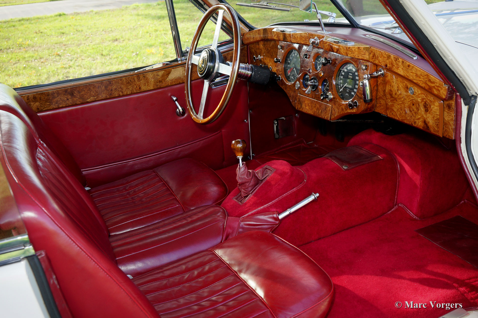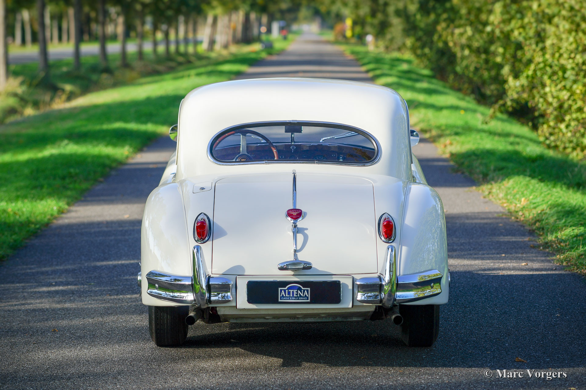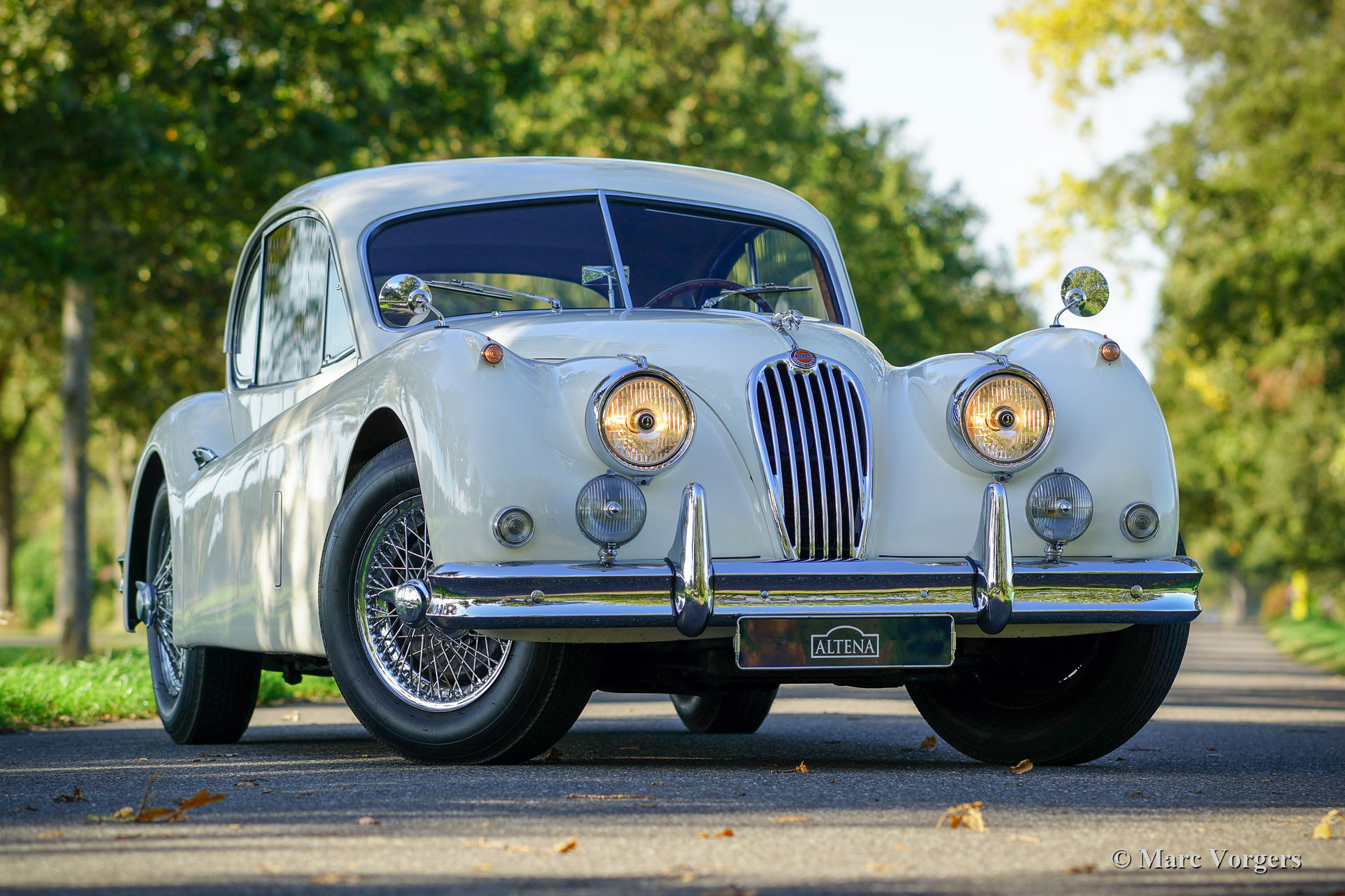Jaguar XK 140 FHC, Jahr 1957. Fahrgestellnummer 48158712XX, Karosserienummer J669X, Motornummer G9293-X, Getriebenummer JLE36339XX. Farbe Old English White kombiniert mit einer roten Lederausstattung. Dieser wunderschöne Jaguar XK 140 FHC (Fixed Head Coupé) wurde im Jahr 2000 in den Niederlanden zugelassen. Der Jaguar wurde in der Vergangenheit umfangreich restauriert und das Auto ist in einem hervorragenden Zustand! Außerdem fährt das Auto herrlich! Dieser Jaguar XK 140 FHC zeigt alle originalen Details, im Innenraum finden Sie das wunderschöne Holz-Armaturenbrett und ein zeitgemäßes Moto Lita Sportlenkrad mit Holzkranz. Das Auto ist ausgestattet mit Lucas SFT 576 Nebelscheinwerfer und Speichenräder. Dies ist ein sehr originaler Jaguar XK 140 FHC in einem exzellenten Zustand! Das Auto kommt mit niederländischen (EU) Dokumenten, das Auto kann weltweit exportiert / importiert werden.