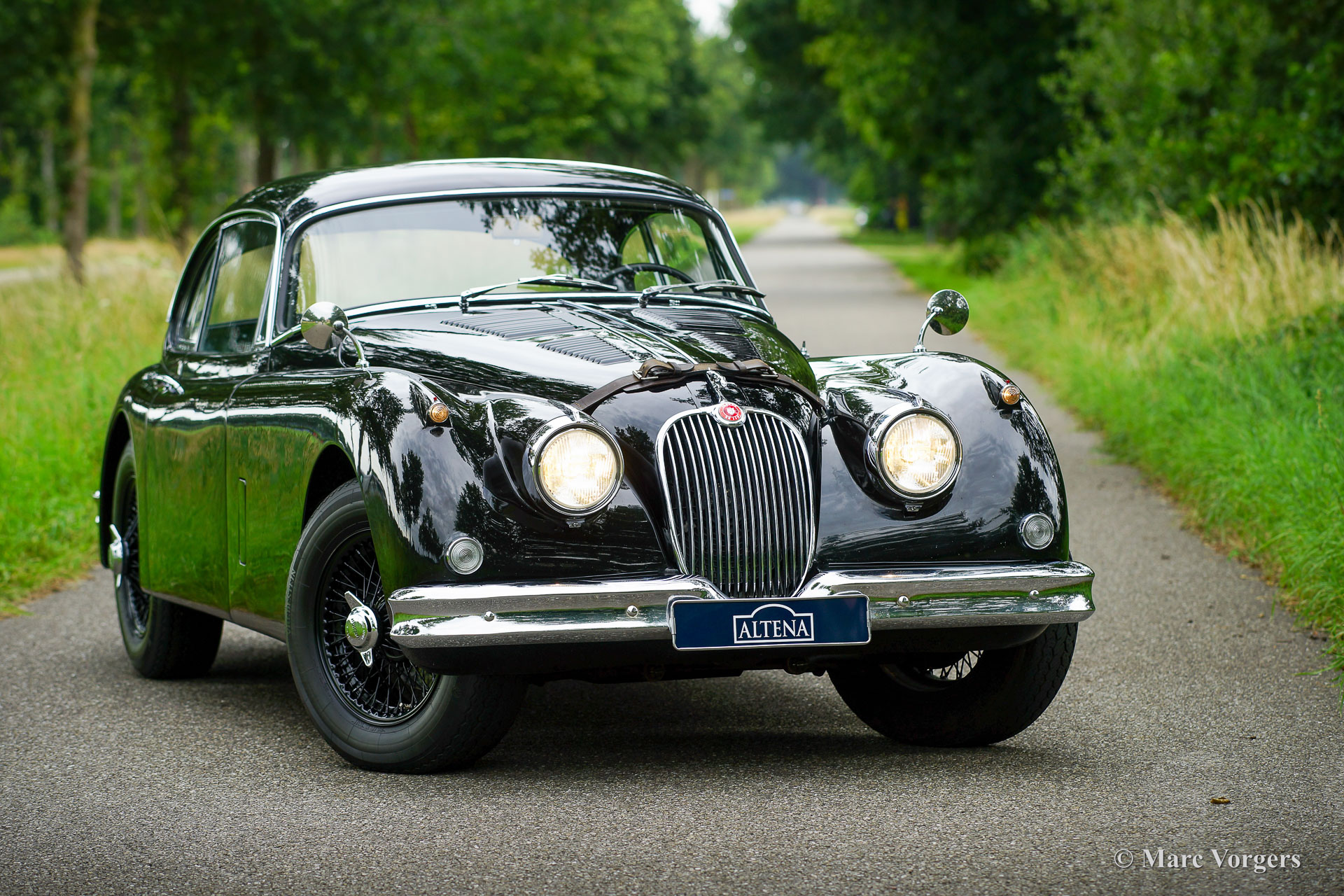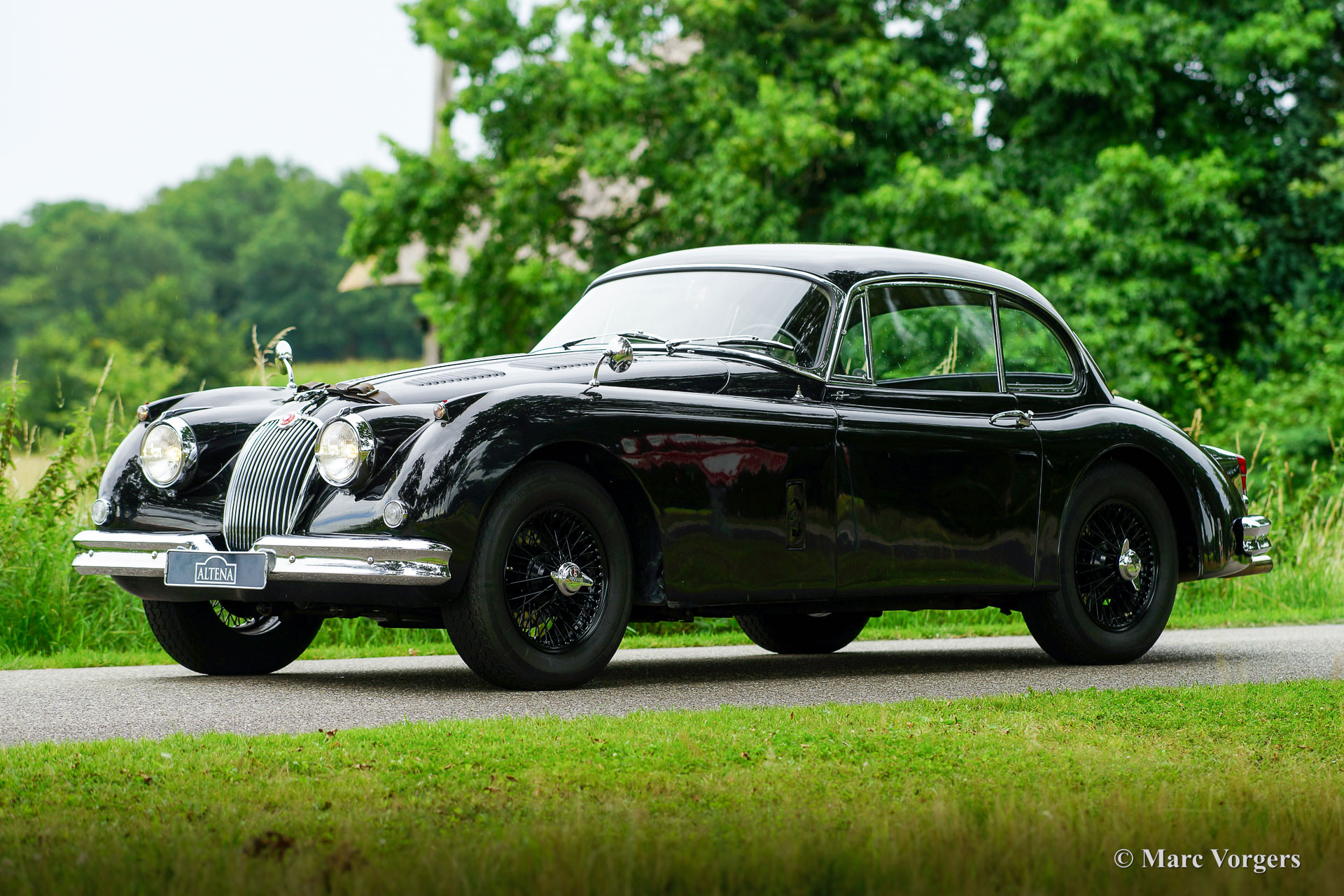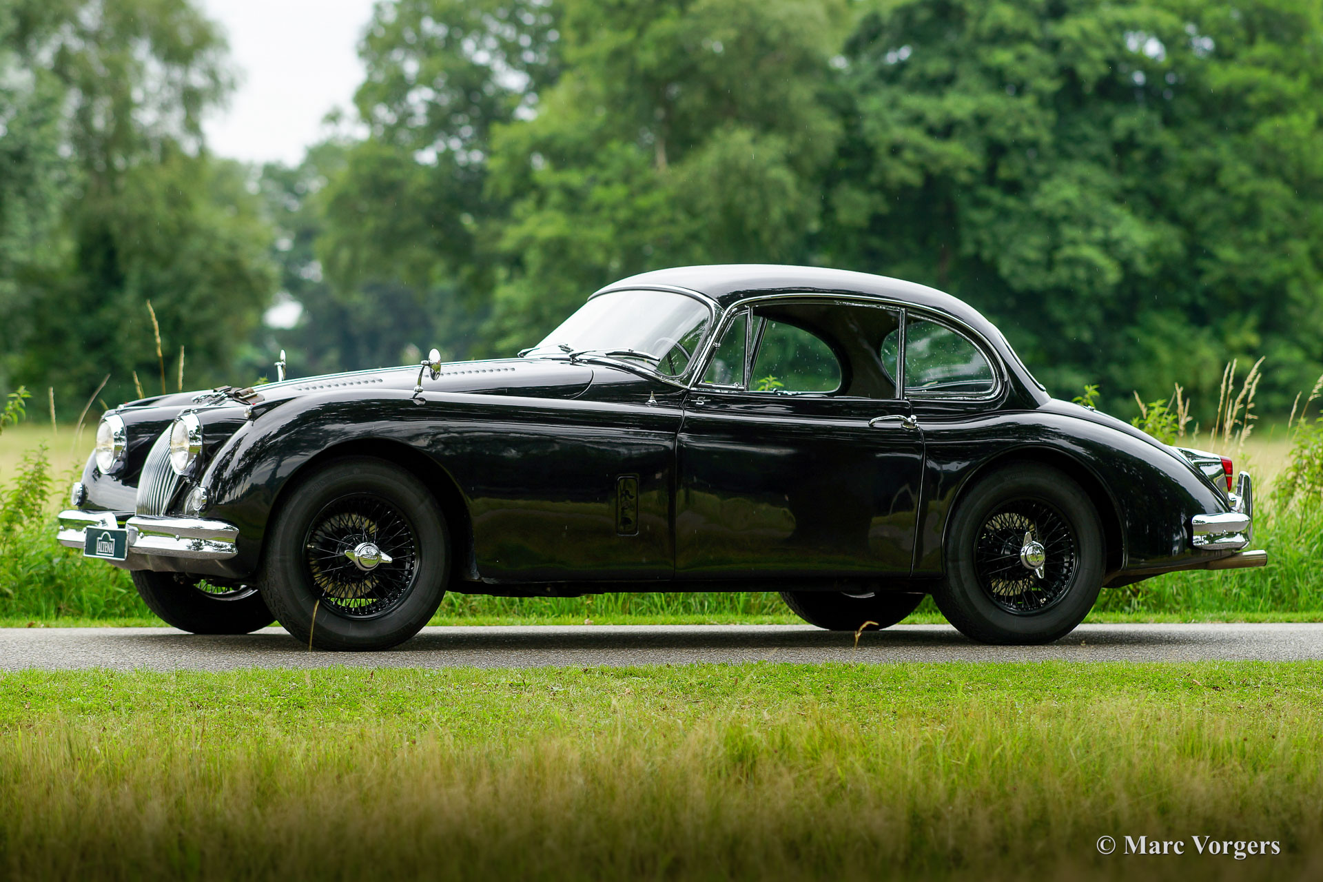 Jaguar XK 150 FHC, Jahr 1961. Fahrgestellnummer S836670DX, Karosserienummer J1078X. Farbe schwarz, kombiniert mit einer schwarzen Lederausstattung, schwarzem Teppich und schwarzen Speichenrädern. Dieser fantastische Jaguar XK 150 FHC (Fixed Head Coupé) wurde im Jahr 2003 in die Niederlande importiert. Das Auto wurde in der Vergangenheit in die Niederlande umfassend restauriert und aufgerüstet. Der Originalmotor wurde gegen einen leistungsstarken 4,2-Liter-Jaguar-Motor mit Dreifach-S.U. HD8 Vergaser ausgetäuscht. Das originale 4-Gang-Getriebe wurde gegen ein 5-Gang-Getriebe ausgetauscht. Das Auto wurde sehr gut professionell restauriert, die Blechpassung ist wunderschön und das Auto fühlt sich solide und sportlich an. Dieser Jaguar XK war im Besitz renommierter historischer Rallyefahrer aus den Niederlanden, das Auto befindet sich in einem sehr guten Fahrerzustand mit leichten Gebrauchsspuren. Dieser 'Black Jag' verfügt über schwarze Speichenräder mit Vredestein Sprint Classic 185/16-Reifen, zusätzliche Kühlschlitze in der Motorhaube, ein Lederband über der Motorhaube, eine Edelstahl-Auspuffanlage, einen Aluminiumkühler, K&N-Sportluftfilter und eine Wechselstrom Lichtmaschine. Dieser schöne XK 150 FHC wurde immer von einem Oldtimer-Spezialisten gewartet. Dies ist ein Jaguar für den Enthusiasten, der einen aufgerüsteten XK 150 Coupé mit einem sehr sportlichen Aussehen sucht!