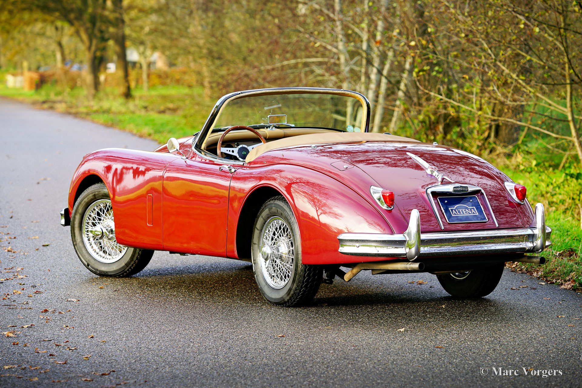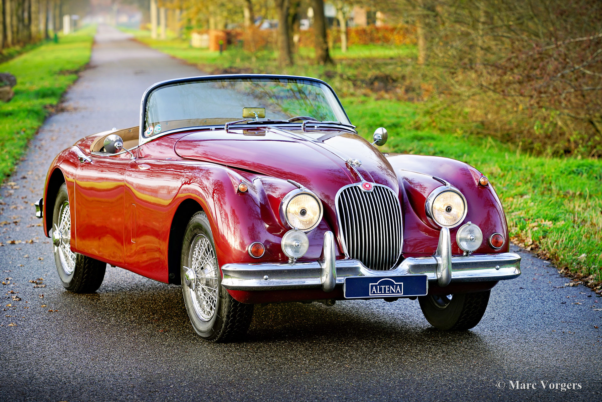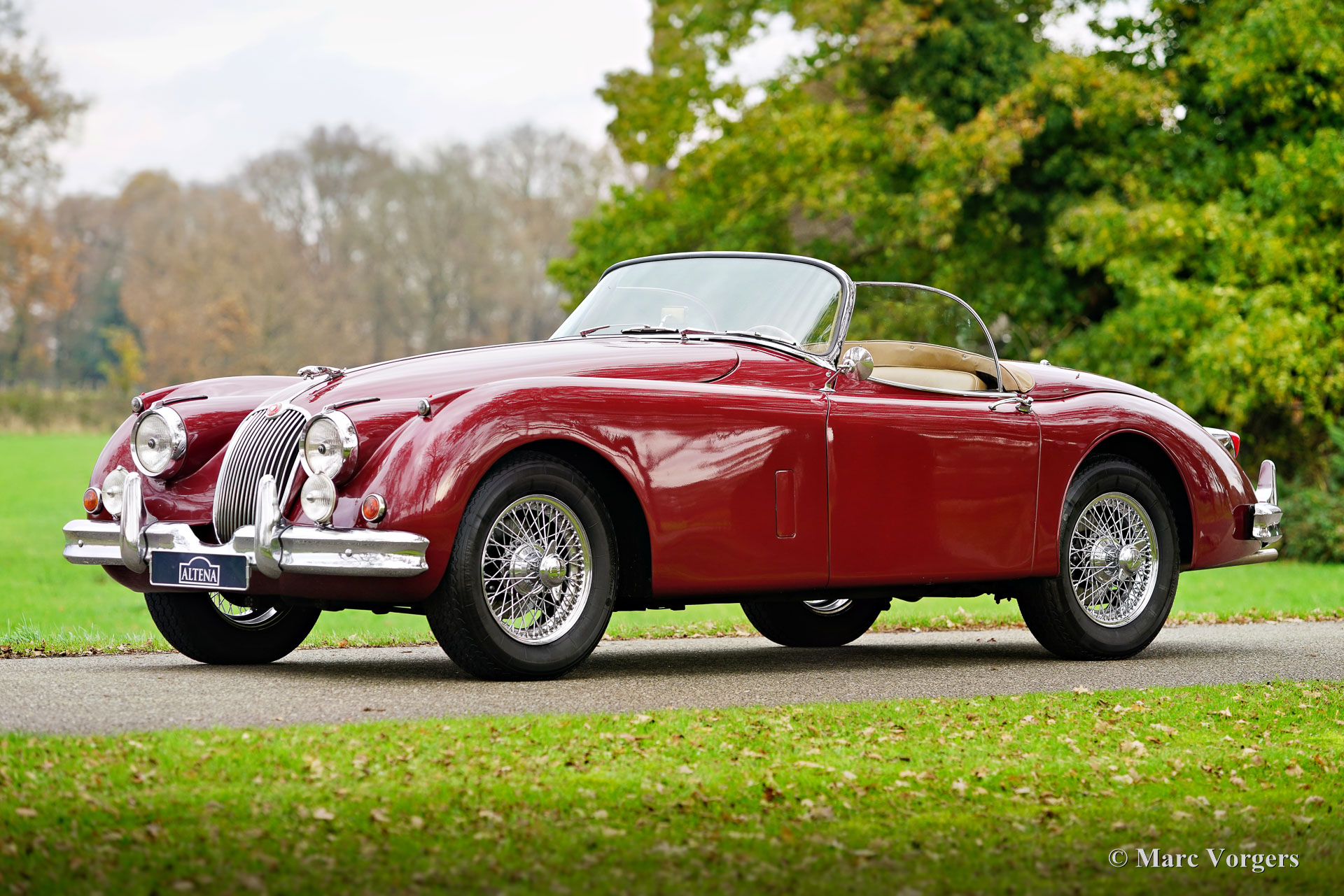 Jaguar XK 150 OTS (Roadster), Jahr 1958. Farbe: Dunkelrot Metallic, kombiniert mit einem beigen Lederausstattung und passendem Wollteppich. Das Auto verfügt über ein schwarzes Stoffverdeck aus Mohair und eine schwarze Persenning. Dieser prächtige Jaguar XK 150 OTS (Open Two Seater, in den USA „Roadster“ genannt) wurde in den USA neu verkauft. Das Auto wurde im Jahr 2010 in die Niederlande verschifft. In den Niederlanden wurde das Auto teilweise restauriert: Die Karosserie wurde perfektioniert und neu lackiert und mechanisch wurde das Auto auf den neuesten Stand gebracht. Der Sechszylinder-XK-Motor wurde durch ein überholtes Exemplar ersetzt, der Originalmotor ist noch verfügbar. Nach Abschluss der Arbeiten haben die Besitzer das Auto mehrere Jahre lang in vollen Zügen genossen und die Alpen und große Teile Italiens erkundet. Dieser wunderbare Jaguar XK 150 Roadster ist in einem guten bis sehr guten Zustand und das Auto fährt sich wunderbar. Das Auto schaltet, lenkt und bremst, wie es soll und der Motor läuft und klingt perfekt. Das Auto ist ausgestattet mit Overdrive, einem Paar Lucas SFT576 Kurven-/Nebelscheinwerfern und 16-Zoll-Chromspeichenrädern mit Vredestein Sprint Classic 185/16-Reifen. Dies ist ein wunderbarer und begehrter Jaguar XK 150 Roadster zu einem sehr interessanten Preis-Leistungs-Verhältnis. Ein wunderschöner Klassiker, den man in vollen Zügen genießen kann!