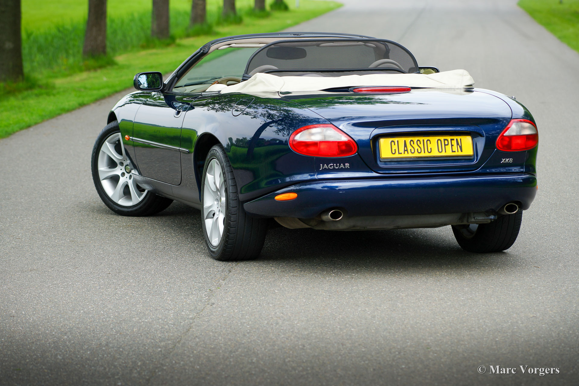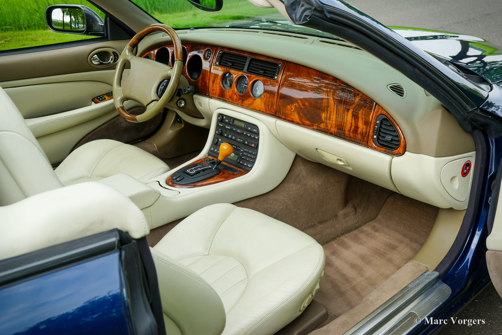 Jaguar XK8 Cabriolet, Baujahr 1999. Farbe Dunkelblau-Metallic, kombiniert mit einer hellbeigen Lederausstattung, beigem Teppich, dunkelblauem Verdeck und beigem Verdeck Abdeckung. Dieses wunderschöne XK8-Cabrio hat seit Neuem 130.000 Kilometer zurückgelegt. Das Auto wurde im Laufe der Jahre sehr gut gewartet und gepflegt und ist in einem sehr guten Zustand! Der letzte Besitzer schätzt diese beeindruckende V8-Schönheit seit 2009. Der Besitzer hat beschlossen, weiterzuziehen, sodass diese entzückende Maschine einem anderen Liebhaber zur Verfügung steht. Dieser Jaguar XK8 ist in einem sehr originalen Zustand und weist nur leichte Gebrauchsspuren auf. Der Lack ist sehr gut und die beige Innenausstattung ist für seine 24 Jahre sehr sauber! Der 4-Liter-V8-Motor läuft und klingt perfekt und das 5-Gang-Automatikgetriebe schaltet präzise und sanft. Das Jaguar XK8 Cabriolet ist ein idealer Luxussportwagen, mit dem man die schönen Dinge des Lebens genießen kann. Sommerabendausflüge, Wochenendausflüge und längere Roadtrips durch Europa können Sie in vollen Zügen genießen!