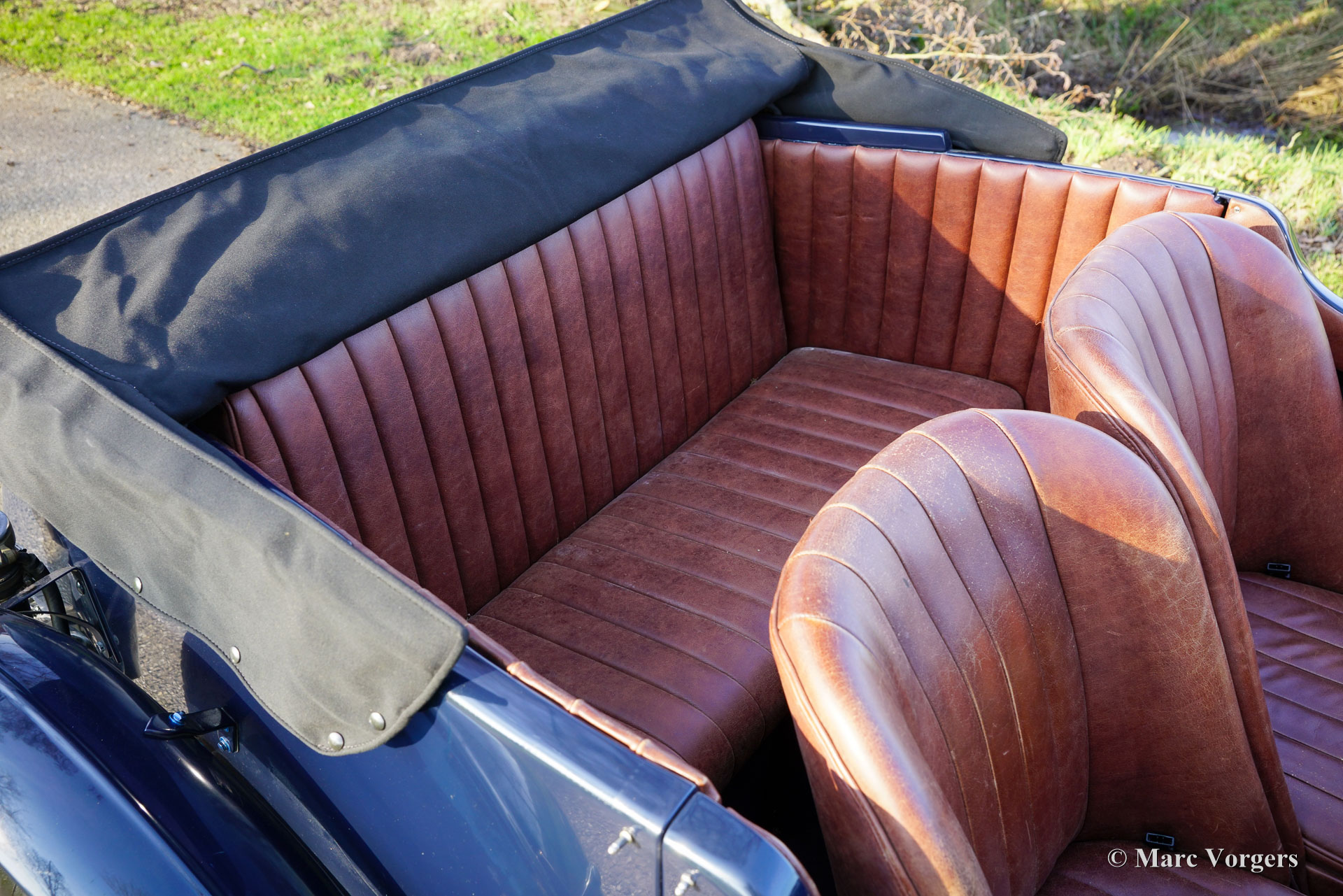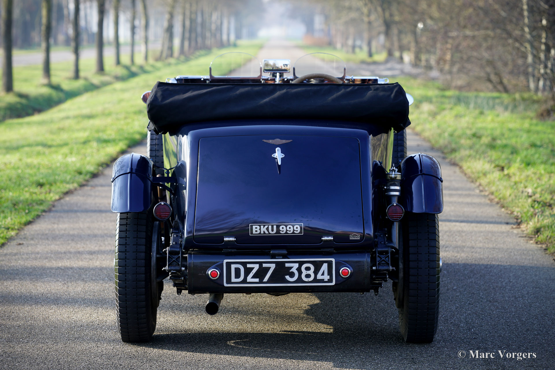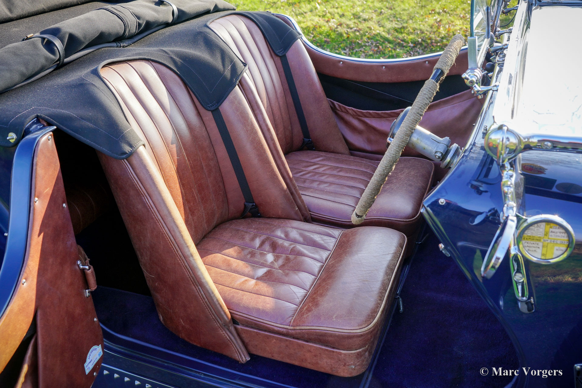 Lagonda LG 45 Sport Special, Jahr 1937. Fahrgestellnummer 12158G10, Motornummer 12153, originales britisches Kennzeichen BKU999. Farben: Dunkelblaue Karosserie, silberne Speichenräder kombiniert mit einer dunkelbraunen Lederausstattung mit dunkelblauem Teppich. Schwarzes Stoffverdeck und Verdeck Abdeckung. Dieser fantastische Lagonda LG45 wurde im Auftrag eines Kunden in Großbritannien von Altena Classic Service gekauft. Der Lagonda kam 2018 als komplettes Projektauto mit einem guten Fahrgestell, schlechter Karosserie, Kisten mit Originalteilen und einem (fachmännisch) überholten Motor. Die Achsen und der Motor waren ursprünglich werkseitig am Fahrgestell montiert und haben „matching numbers“. Im Auftrag und nach den Wünschen unseres Kunden wurde in England eine neue maßgeschneiderte Karosserie hergestellt. Die Wünsche waren: 2 Türen, leicht zu bedienendes Verdeck, sportliches Aussehen, robuste Bauweise, Sicherheit und ausreichend Stauraum. Altena Classic Service hat das Fahrgestell und die mechanischen Teile restauriert und umgebaut, mit Ausnahme des Motors und der Bremsen, die bereits in Großbritannien perfekt überholt wurden. Nach Ankunft der Karosserie haben sich Altena Classic Service und Partner um die Lackierung, die maßgeschneiderte Innenausstattung, das maßgeschneiderte Verdeck und die Fertigstellung dieses wunderbaren Bentley Special gekümmert. Während des Umbaus wurde das Originalgetriebe gegen ein robusteres und einfacher zu bedienendes, vollsynchronisiertes Alvis-Vierganggetriebe ausgetauscht, das das Fahrerlebnis erheblich verbessert. Alle Originalteile, die mit dem Auto geliefert wurden, wie Lampen, Anzeigen und Zierteile, wurden in ihrer ursprünglichen Pracht wiederhergestellt und wieder eingebaut. Neue 19-Zoll-Speichenräder und 6,50 x 19-Zoll-Blockley-Reifen wurden montiert. Das Auto wird mit einer umfangreichen Restaurierungsakte mit Rechnungen und den Originalzeichnungen für die maßgeschneiderte Spezialkarosserie geliefert. Kosten und Mühen wurden nicht gescheut, um diesen einzigartigen, großartig aussehenden und hochwertigen Vintage-Spezial-Lagonda zu bauen.