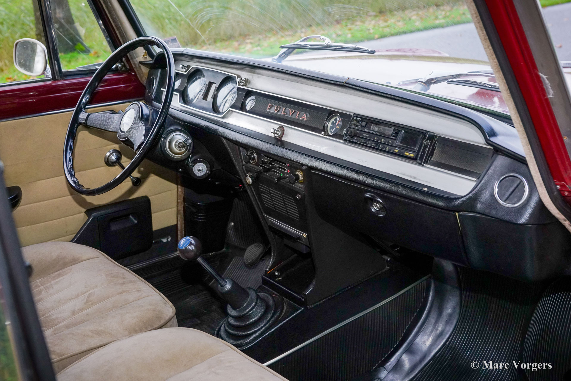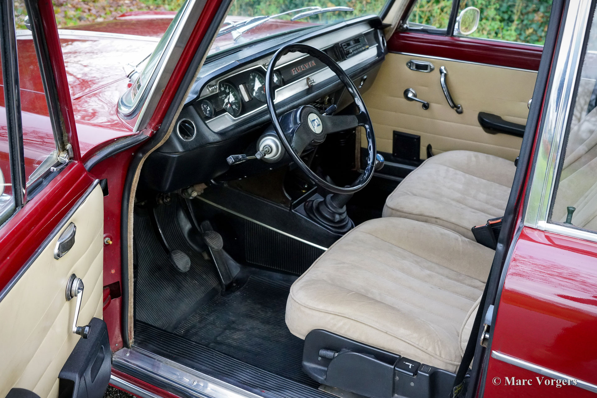 Lancia Fulvia Berlina, Jahr 1972. Erstzulassung 1975. Farbe Dunkelrot kombiniert mit beigem Stoffinterieur. Dieser wunderschöne Lancia Fulvia Berlina (Limousine) aus der zweiten Serie wurde neu in Italien verkauft, 2019 wurde das Auto in die Niederlande importiert. Dieser wundervolle Lancia ist in einem sehr guten Zustand, die Karosserie ist vollkommen intakt und das Auto zeigt sehr schöne Originaldetails! Der 1300 ccm, 95 PS. Der V4-Motor läuft und klingt wunderbar, er verfügt über zwei Doppel-Choke-Solex-Vergaser und die Kraft wird über ein 5-Gang-Getriebe auf die Vorderräder übertragen. Technisch und mechanisch ist alles auf dem neuesten Stand. Kürzlich wurden die Bremsen überholt, neue Radlager eingebaut und ein neuer Auspuff montiert. Für mehr Komfort und Sicherheit wurden die Sitze gegen modernere Lancia-Sitze mit höherer Rückenlehne und Kopfstützen ausgetauscht. Die Sitze sind mit wunderschönem und luxuriösem beigem Stoff (Alcantara-ähnlich) bezogen. Diese Lancia Fulvia Berlina-Modelle sind heute ein seltener Anblick. Dies ist ein sehr gutes Exemplar und ein herrlich fahrerisches Auto! Das Auto ist bereit zum Genießen. Dieser schöne Fulvia wird mit einer (italienischen/niederländischen) Fahrzeughistorie und Wartungsrechnungen ab dem Jahr 2019 geliefert. Der neue Besitzer wird sicherlich von den fortschrittlichen technischen Details und dem sportlichen und dennoch komfortablen Charakter dieses entzückenden Lancia begeistert sein!