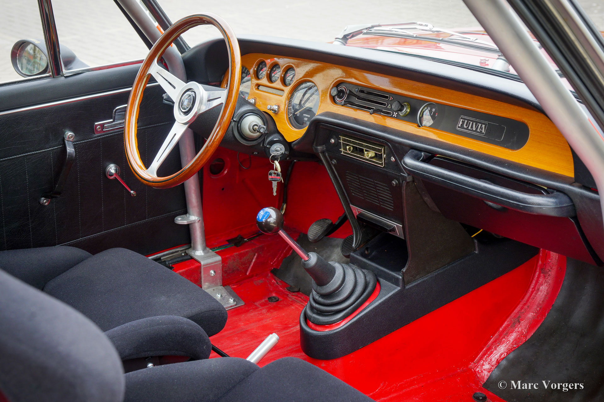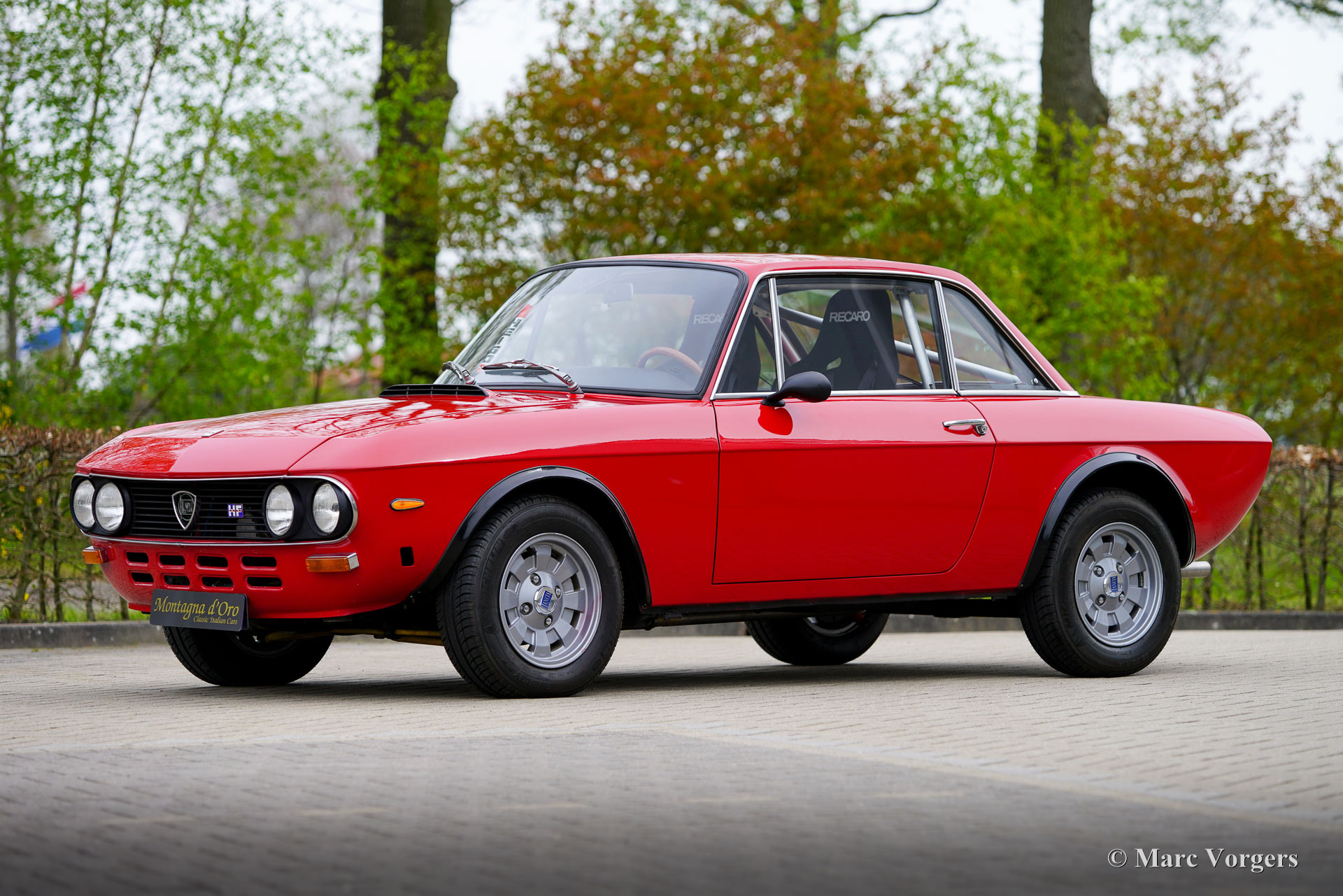 Lancia Fulvia Coupé 1600 HF, Jahr 1971. Farbe Rot kombiniert mit einem schwarzen Interieur. Dieses prächtige Lancia Fulvia Coupé 1600 HF der zweiten Serie ist in einem wunderbaren und sehr guten Zustand und das Auto fährt perfekt. Das Auto wurde vor vierzig Jahren über den italienischen Marken Spezialisten Maasland (Niederlande) gekauft und ab 1986 wurde mit einer umfassenden Restaurierung begonnen. Die Restaurierung wurde von der Restaurierungsfirma Klink durchgeführt und das Auto wurde von Pauw Classic Cars, beide in den Niederlanden, fertiggestellt. Der Innenraum wurde mit modernen Recaro-Rallyesitzen mit 4-Punkt-Sicherheitsgurten modifiziert, ein vollständiger Überrollkäfig eingebaut und ein größerer Aluminium-Benzintank montiert. Anstelle des ursprünglichen Benzintanks wurde ein Stauraum geschaffen. Die Originalsitze sind noch vorhanden. Zu diesem Lancia Fulvia Coupé 1600 HF gehört eine sehr umfangreiche Geschichtsdatei. Die Lancia Fulvia HF-Modelle waren in den 1960er und frühen 1970er Jahren bei Rallye-Wettbewerben sehr erfolgreich. Eine Kombination aus geringem Gewicht, Vorderradantrieb, hervorragendem Grip auf der Straße, hervorragender Straßenlage und einem hochentwickelten V4-Motor erwies sich als das richtige Rezept für viele Rallye-Erfolge! Das Coupé 1600 HF wurde ursprünglich ohne Stoßfänger verkauft, der Innenraum war auf das Wesentliche reduziert. Um die Montage breiterer Räder und Reifen zu ermöglichen, wurden ausgestellte Radkästen hinzugefügt. Vom Coupé 1600 HF wurden nur 3690 Exemplare gebaut, davon ein kleiner Teil in einer zivileren „Lusso“-Ausstattung mit mehr Innenausstattung, Schalldämmung und Stoßstangen. Heutzutage sind Fulvia Coupé HF-Autos bei Sammlern sehr begehrt und werden noch immer bei internationalen historischen Rallye-Veranstaltungen eingesetzt. Dieses wundervolle und sehr gute Exemplar wurde vor über 35 Jahren wunderschön restauriert und wurde viele Jahre lang von einem Lancia-Sammler geschätzt.